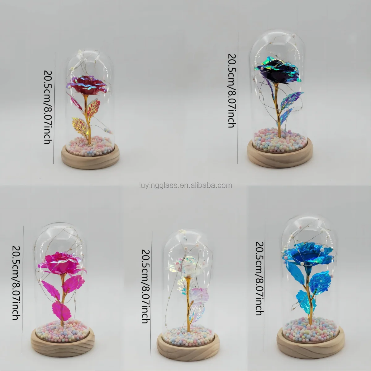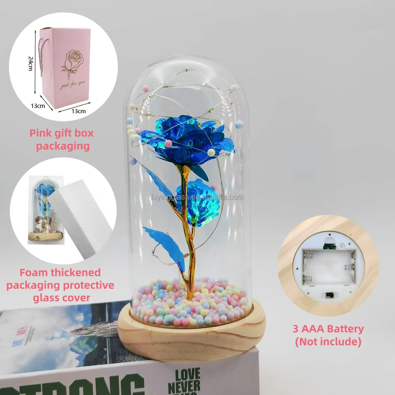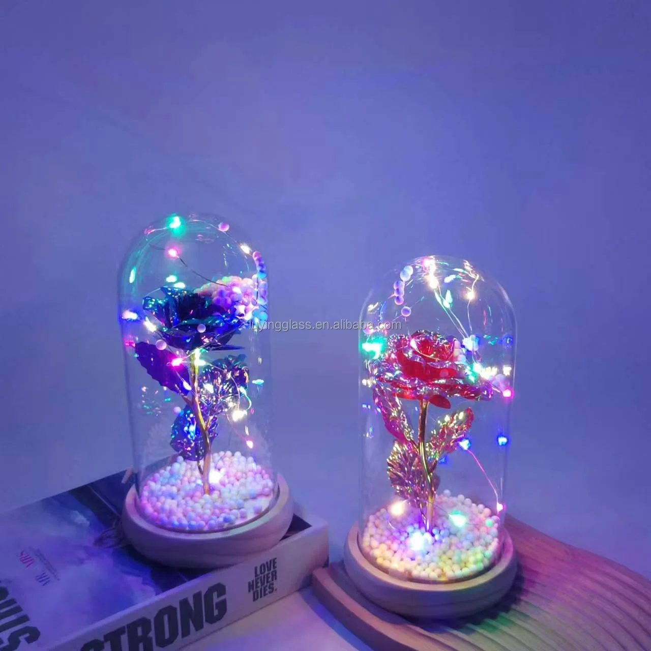 Valentine's Day Gifts Glass Dust Cover Artificial Simulation 24k Gold Foil Rose Glass Dome Decorative Flowers with Led Lamp
