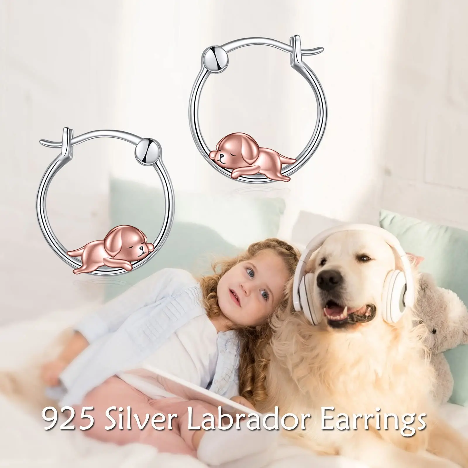 Labrador Dog 925 Sterling Silver Hoop Earrings Jewellery For Women