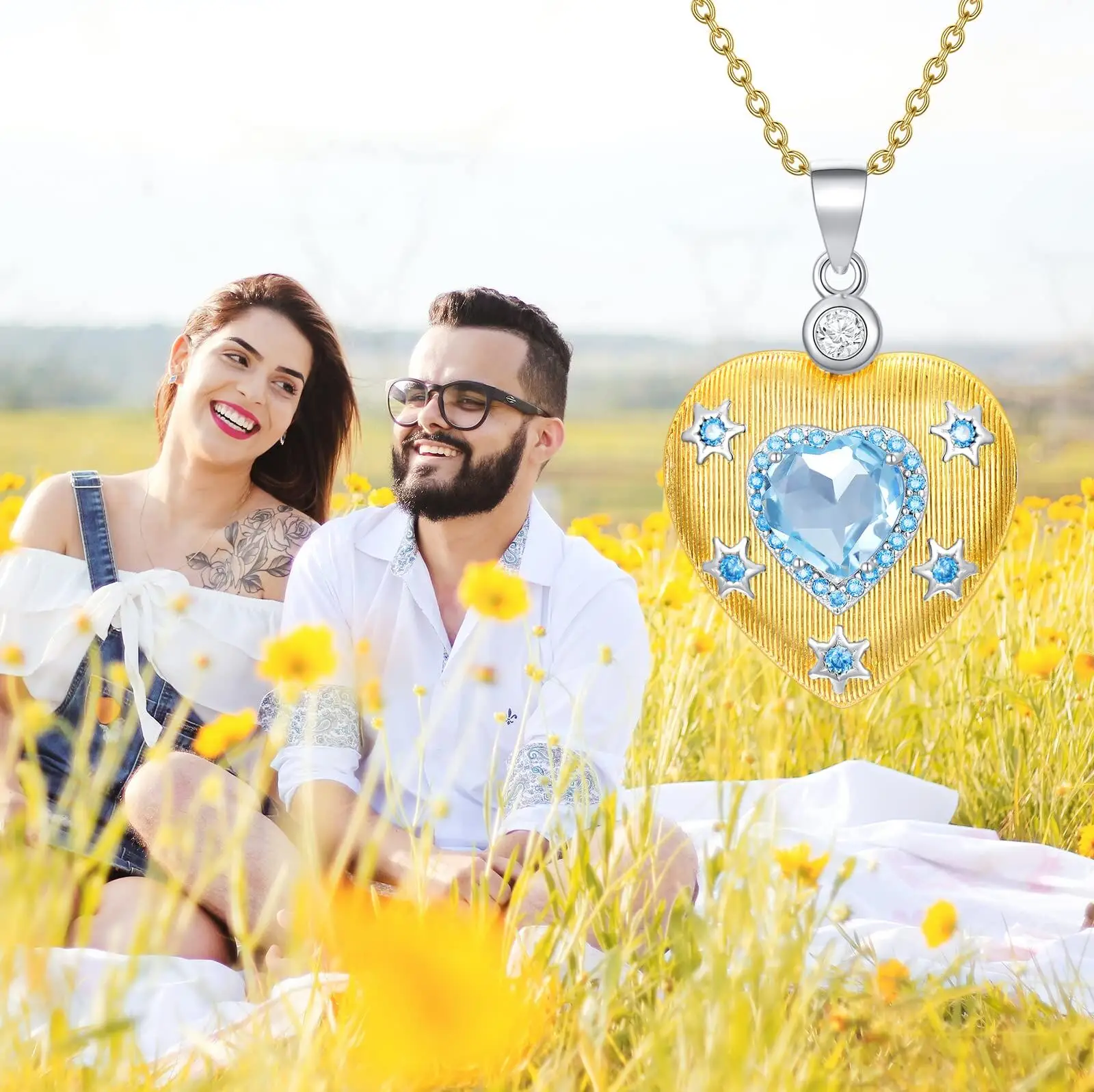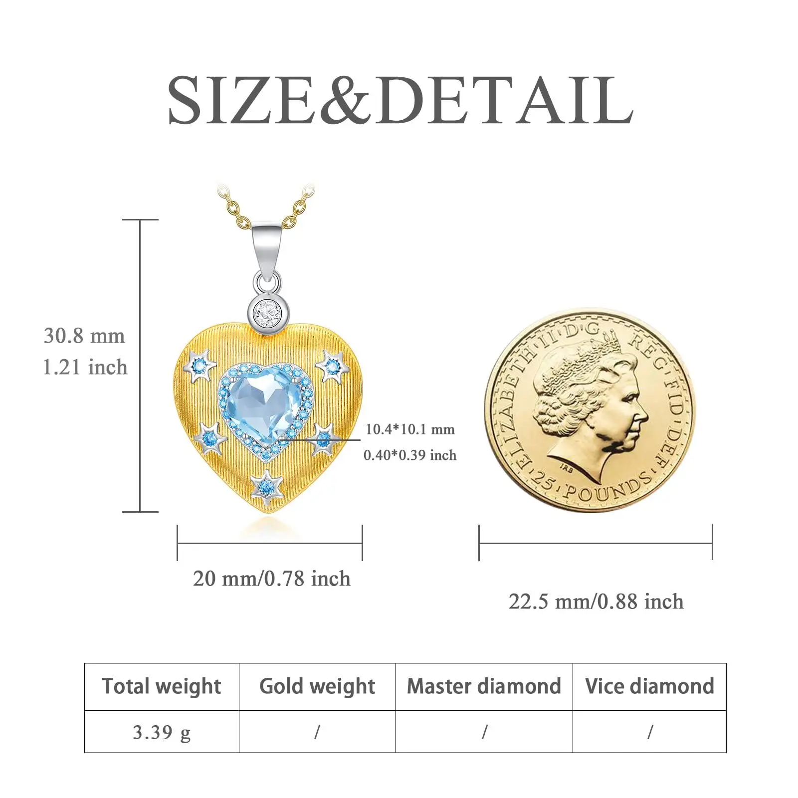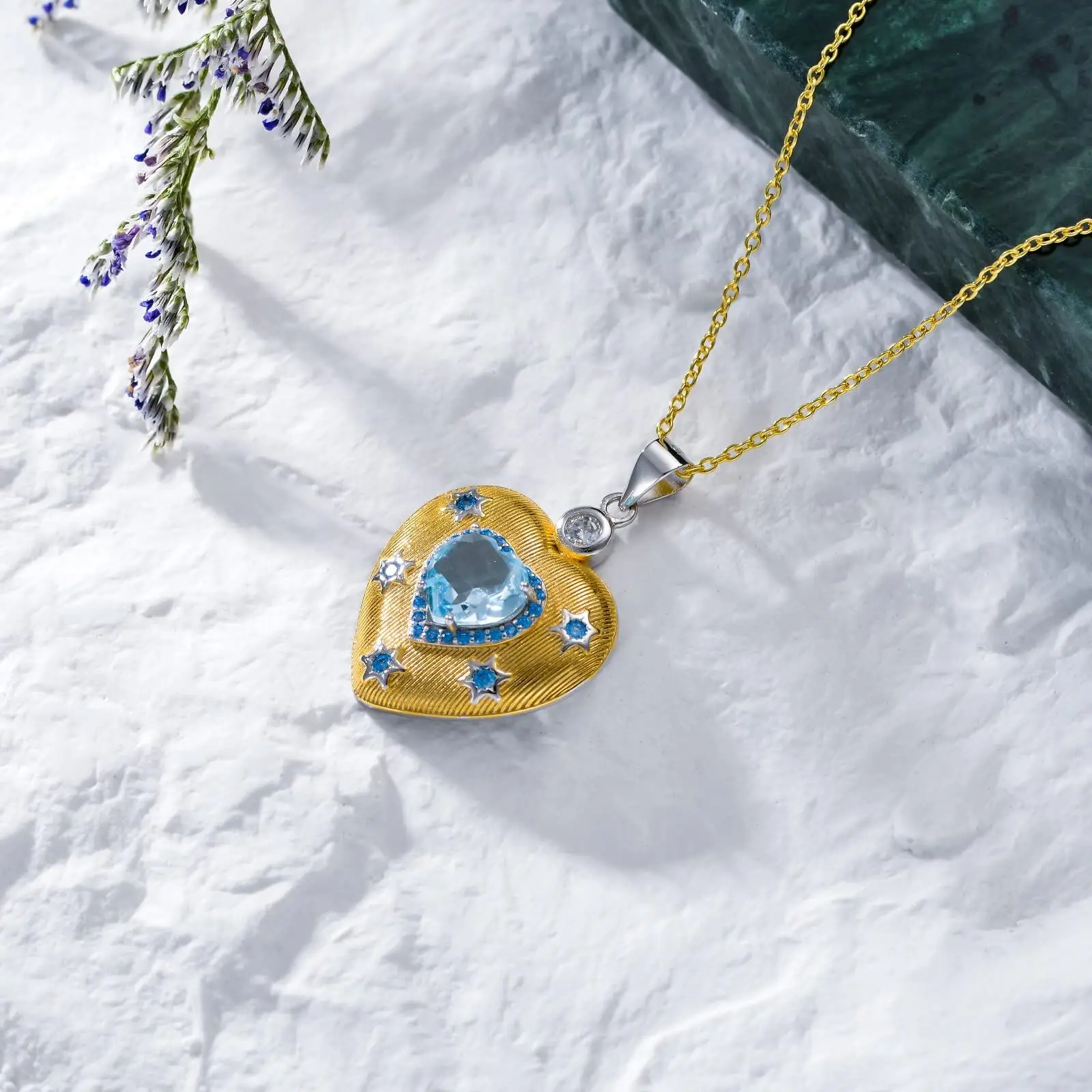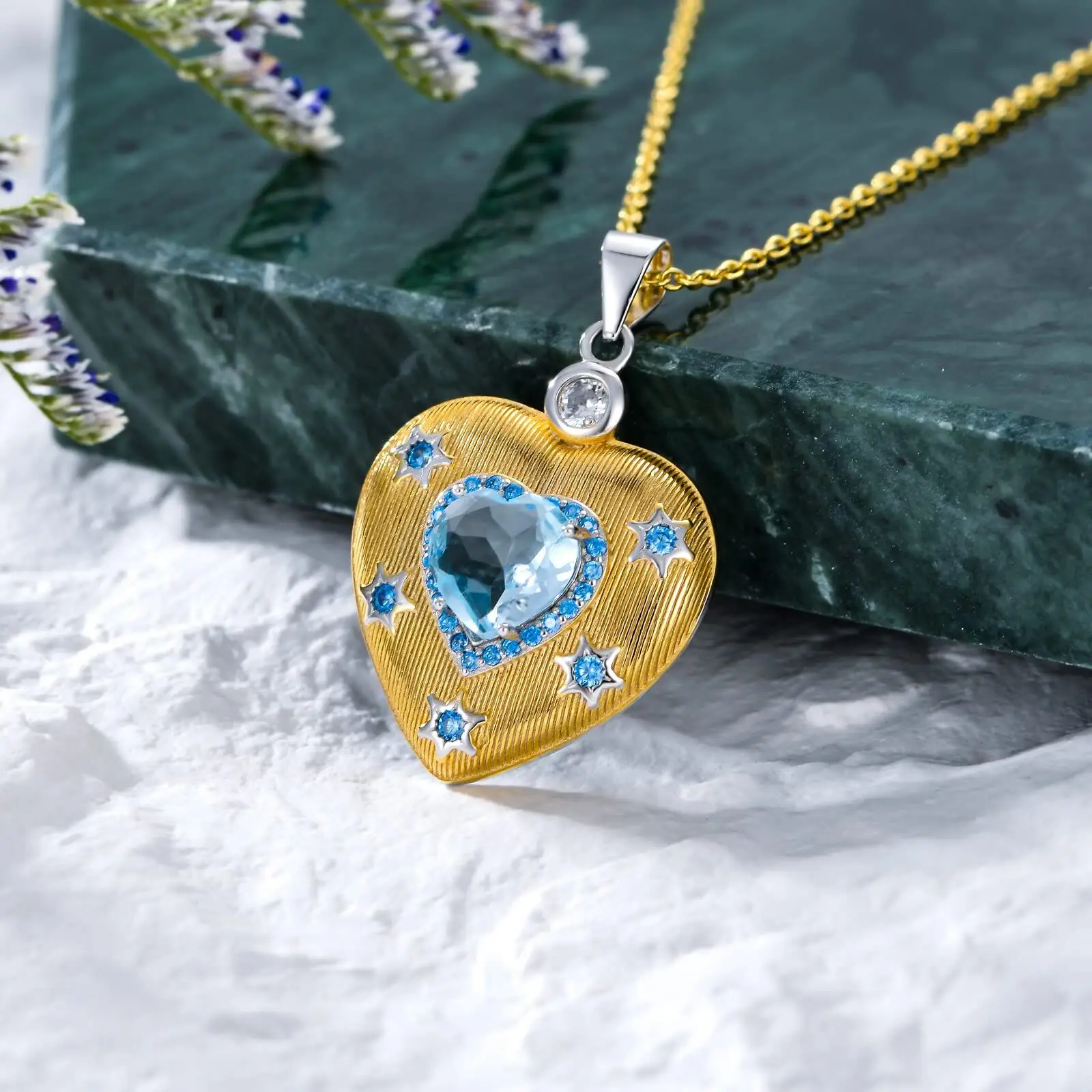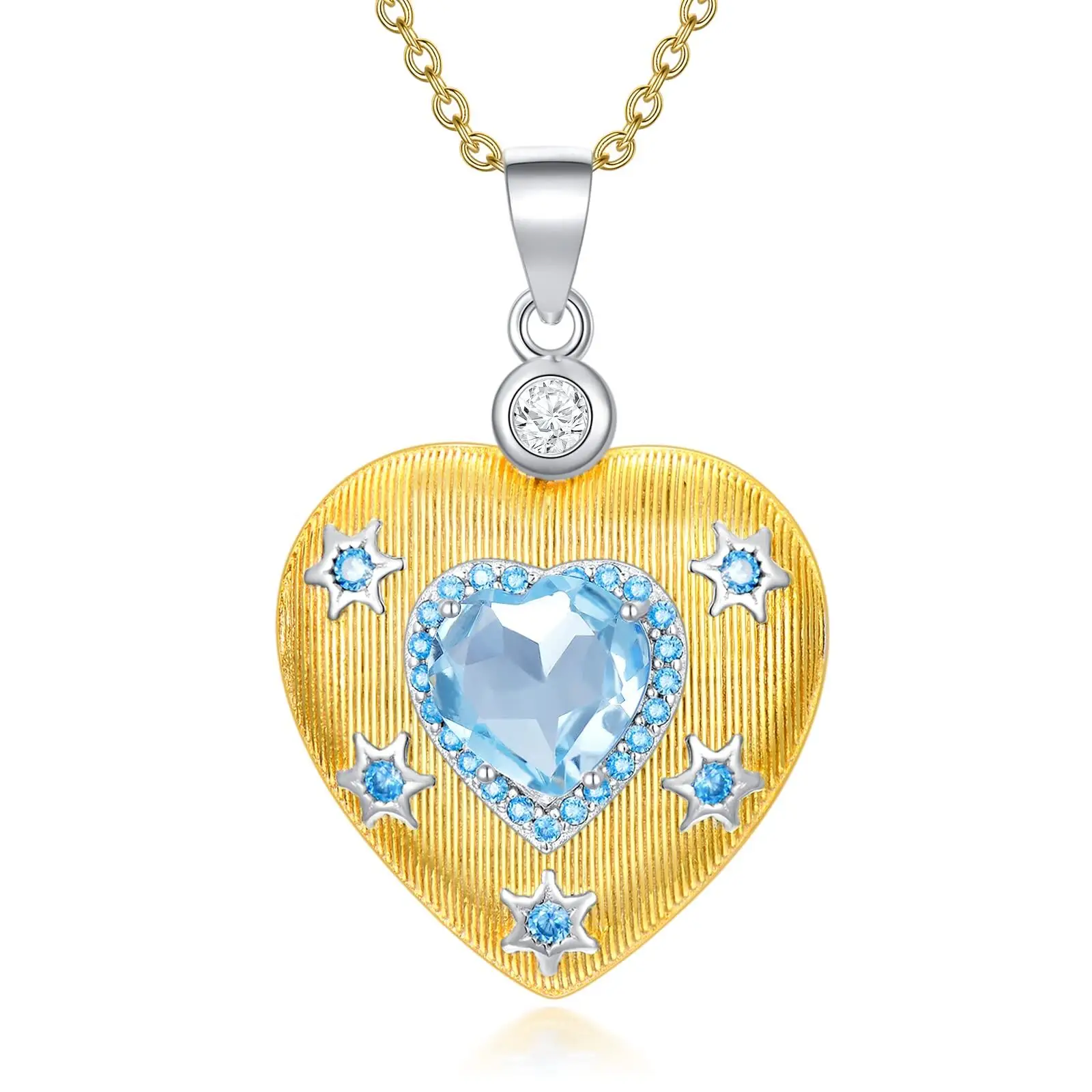 Fine Jewelry High Quality 925 Sterling Silver Gold Plated Zircon Star Topaz Heart Pendant Necklace