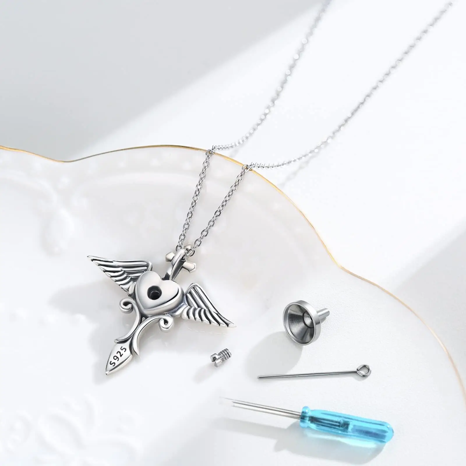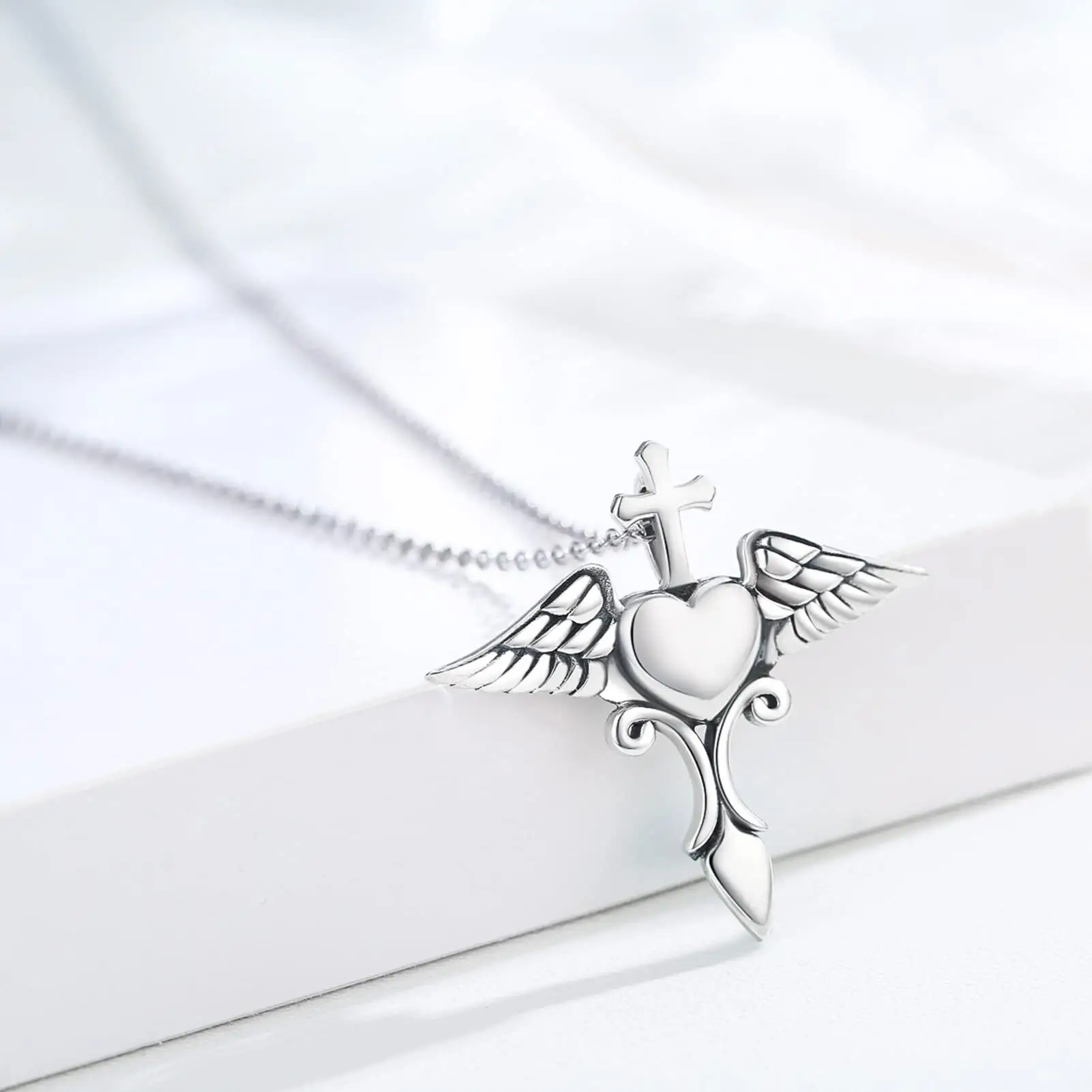 Factory Sale 925 Sterling Silver Cremation Custom Cross Wing Heart Urn Necklace