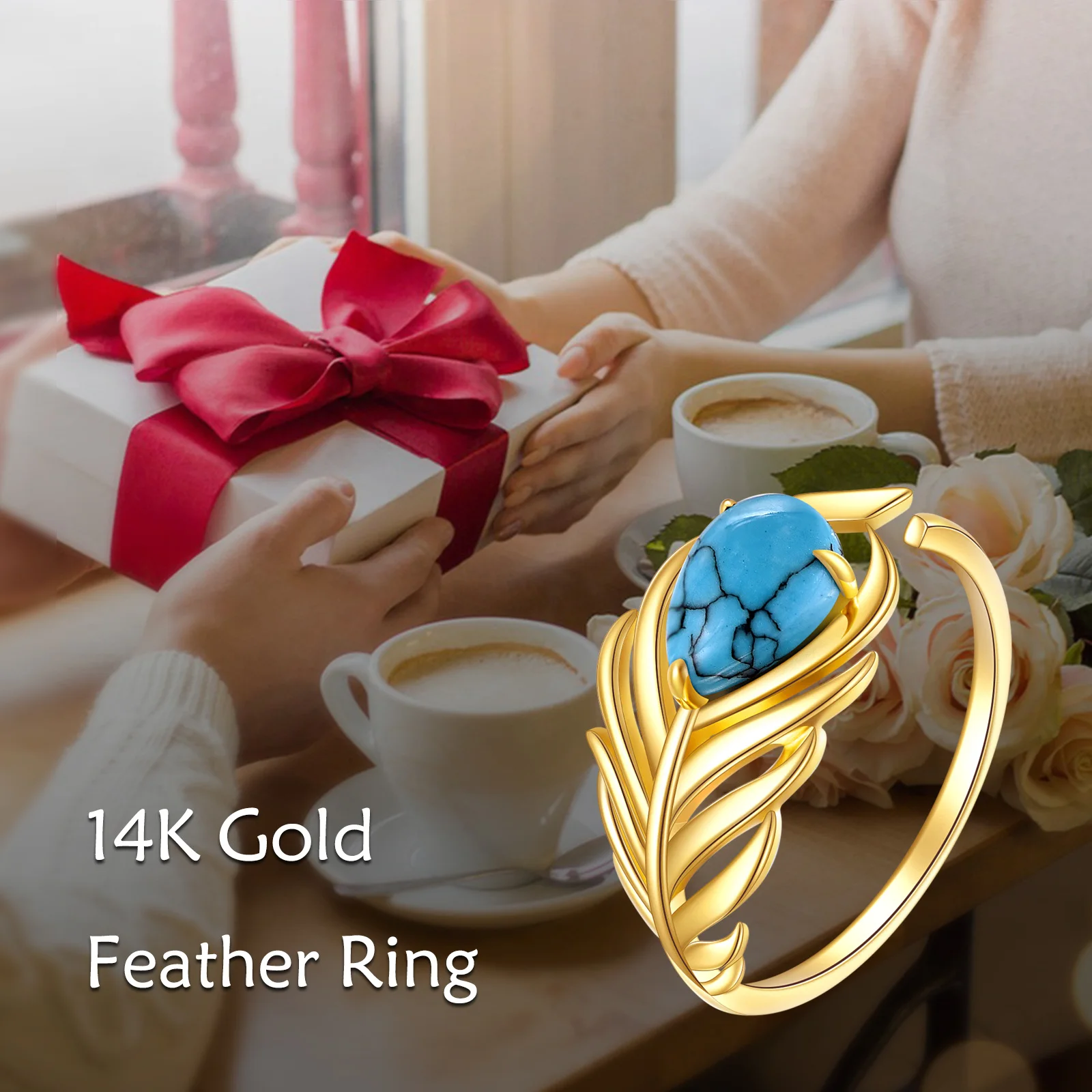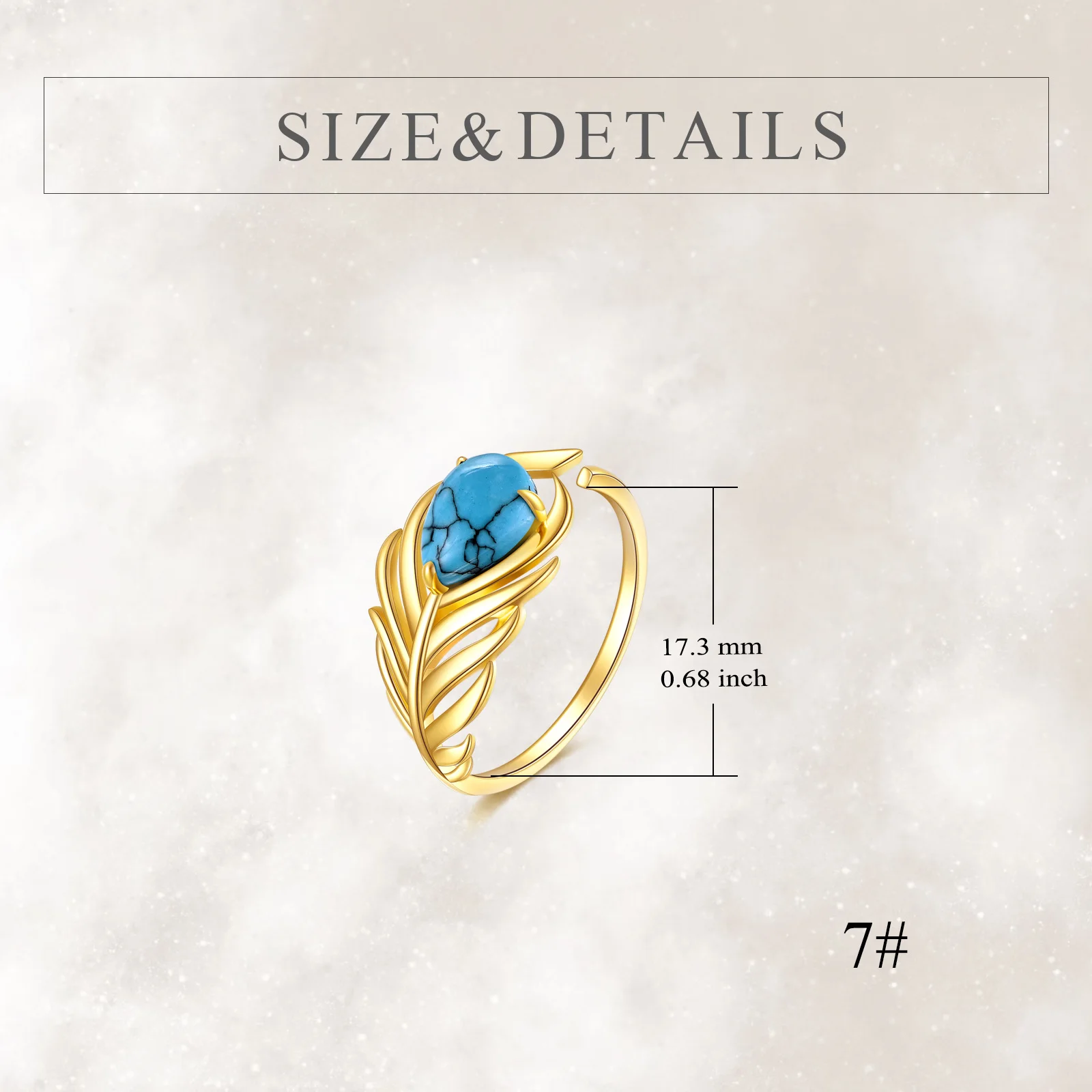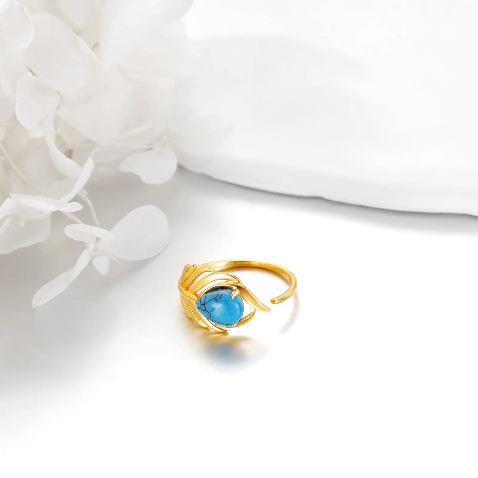 Metal Color | 14K Solid Gold Adjustable Wedding Turquoise Ring |