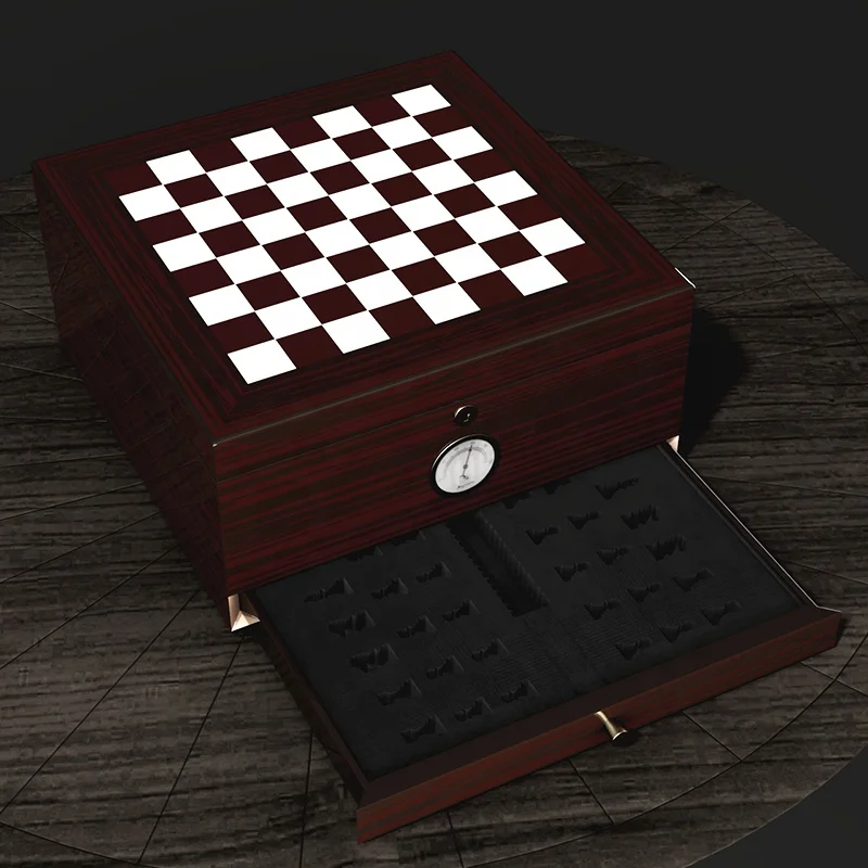 High Glossy Lacquered Empty Gift Storage Cedar Wood Chess Game Board Cigar Humidor Cabinet Custom With Drawer