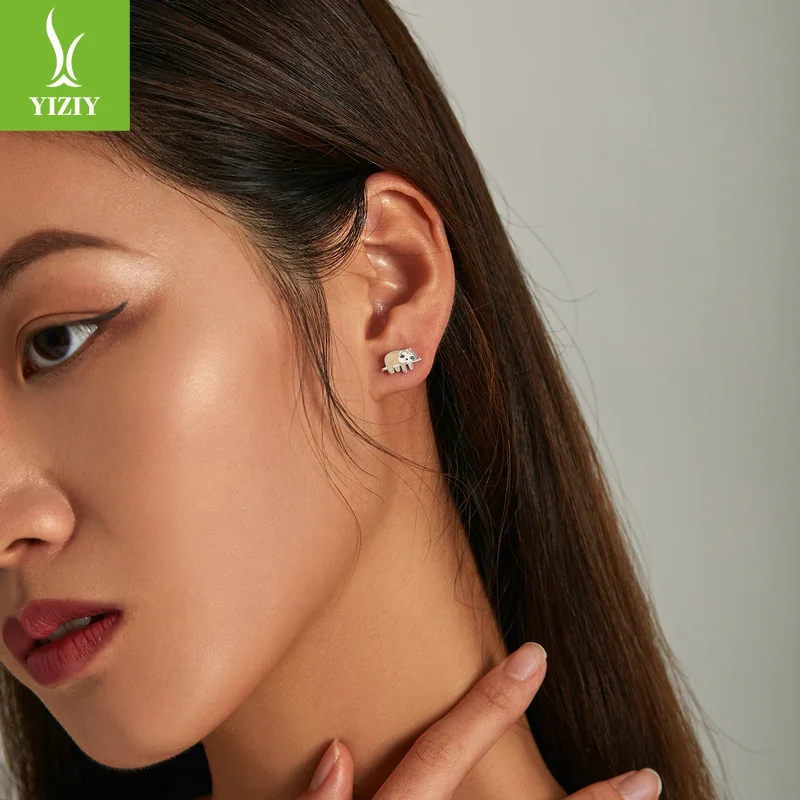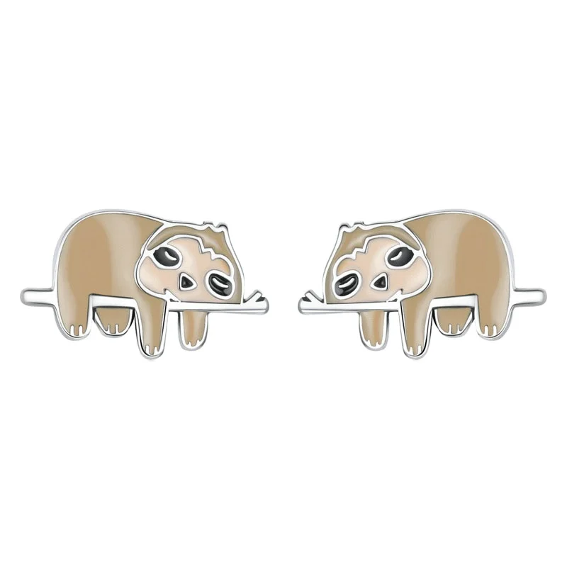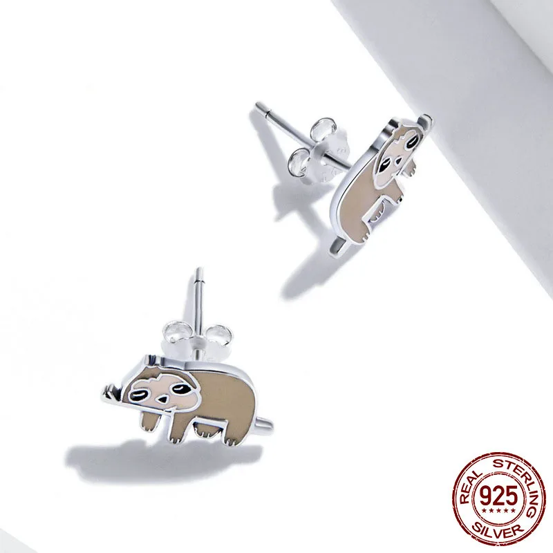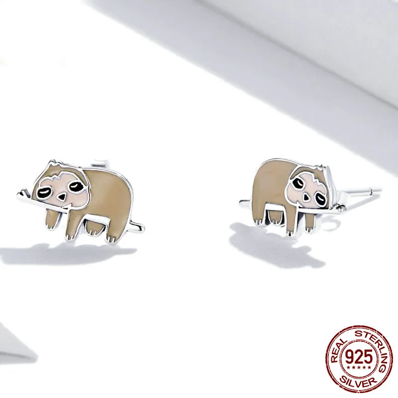 S925 Sterling Silver Earrings Jewelry Cute Enamel Sloth Stud Earrings for Women