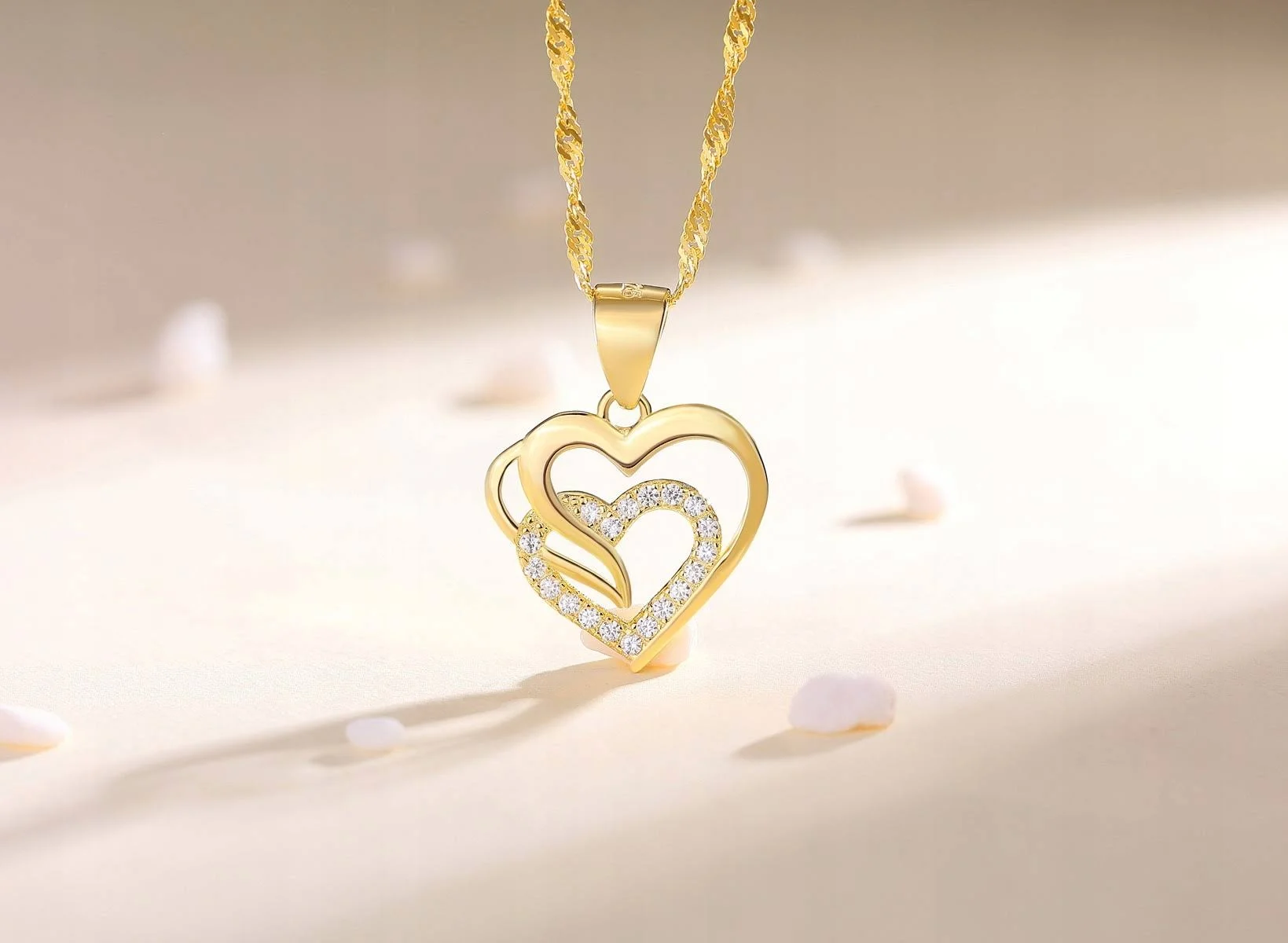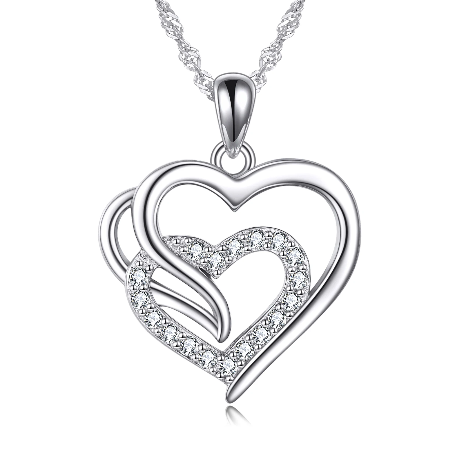 Engagement Jewelry 925 Sterling Silver Double Love Heart Pendant Necklace For Women