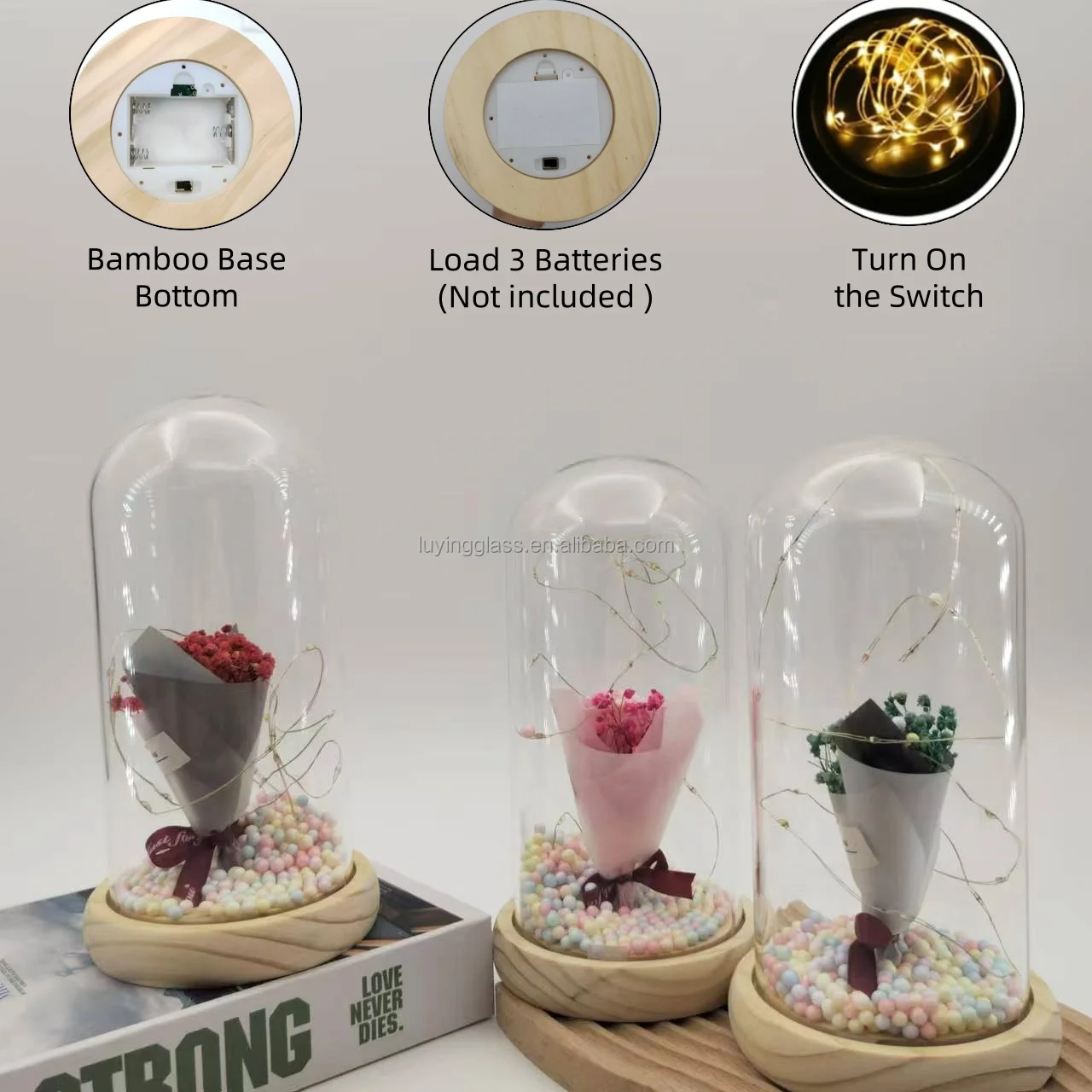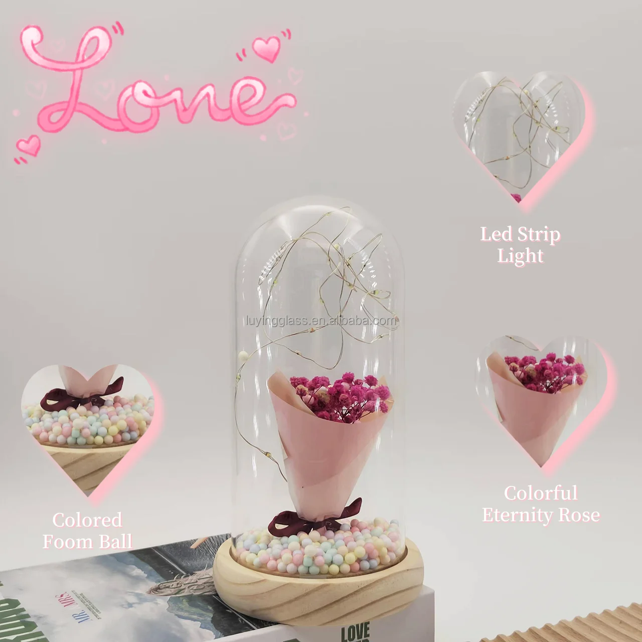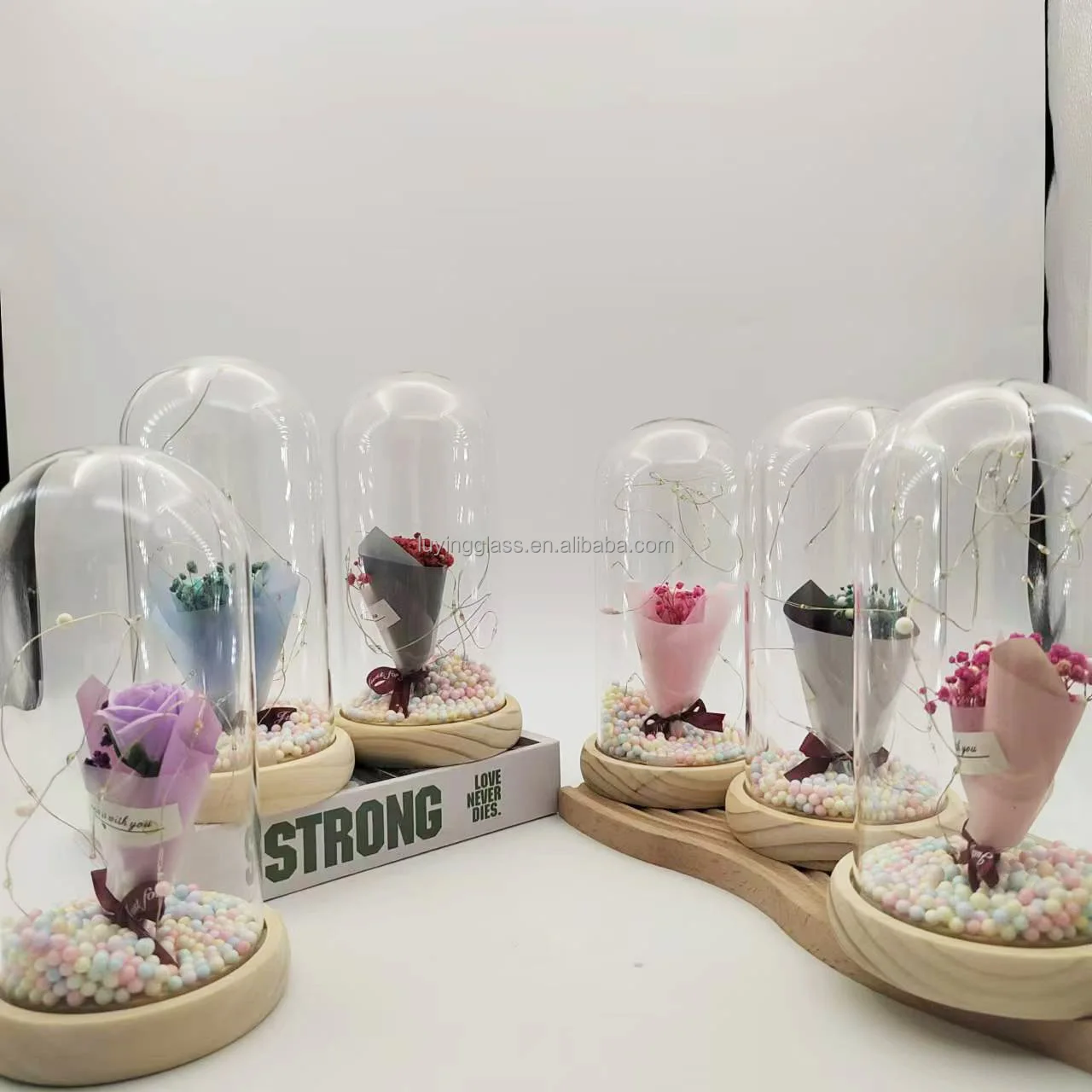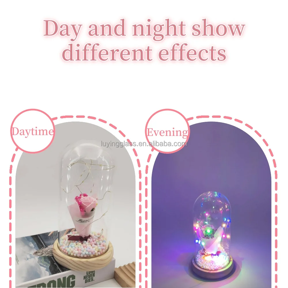 Hot Selling Valentines Day Gift Christmas Wedding Decoration Dry Gypsophila Paniculata Flowers Lamp Glass Dome In Gift Box