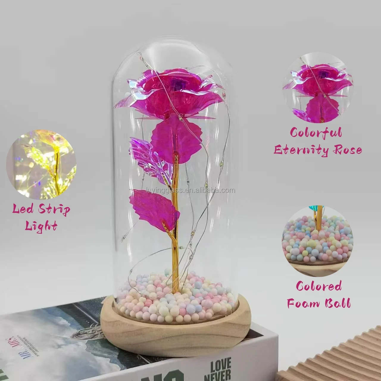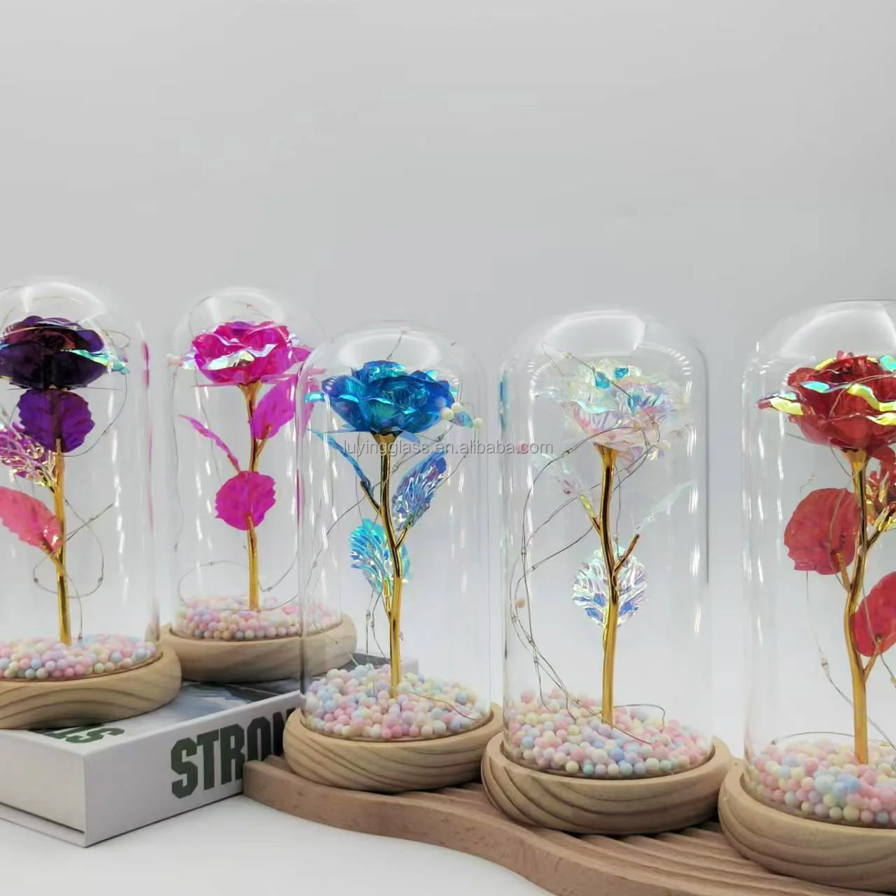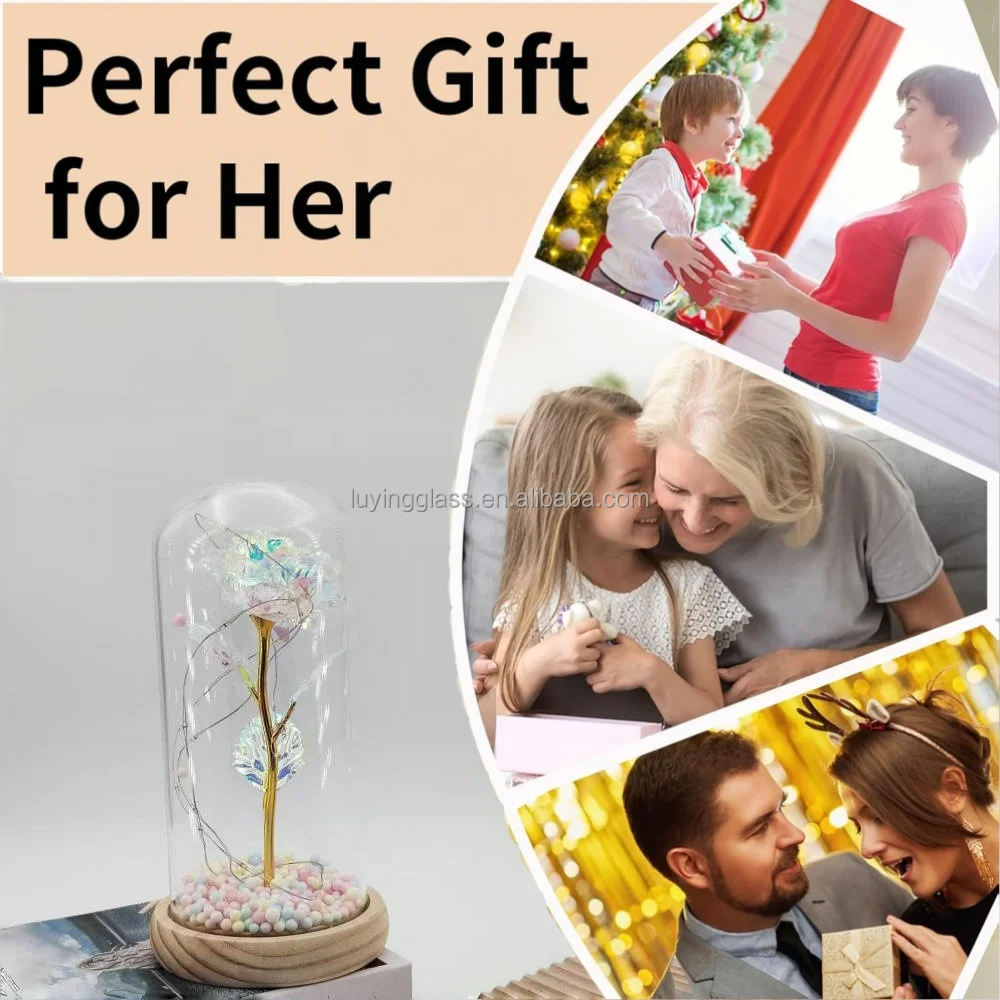 Home Decoration Wedding Valentine Christmas Gift Artificial Flowers Eternal Galaxy Rose Glass Dome With LED