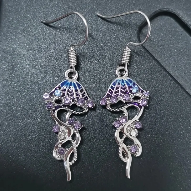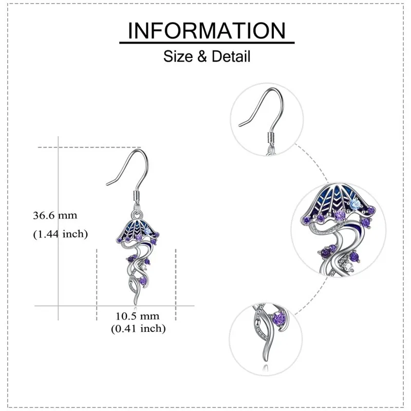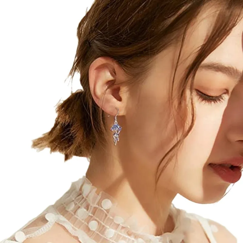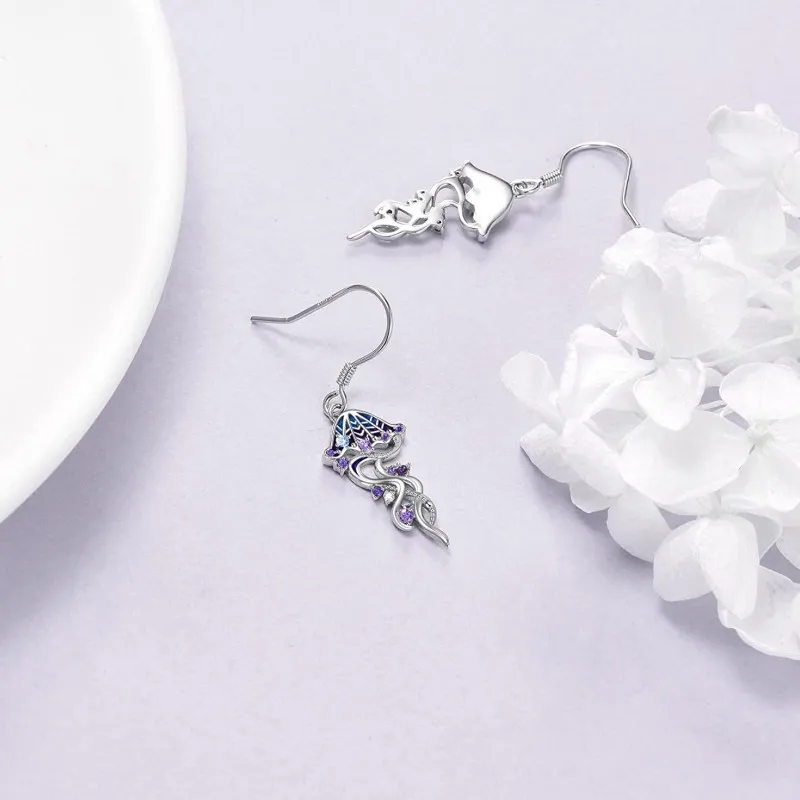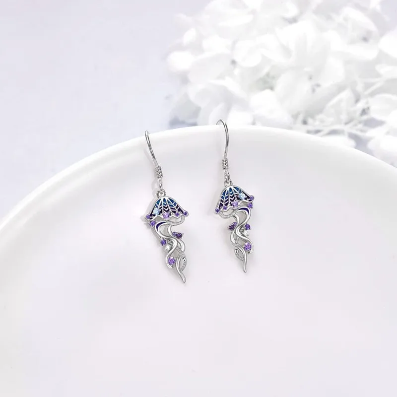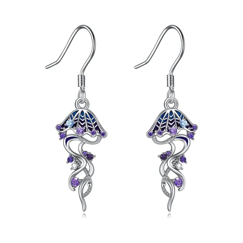 Zircon Animal Jellyfish 925 Sterling Silver Hook Dangle Drop Earrings Ocean Style For Women