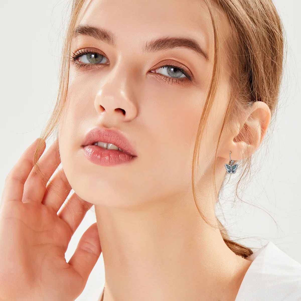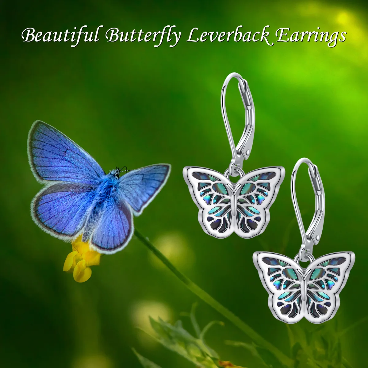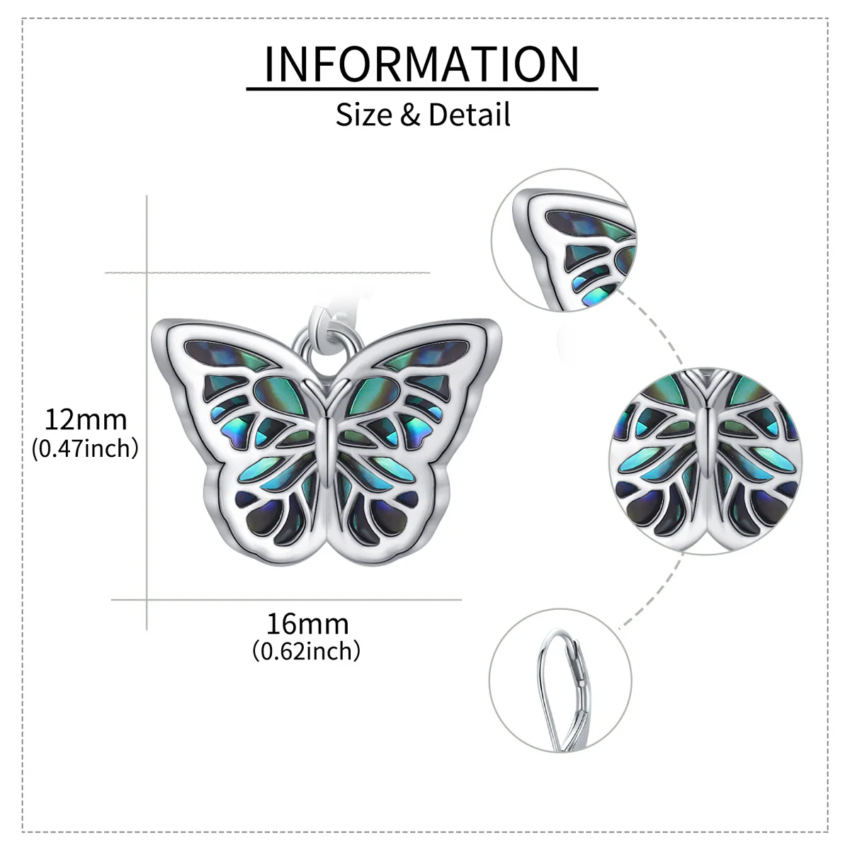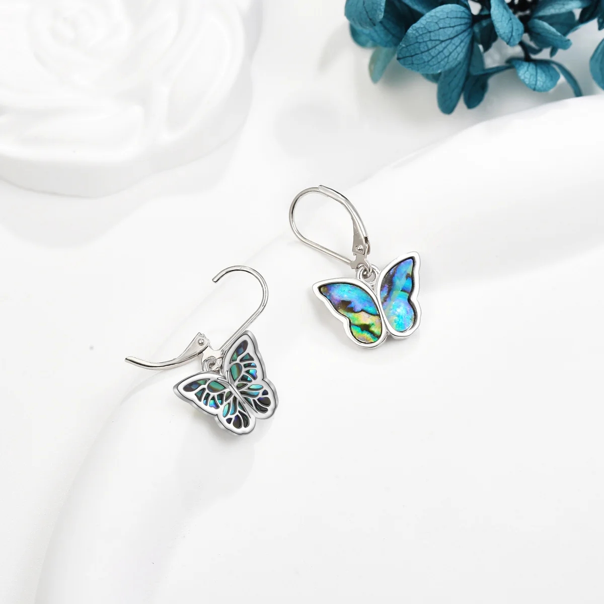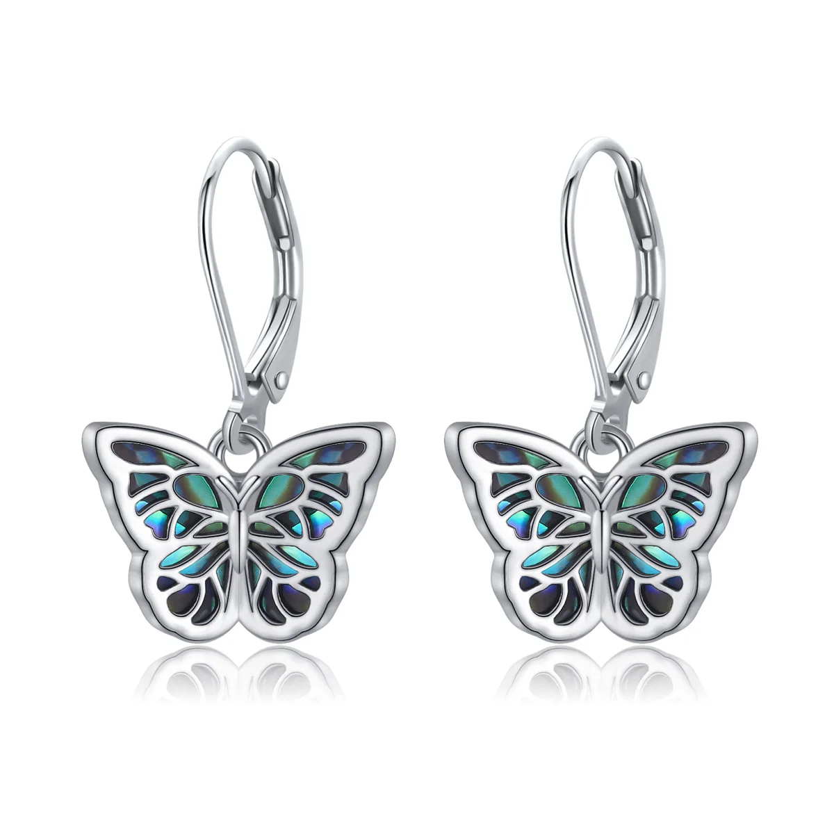 Abalone Shellfish Butterfly Lever-back 925 Sterling Silver Hoop Earrings for Women