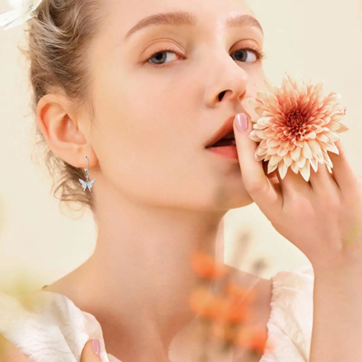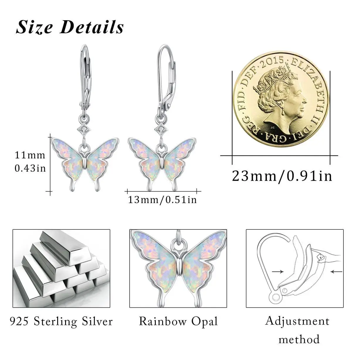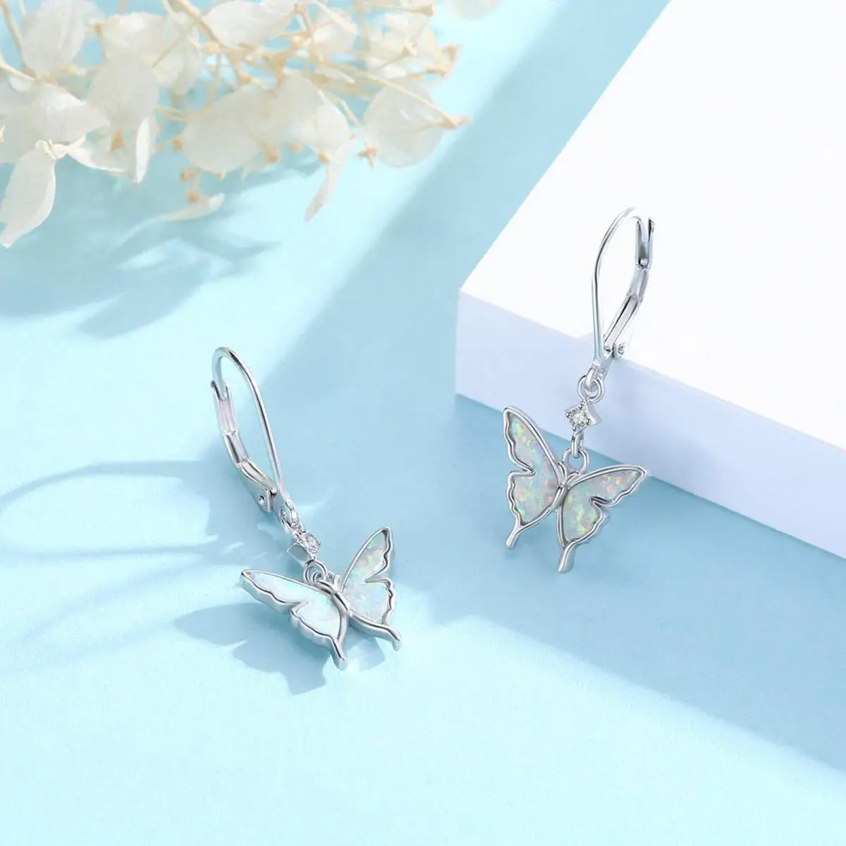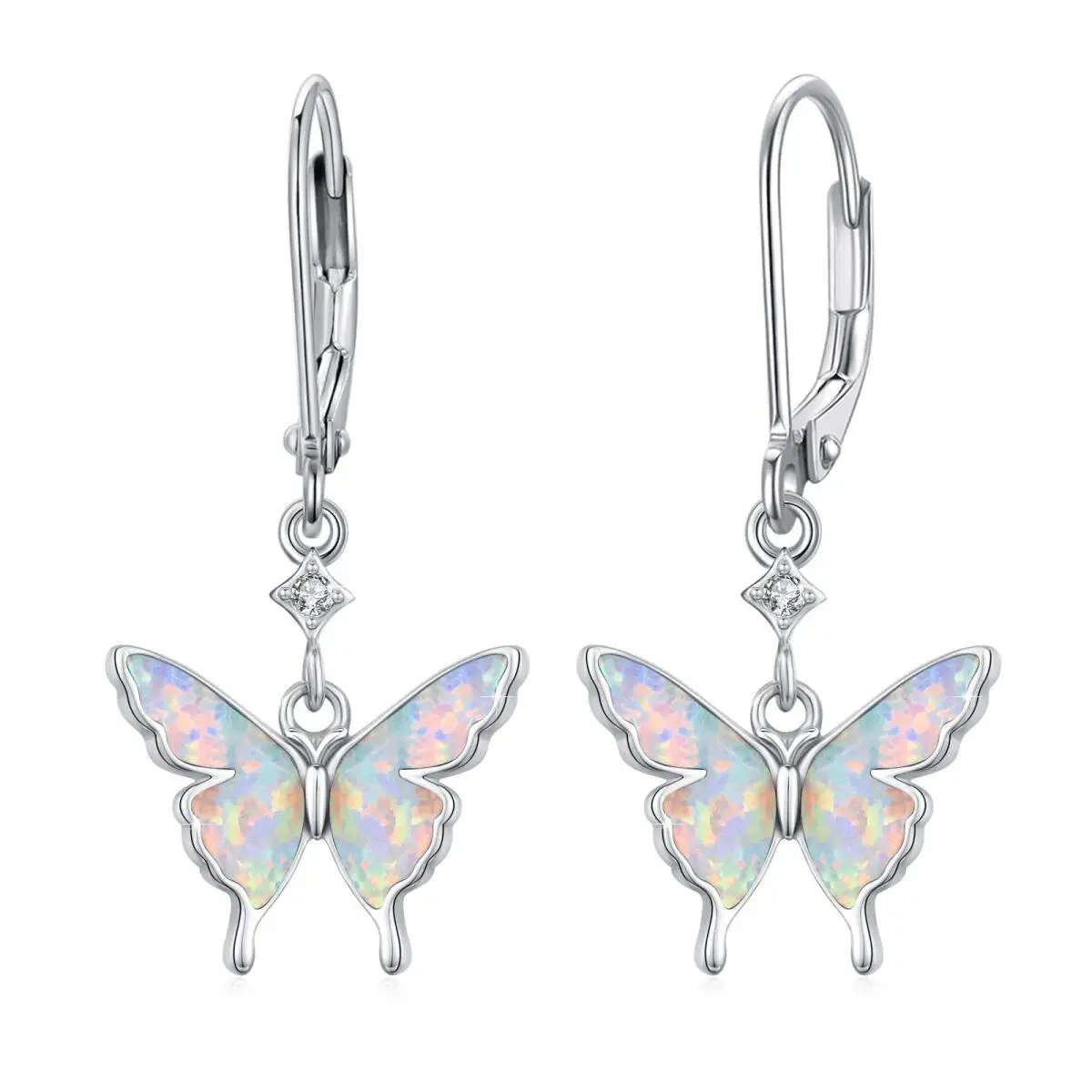 Opal Butterfly 925 Sterling Silver Hoop Drop Earrings for Women