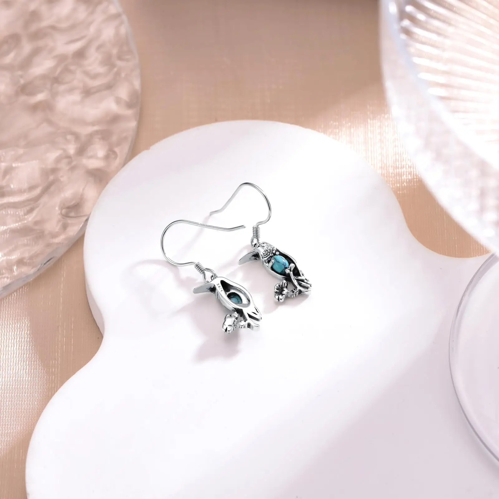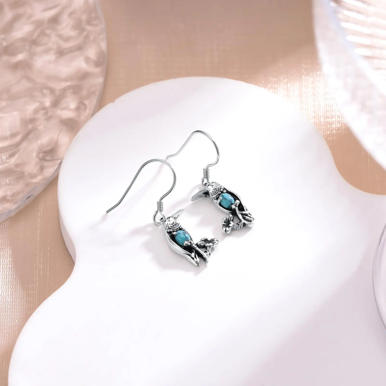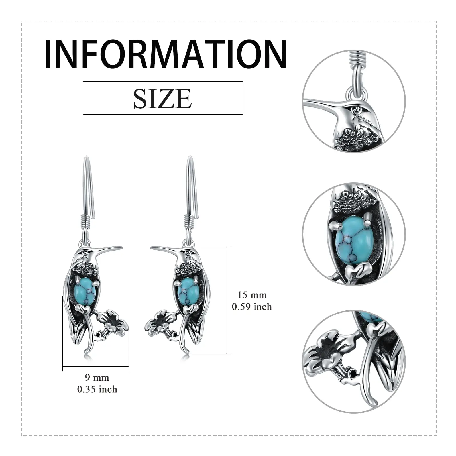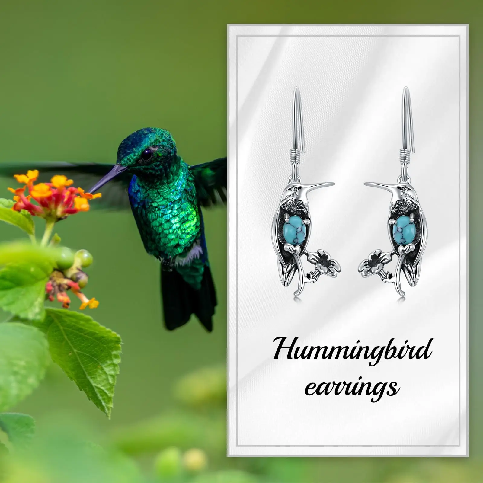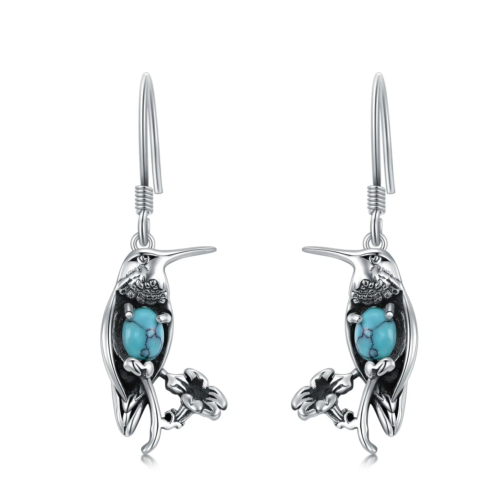Turquoise Hummingbird 9254 Sterling Silver Dangle Drop Earrings for Women