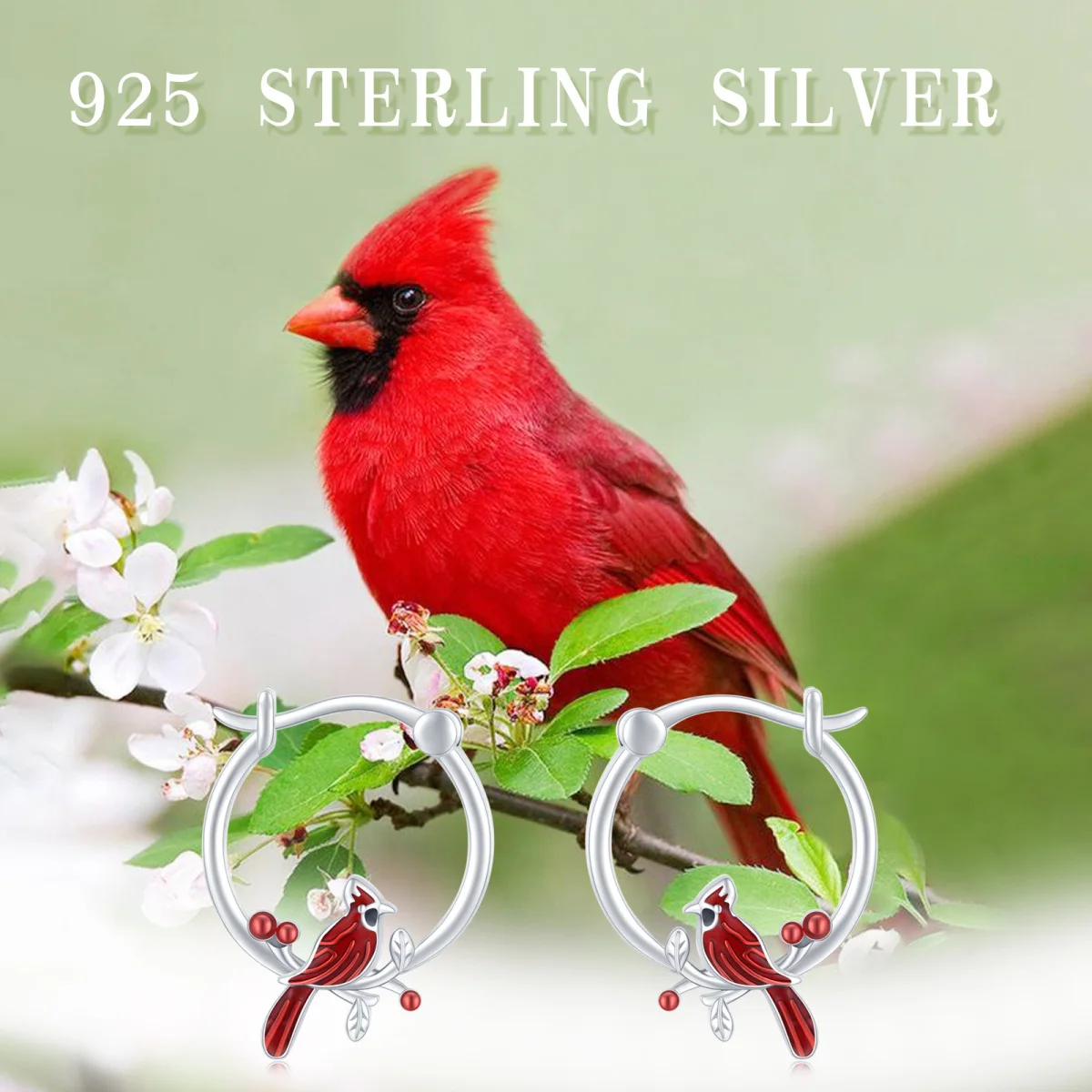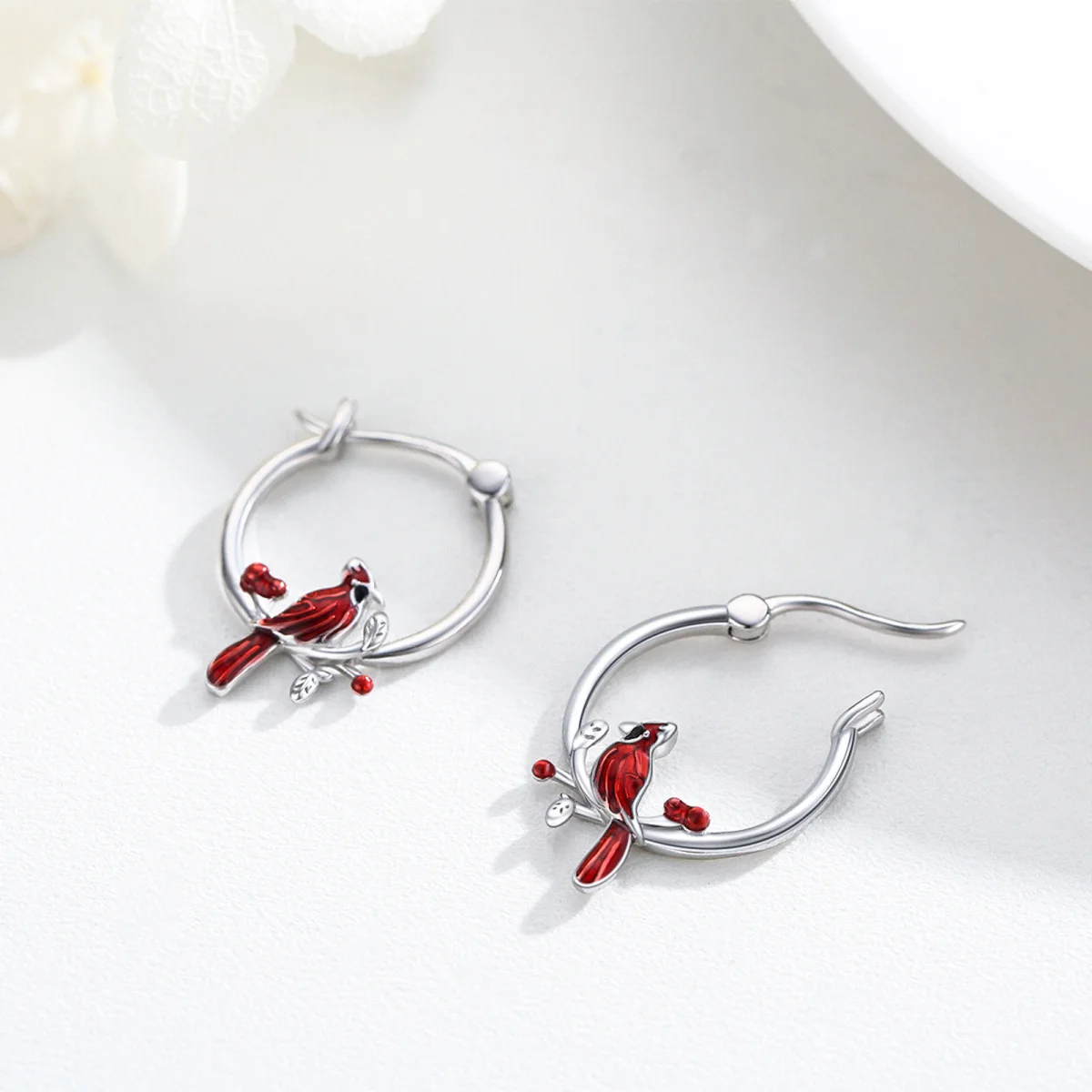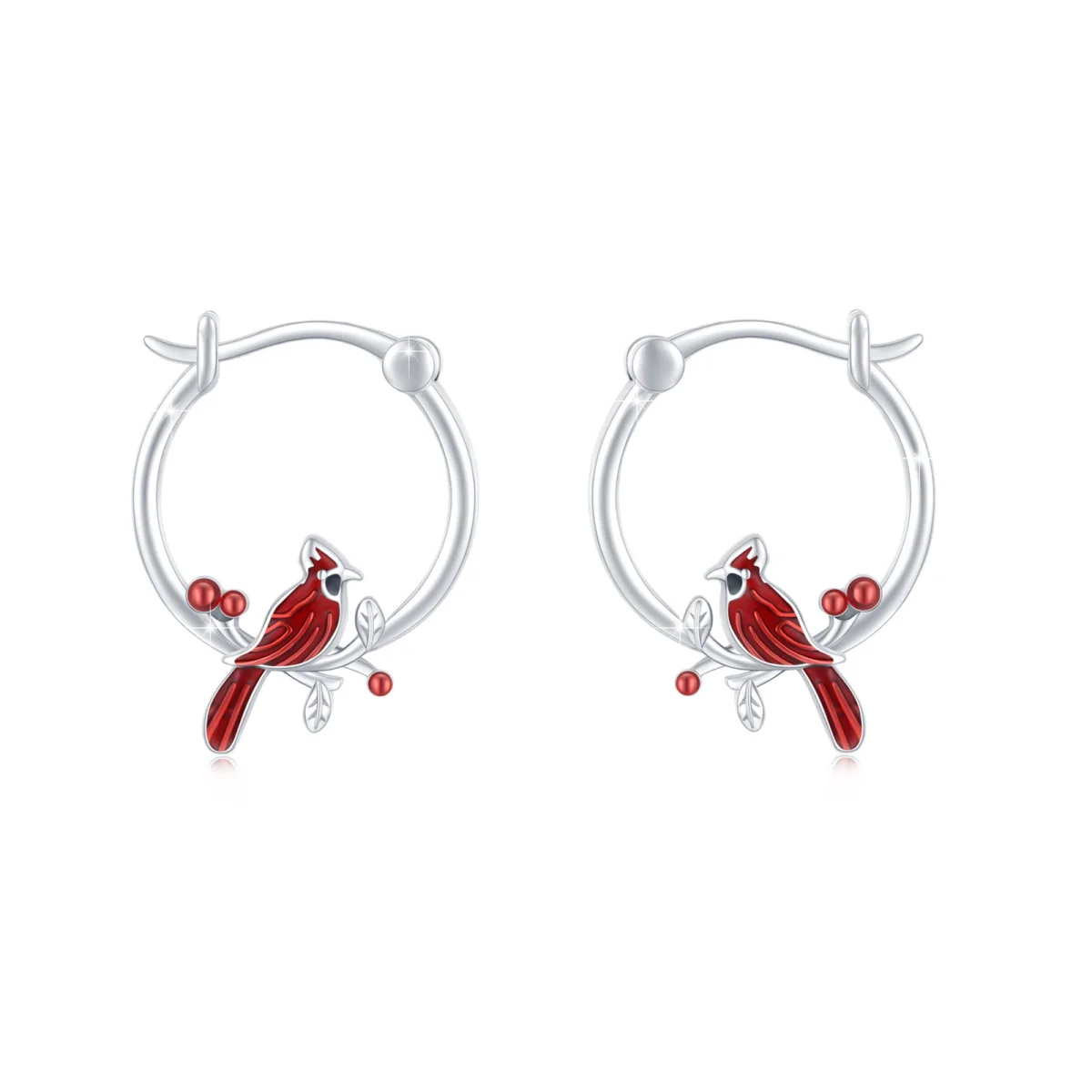 Cardinal Animal Red Bird 925 Sterling Silver Hoop Earrings For Women