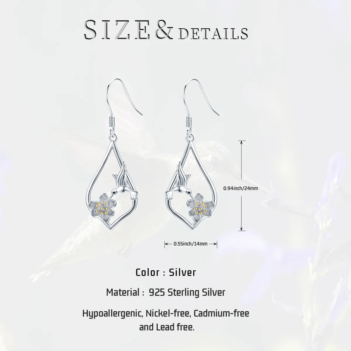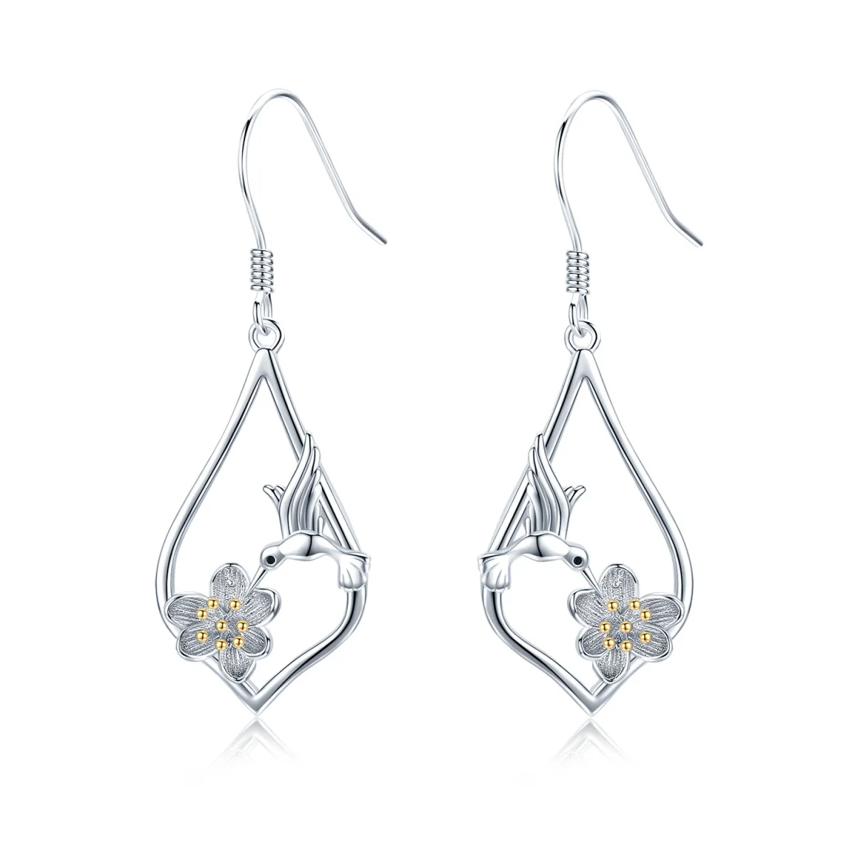 Hummingbird Lotus 925 Sterling Silver Drop Earrings For Women