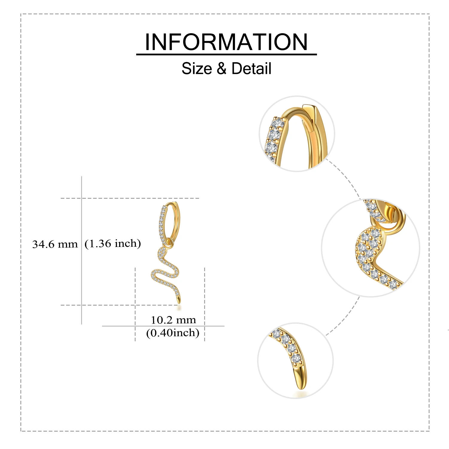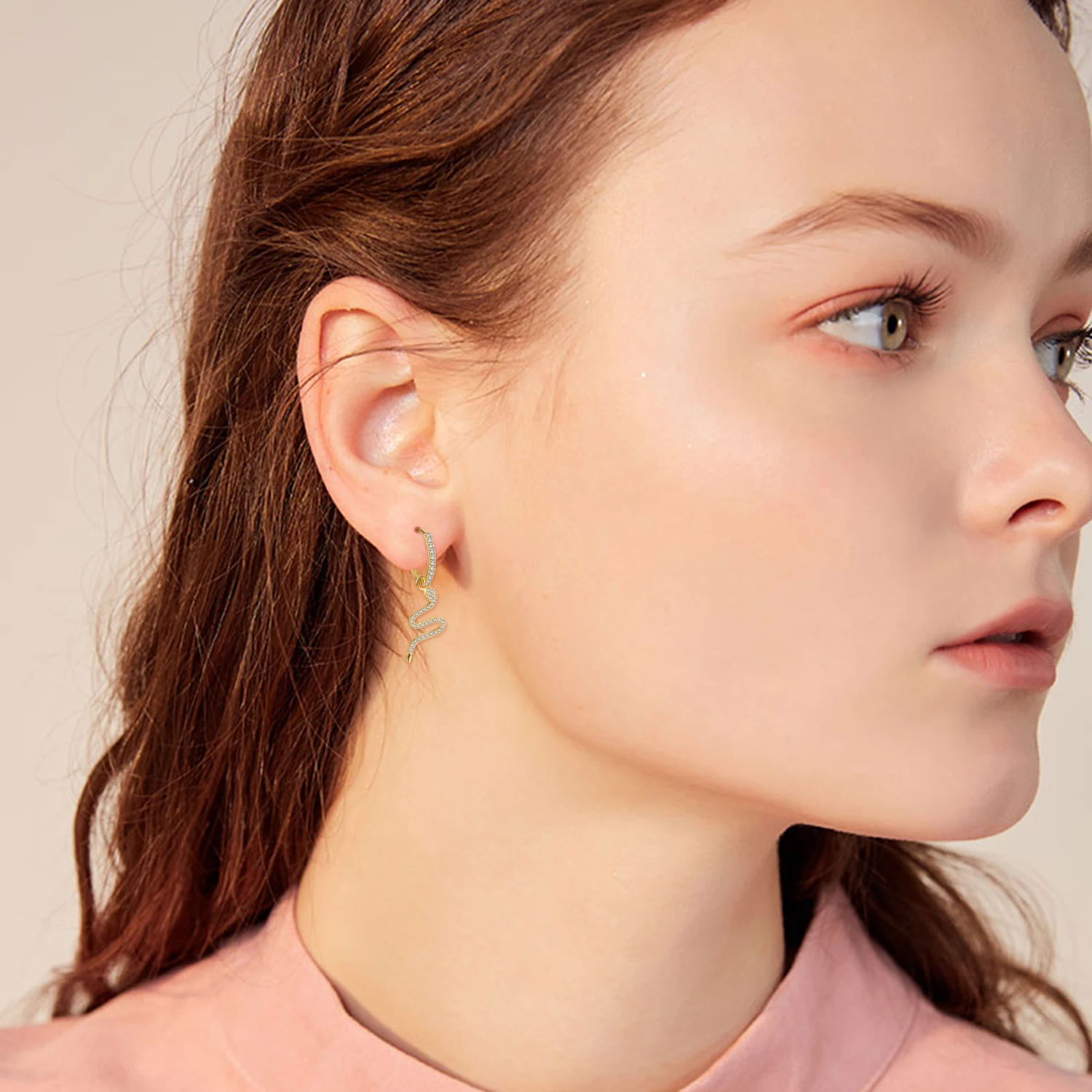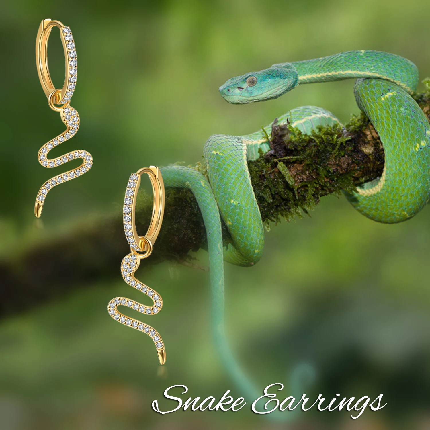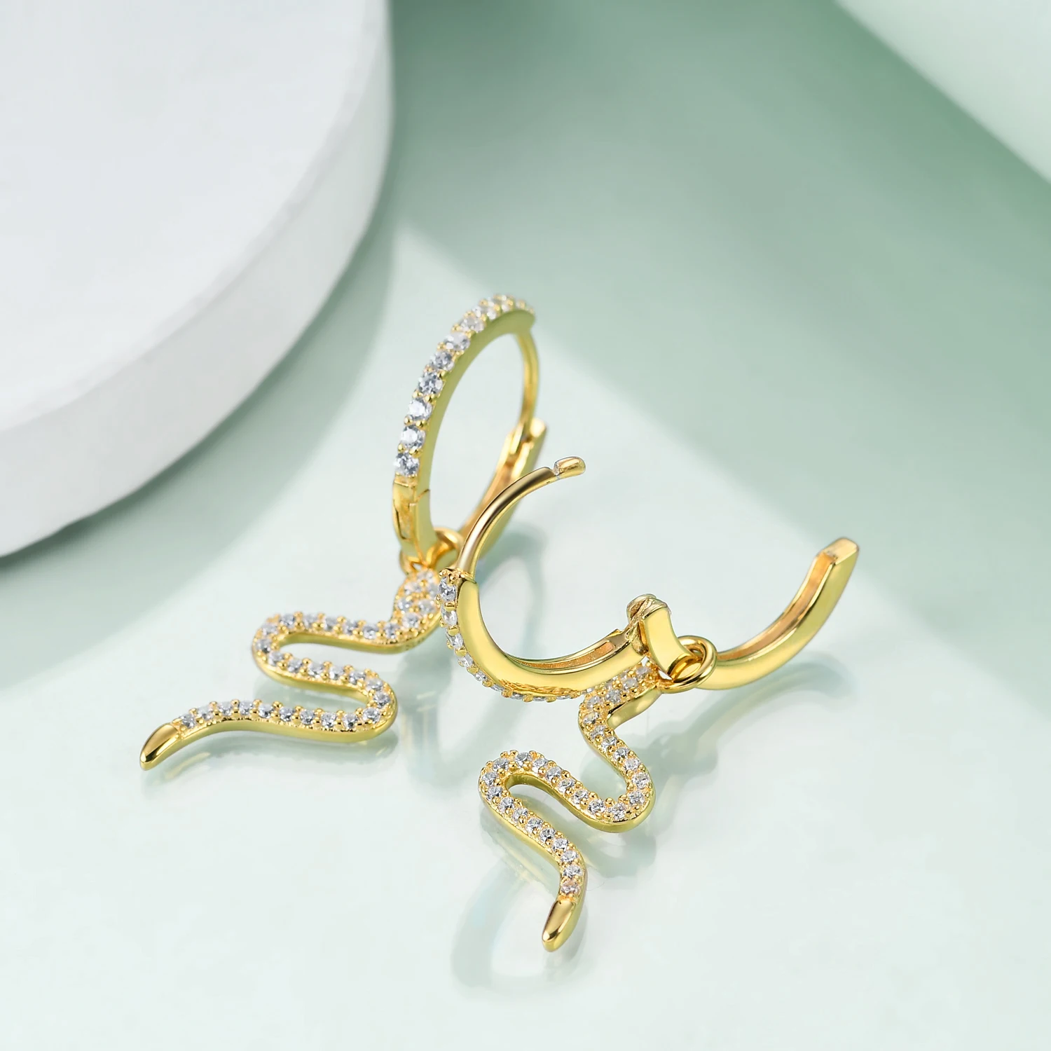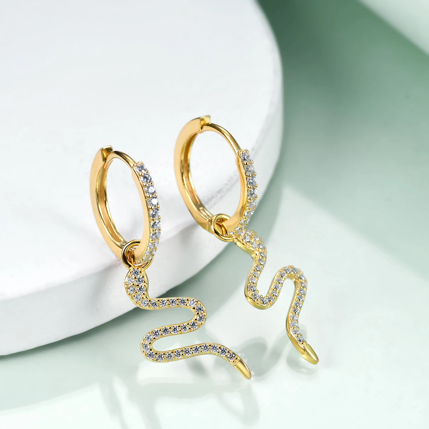 High Quality 925 Sterling Silver Gold Plated Cubic Zircon Snakes Hoop Earrings For Women