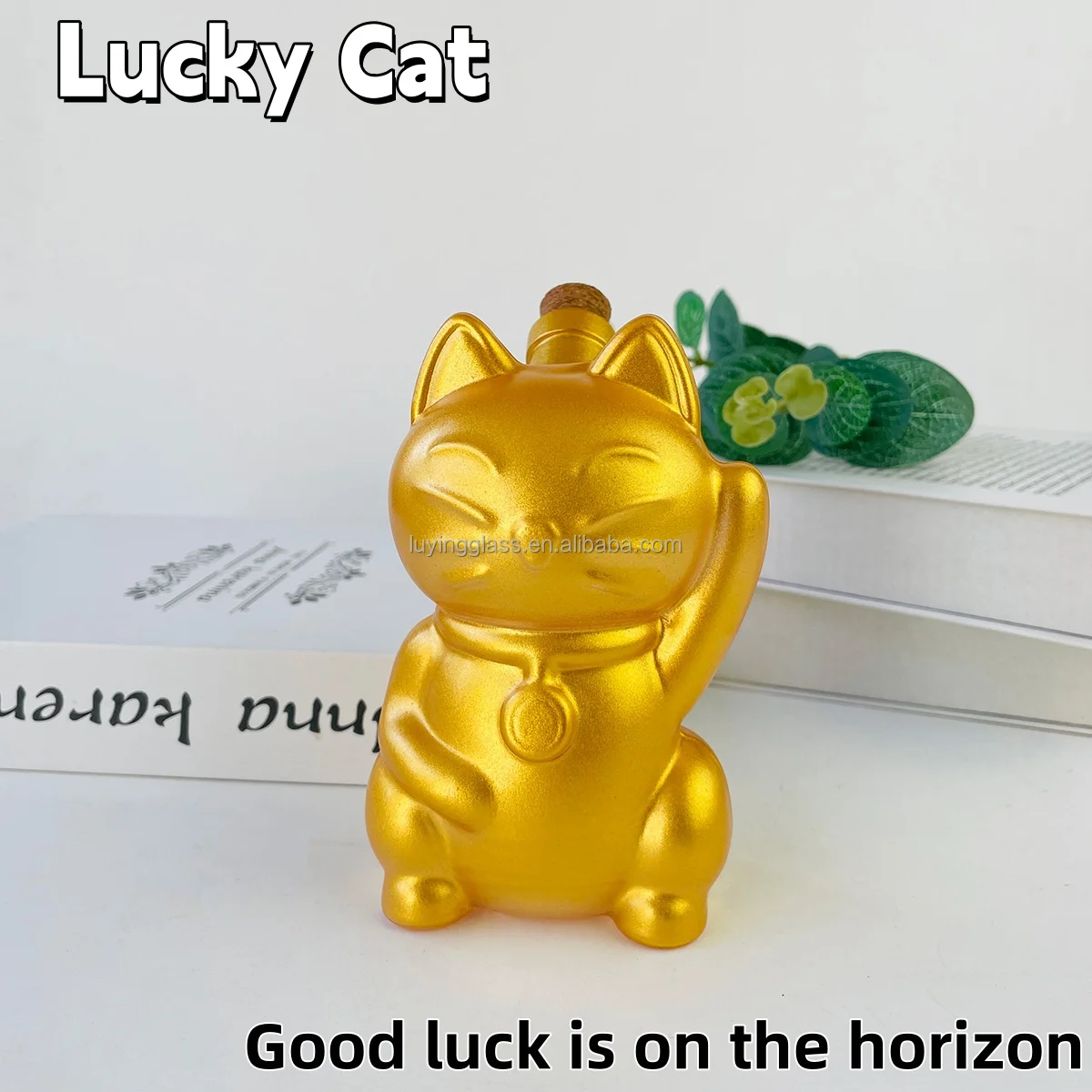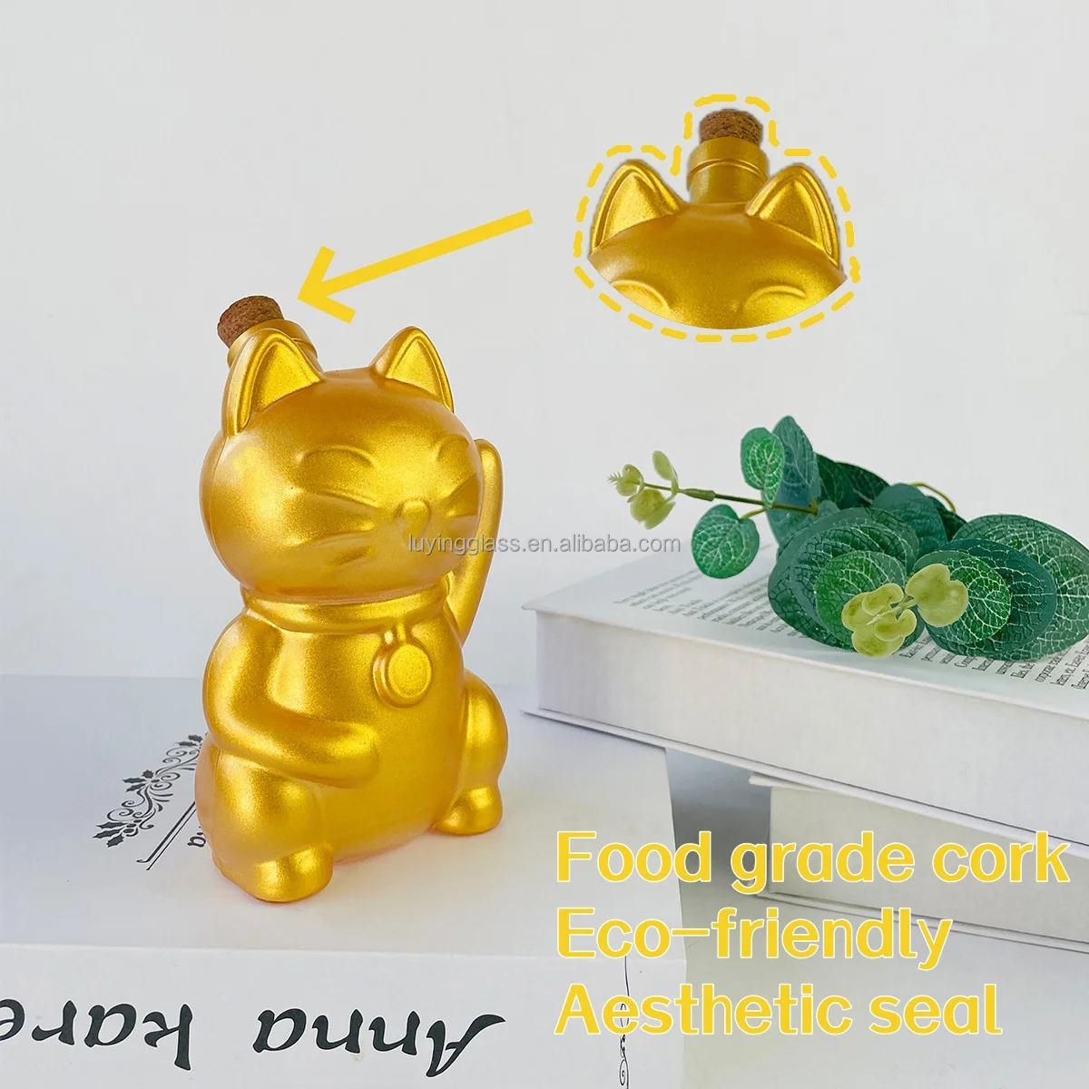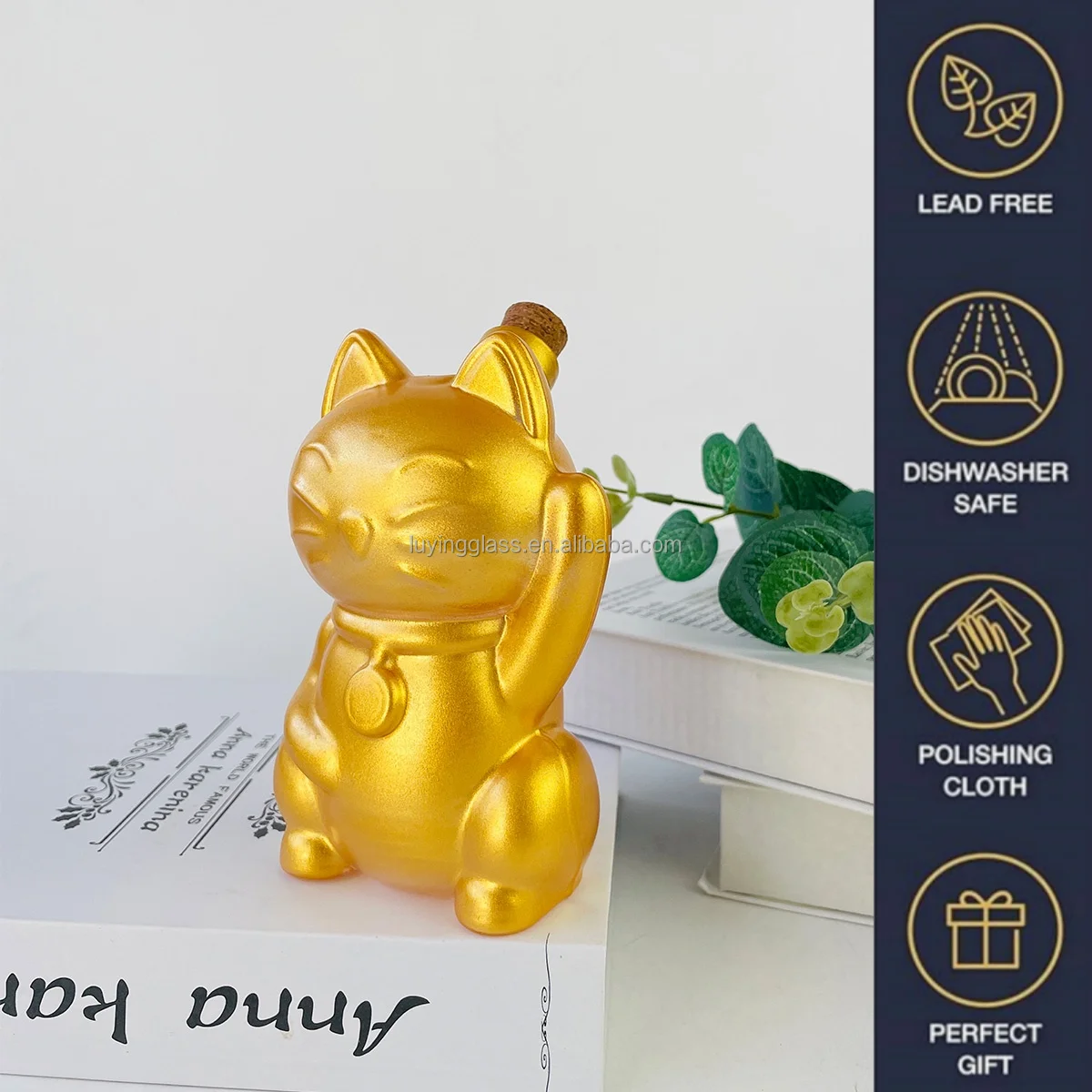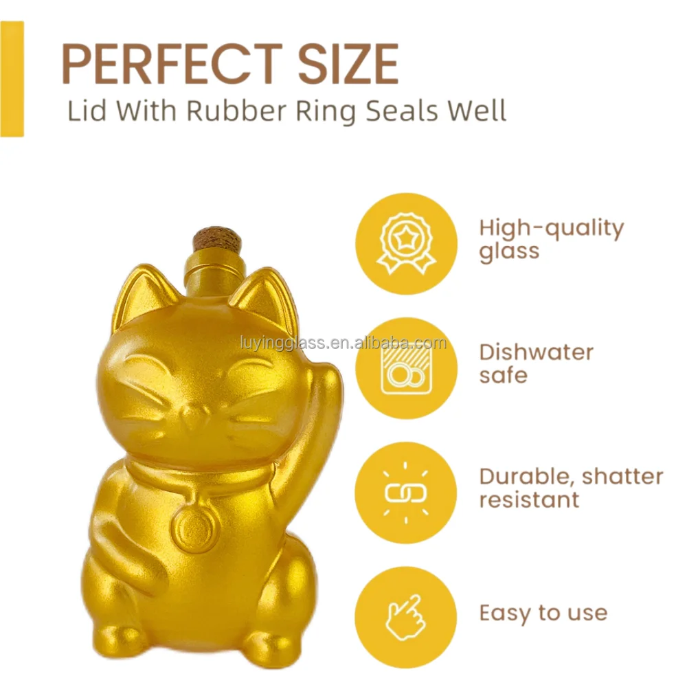 2024 New Design Animal Gold Cartoon Fortune Cat Shape Borosilicate Glass Wine Decanter Decorative Liquid Bottle with Cork