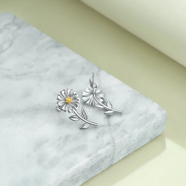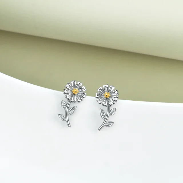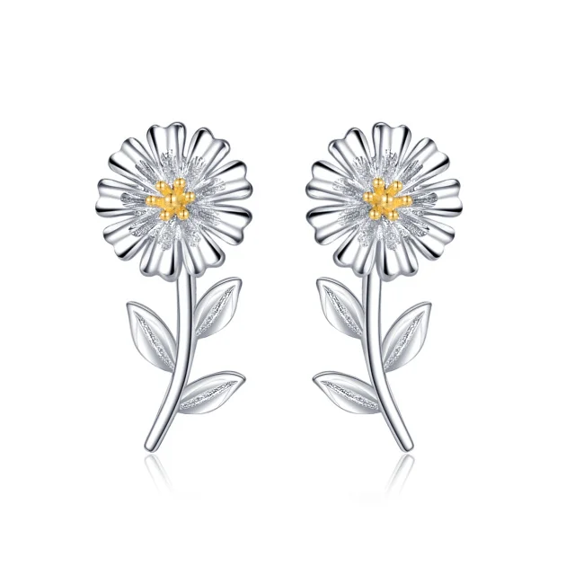 New Designs 925 Sterling Silver Two Tone Daisy Flower Stud Earrings For Women