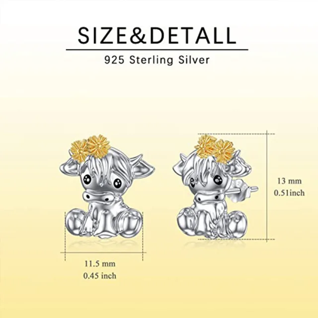 New Design Cute Animal 925 Sterling Silver Two Tone Highland Cow Stud Earrings For Women