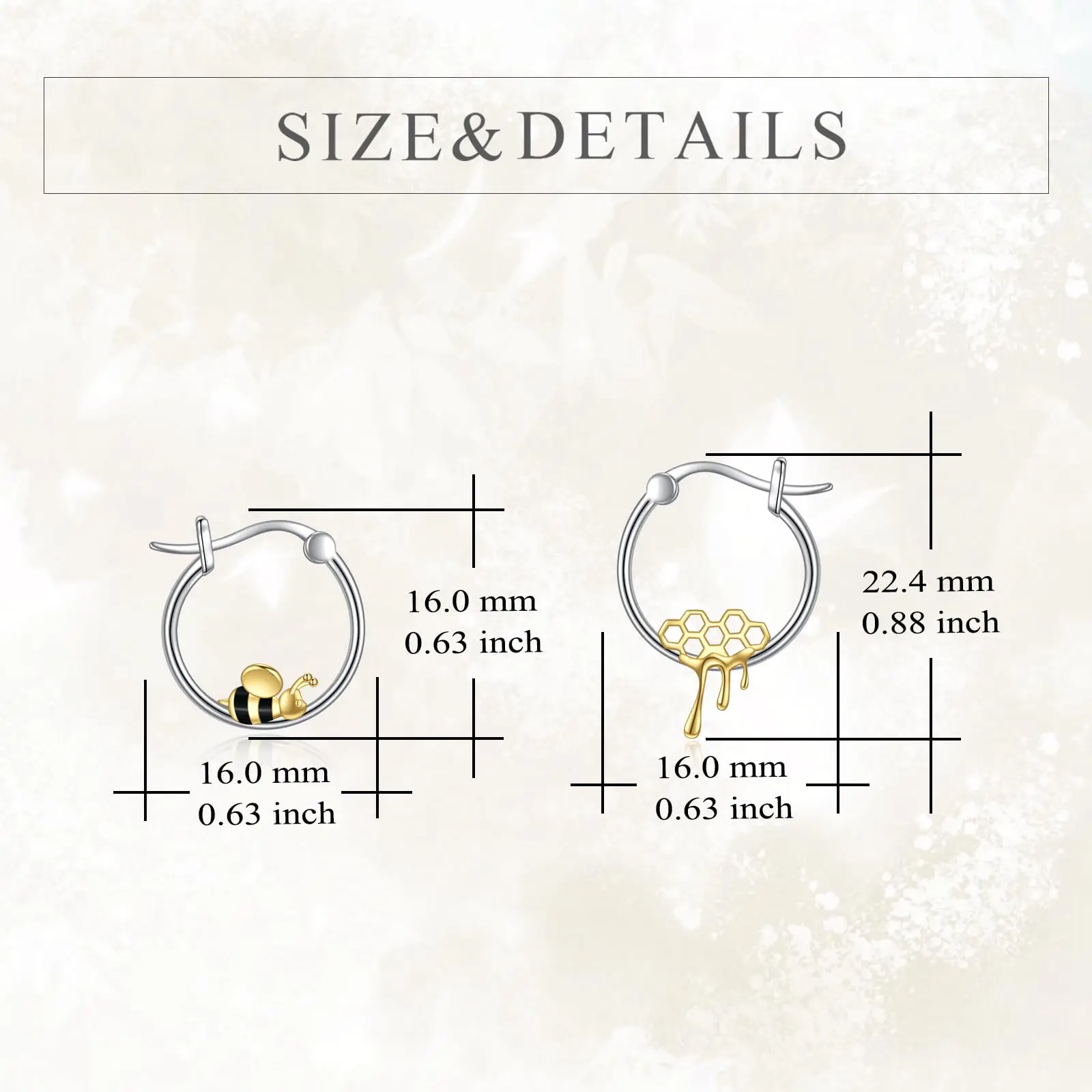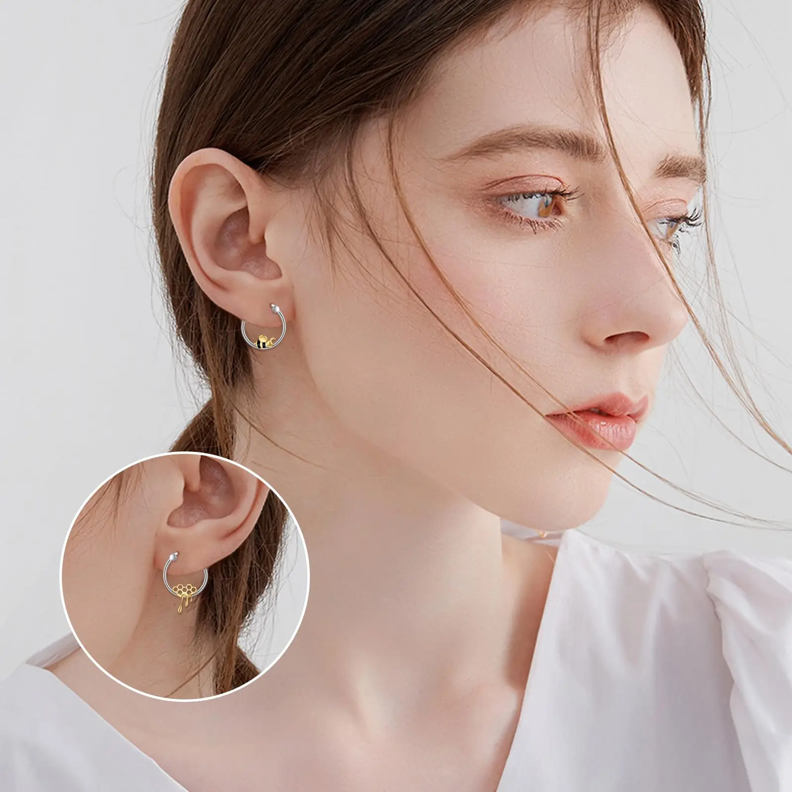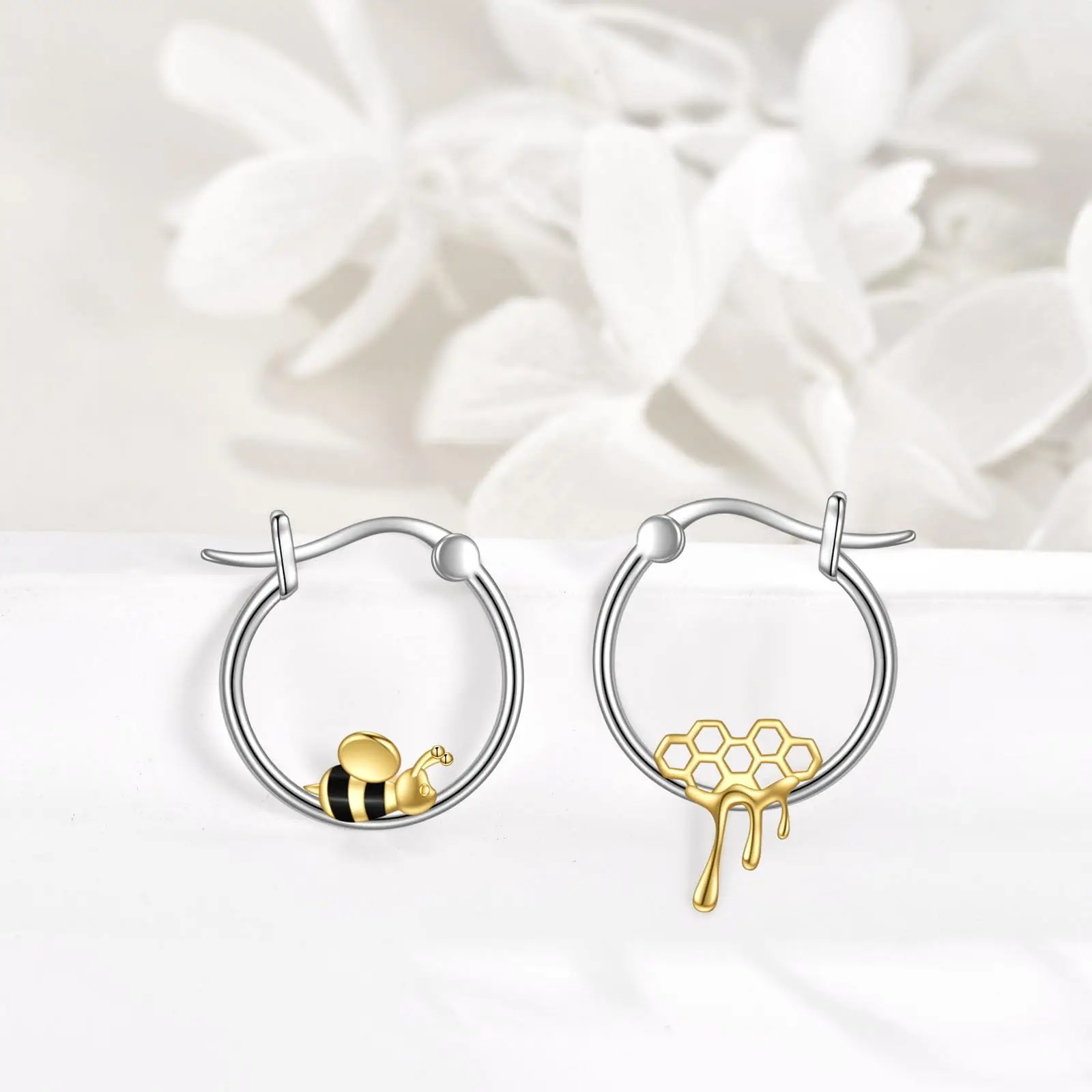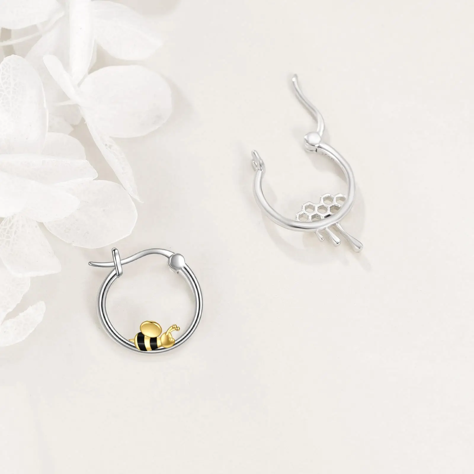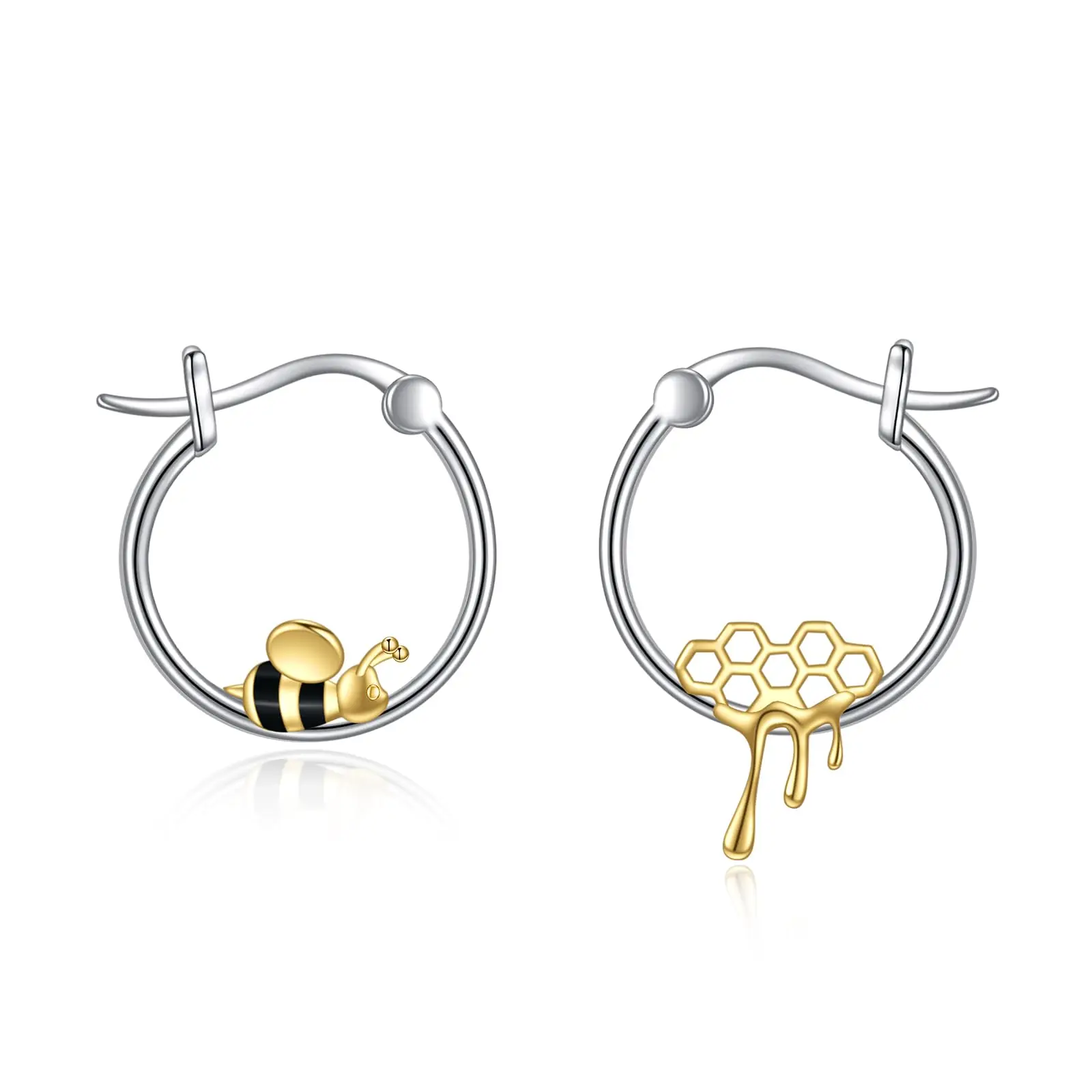 Yellow Bee Honeycomb Hoop 925 Sterling Silver Hoop Earrings for Women