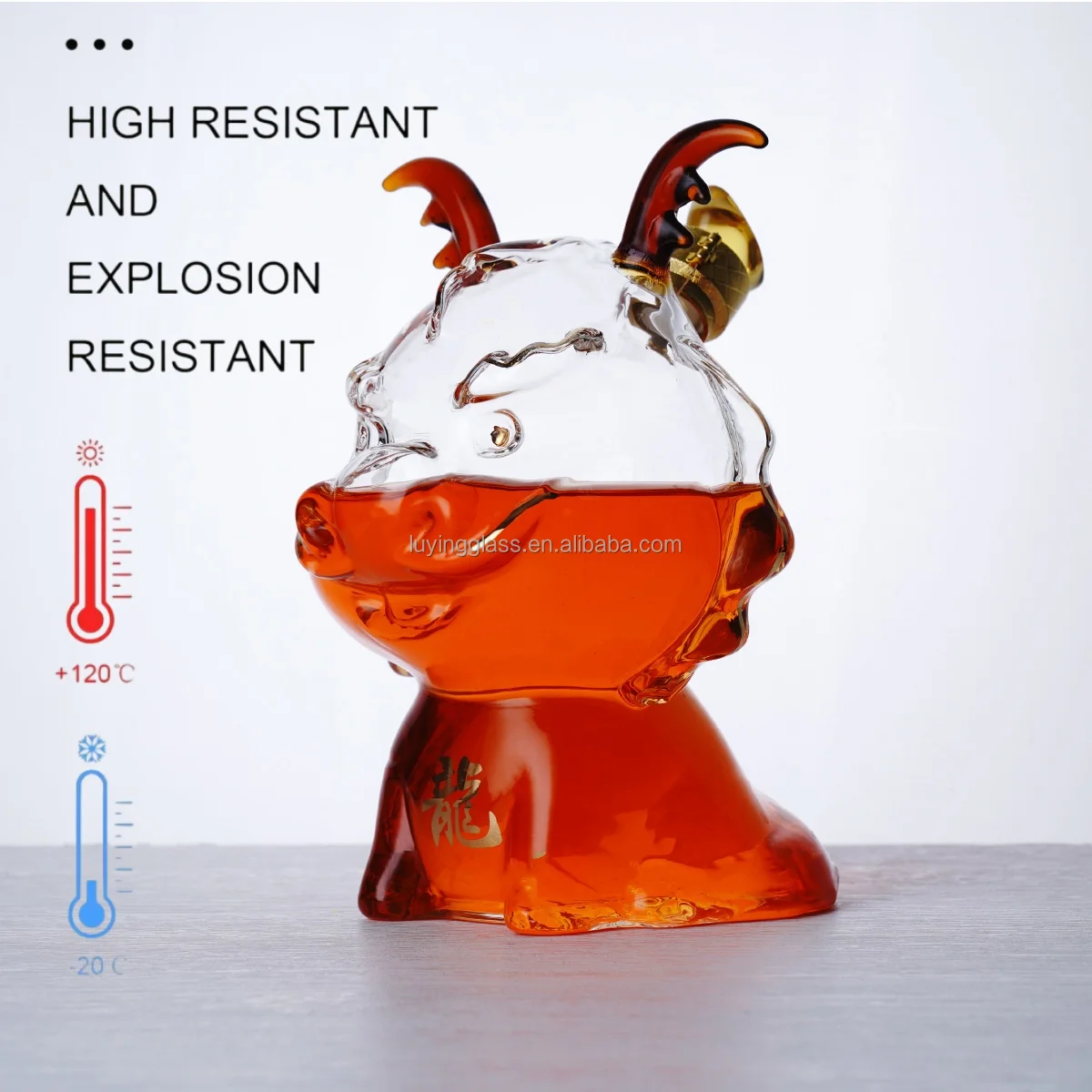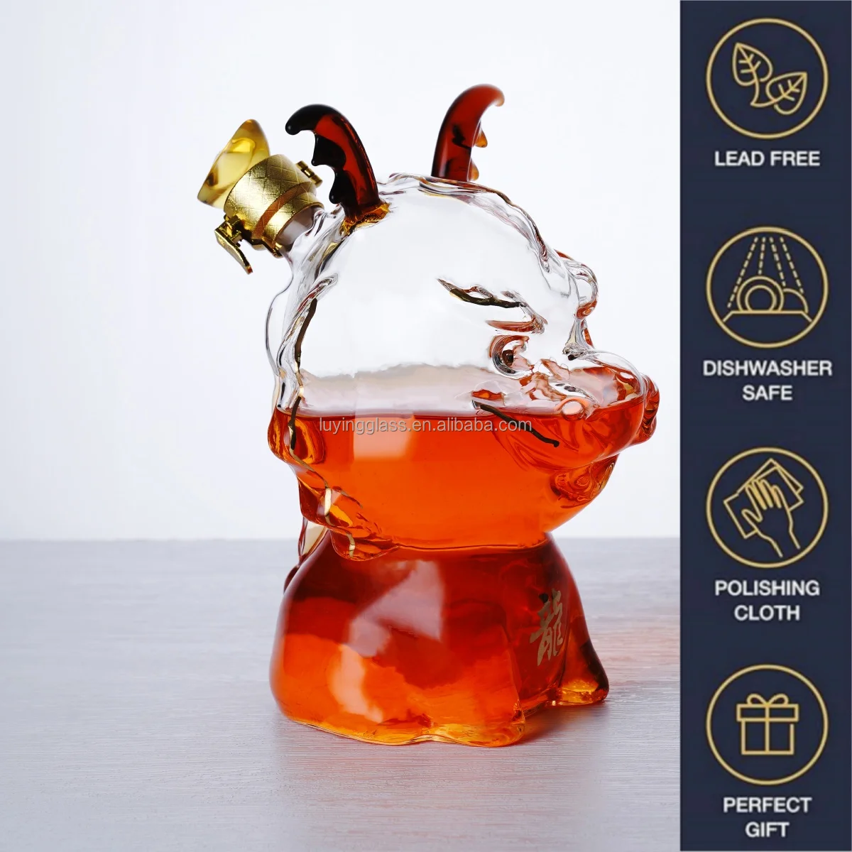 Wholesale Custom Eco-friendly Cartoon Dragon Shape Borosilicate Glass Wine Decanter Whiskey Bottle for Party