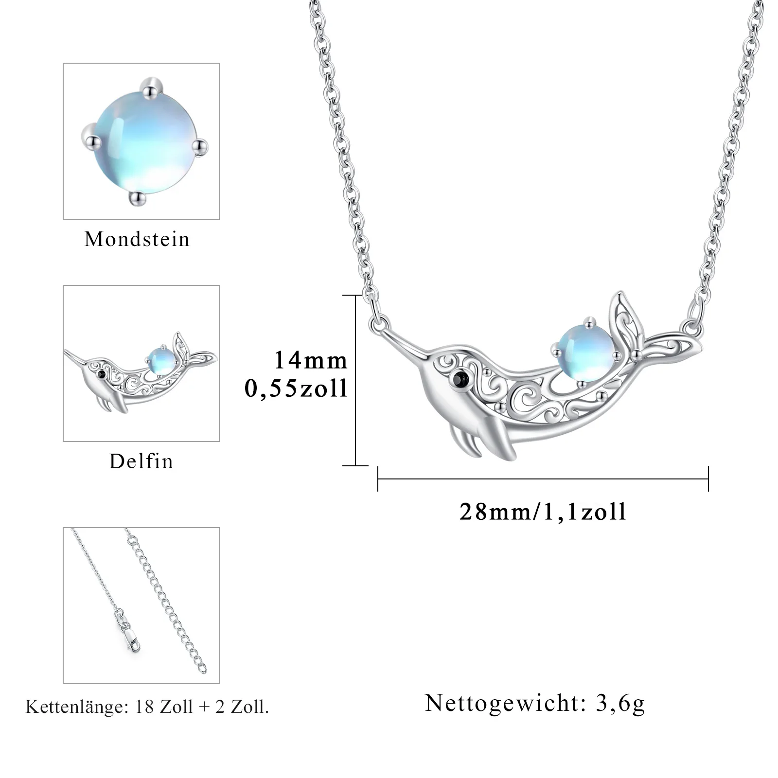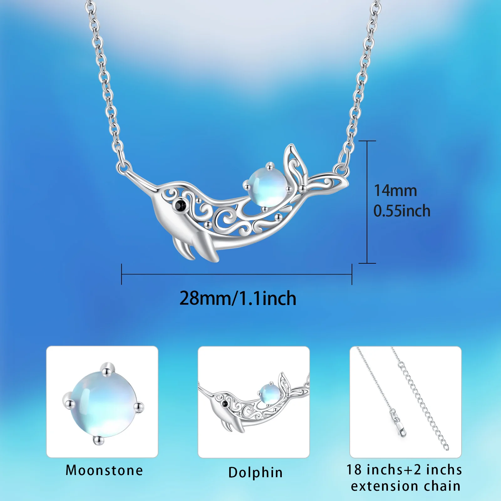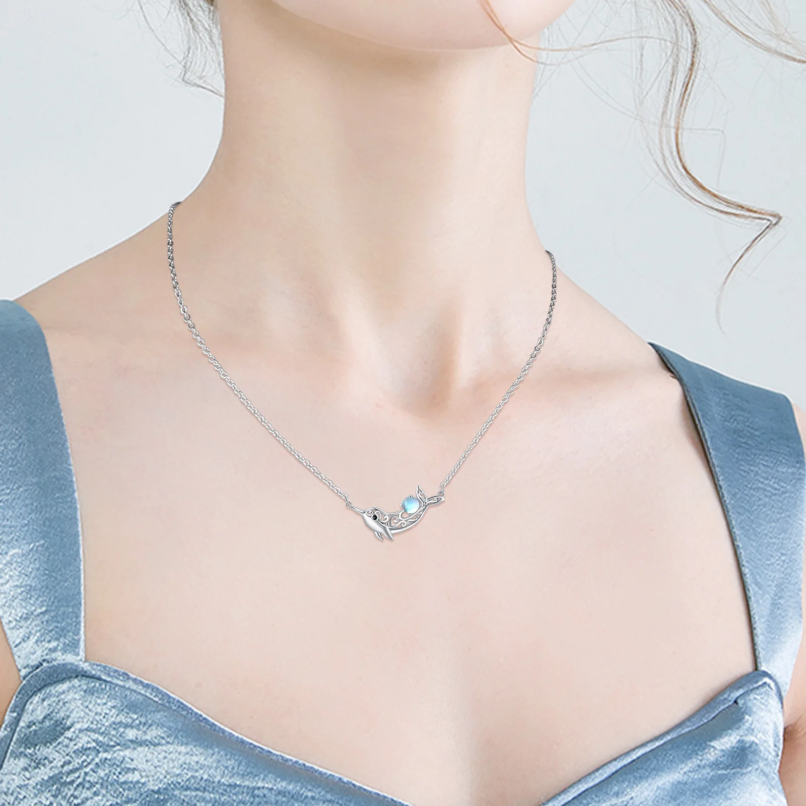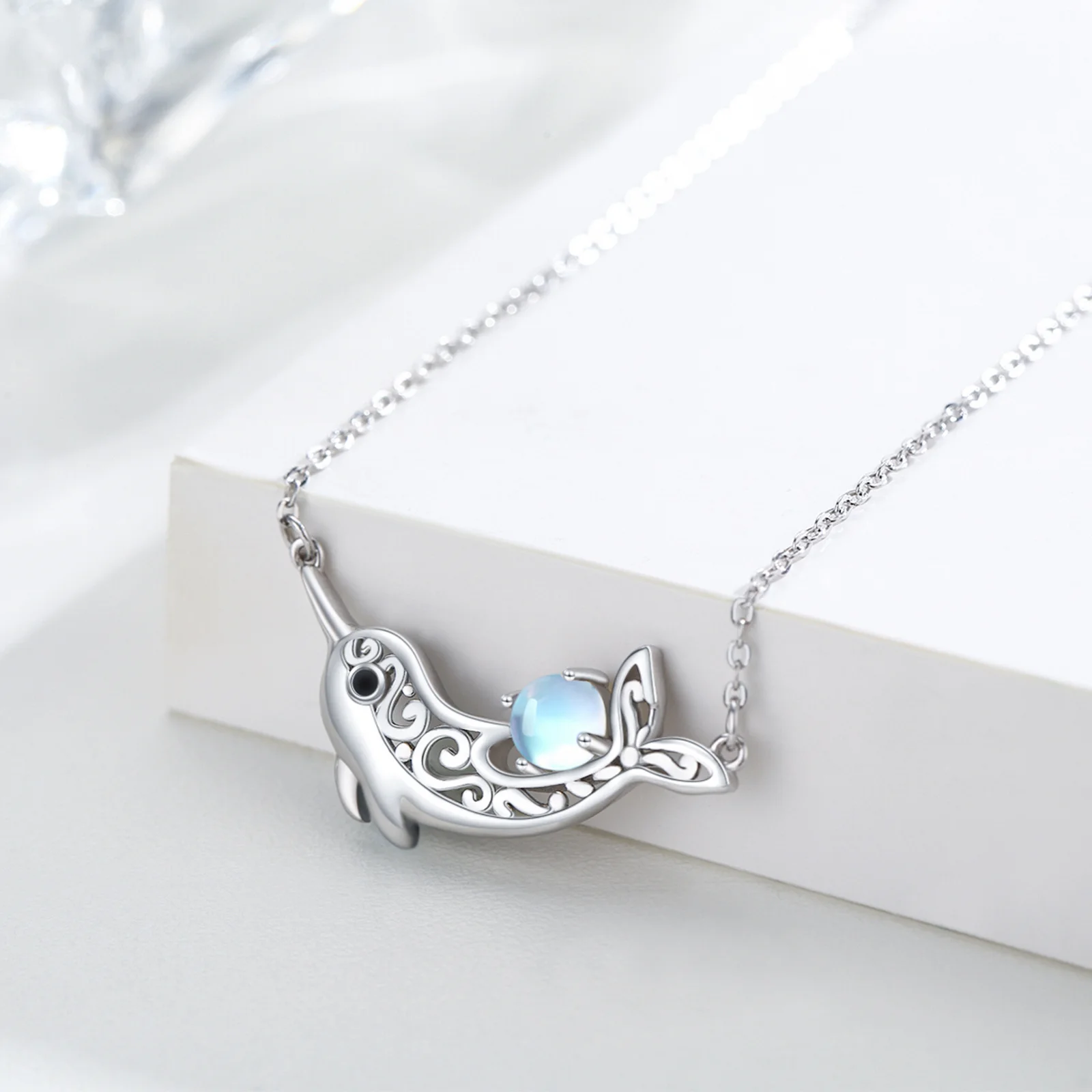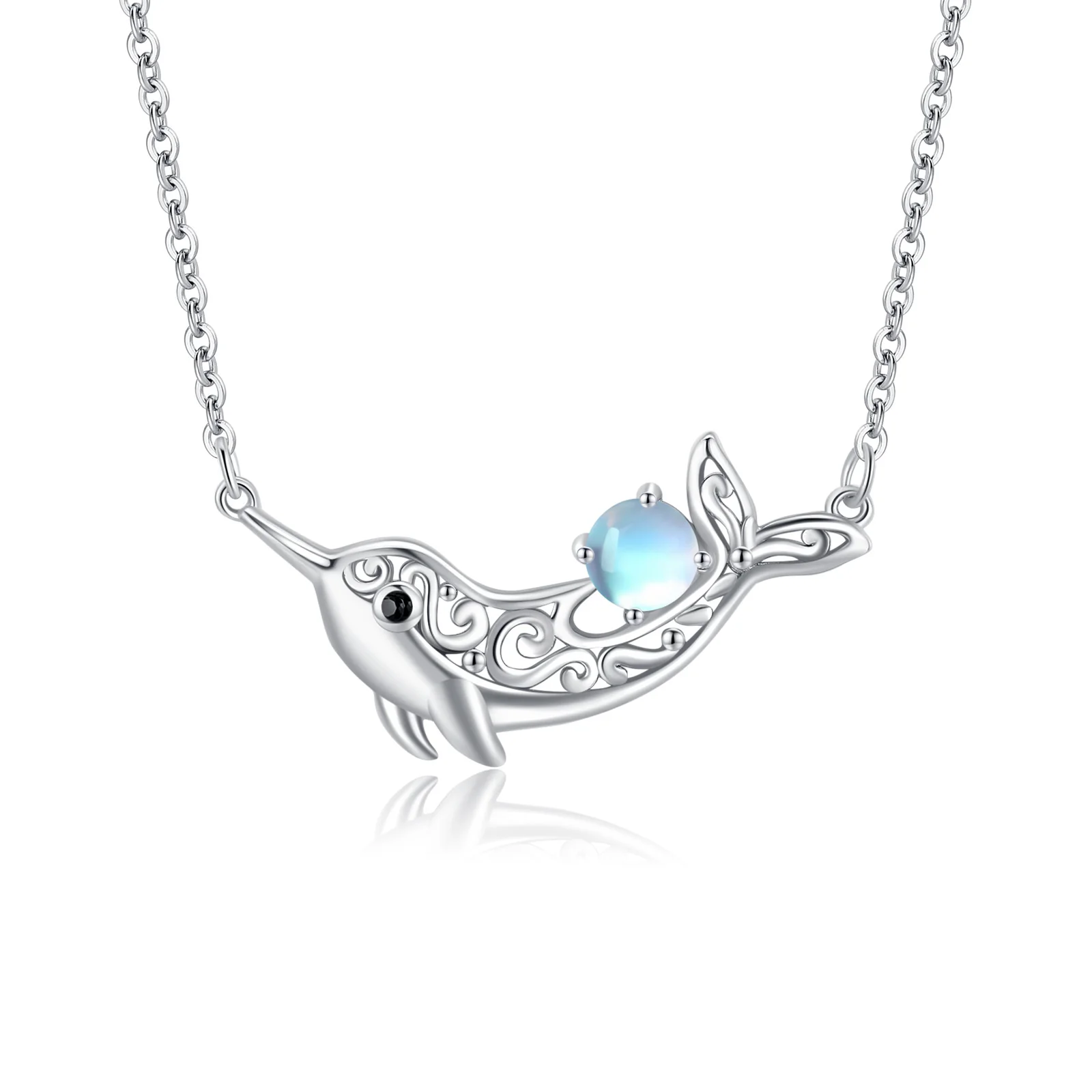 Fine Jewelry Custom Creative 925 Sterling silver Lovely Animal Moonstone Dolphin Necklace