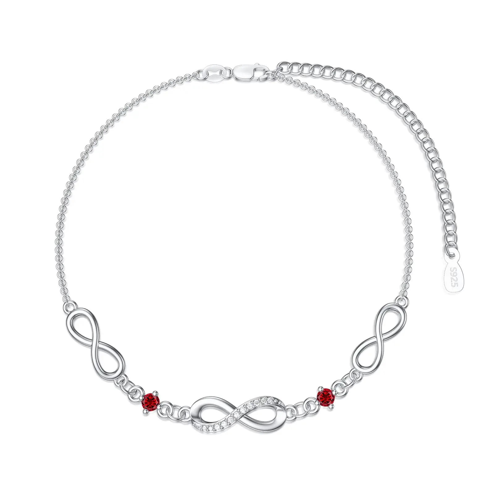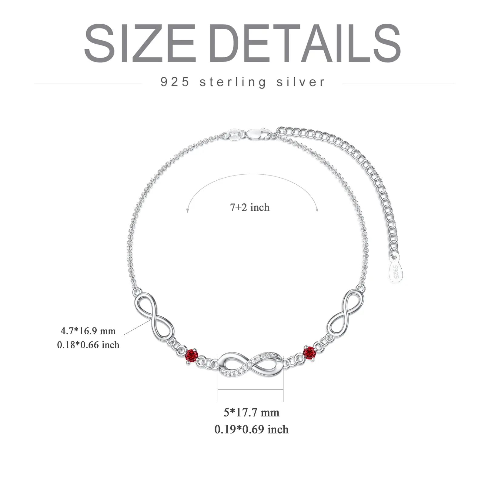 Fine Jewelry 925 Sterling Silver 7+2 Inch Chain Adjustable Birthstone Infinity Bracelet