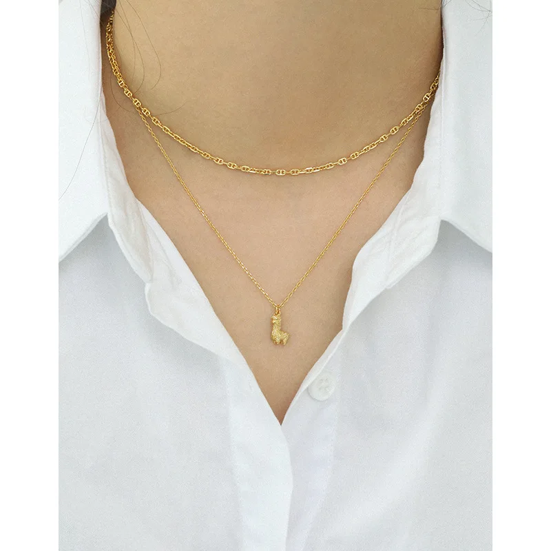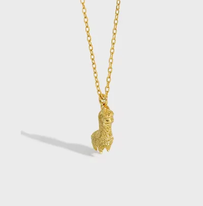 Fine Jewelry 925 Sterling Silver 18k Gold Plated Clavicle Mini Alpaca Pendant Necklace For Women
