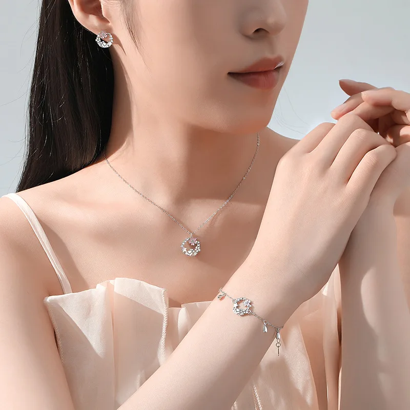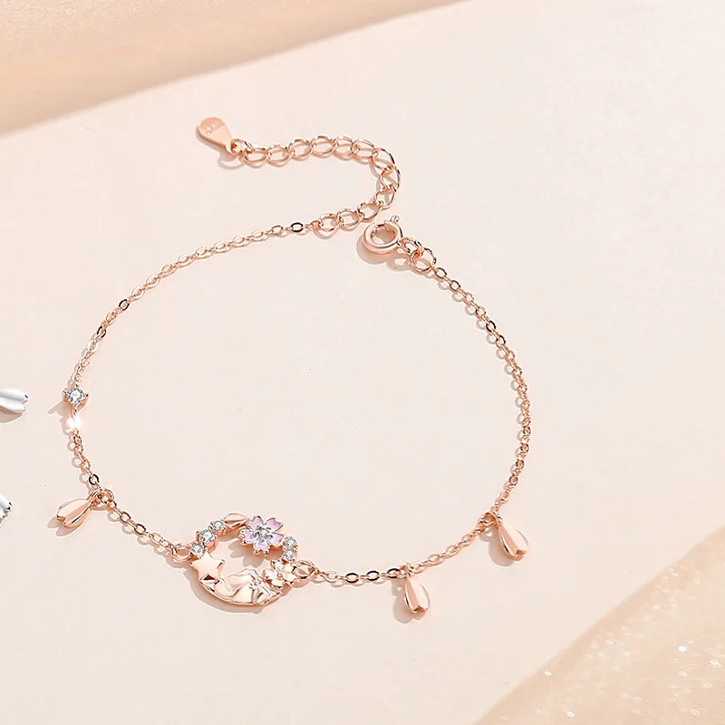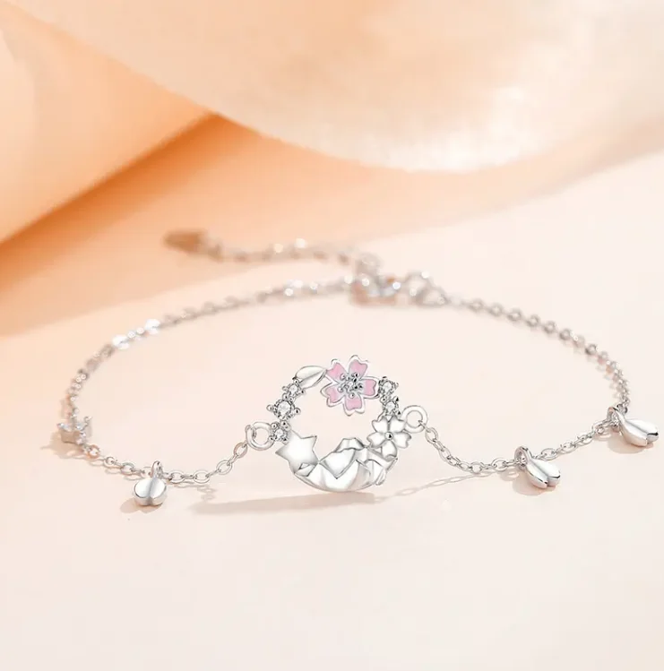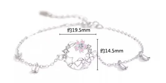 Fashion Jewelry Custom Ins 925 Sterling Silver Pink Flower Charm Chain Bracelet For Women