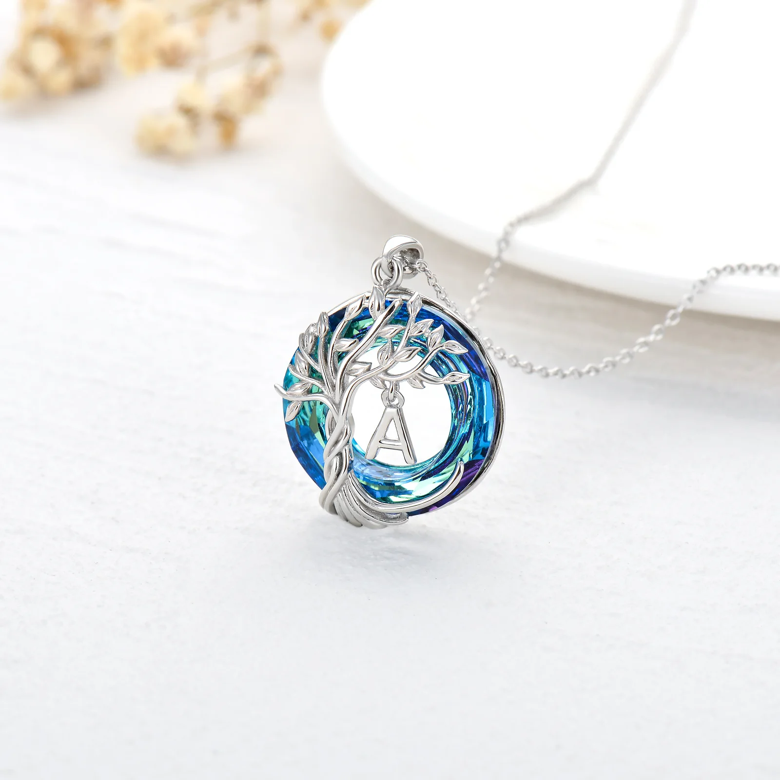 Factory Sale Custom 925 Sterling Silver Jewelry Tree Of Life Initials A Letter Pendant Necklace