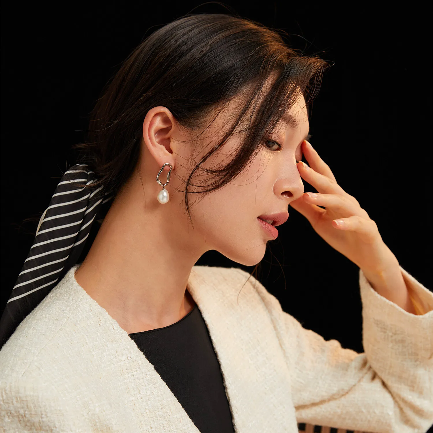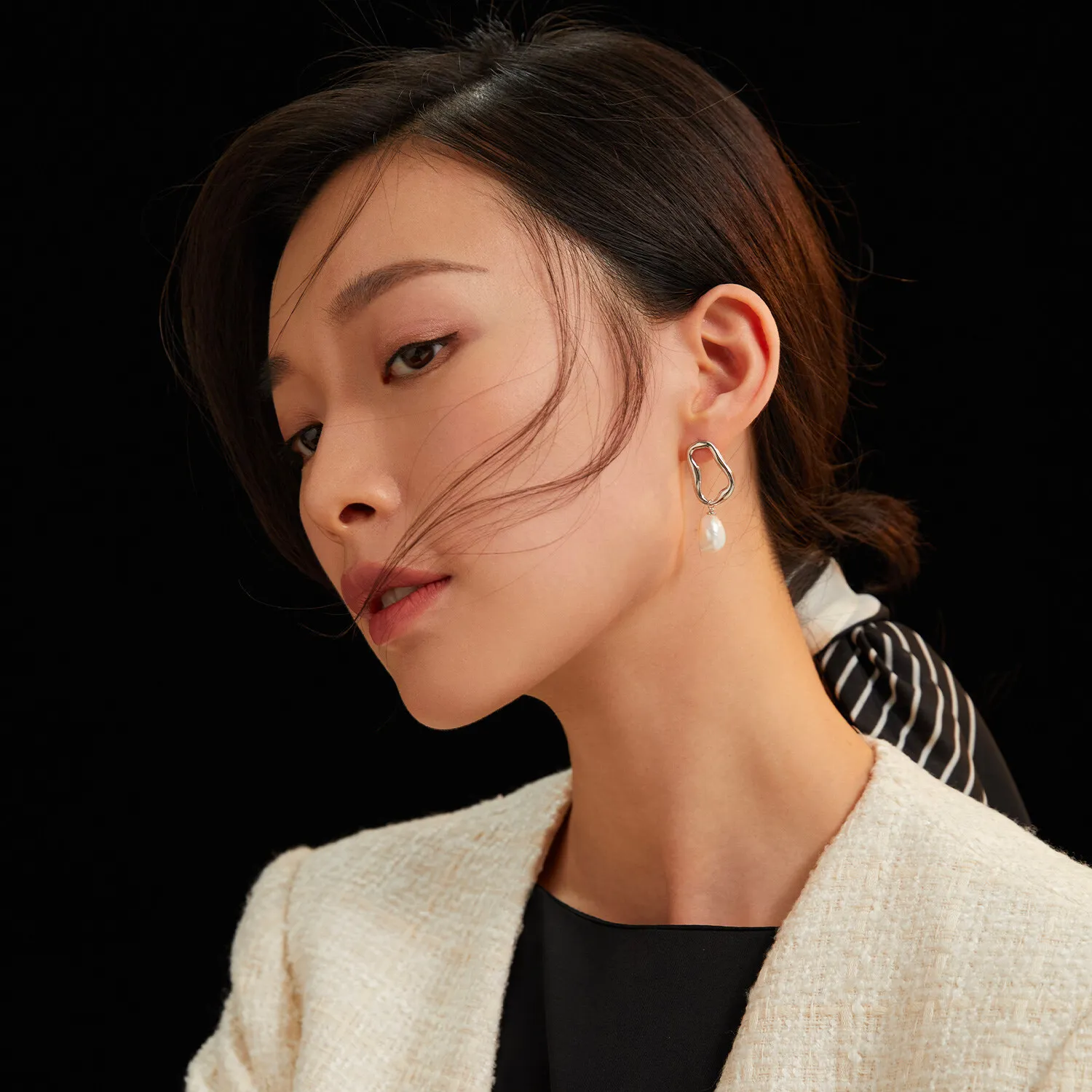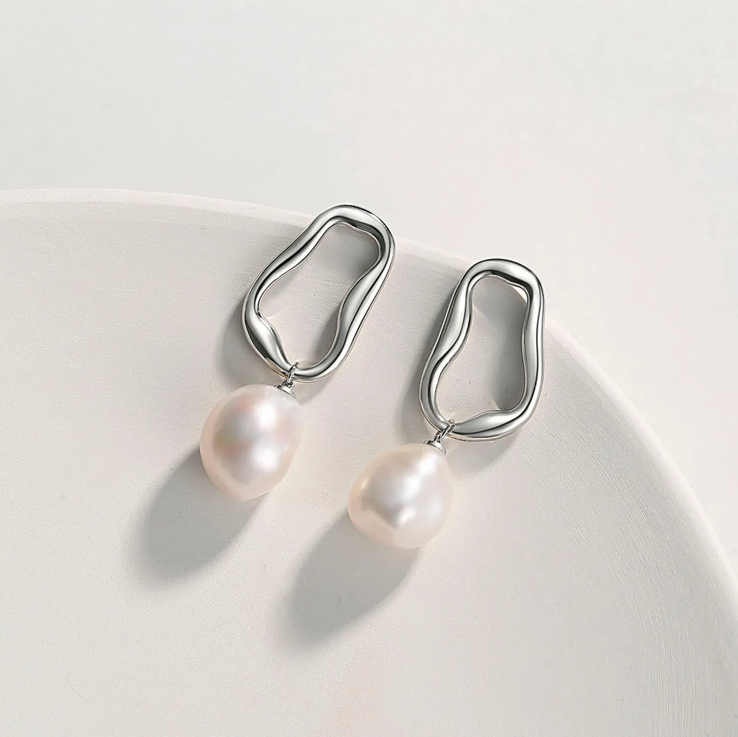 925 Sterling Silver Irregularity Hollow Rectangular Freshwater Pearl Ear Drop Stud Earrings For Women