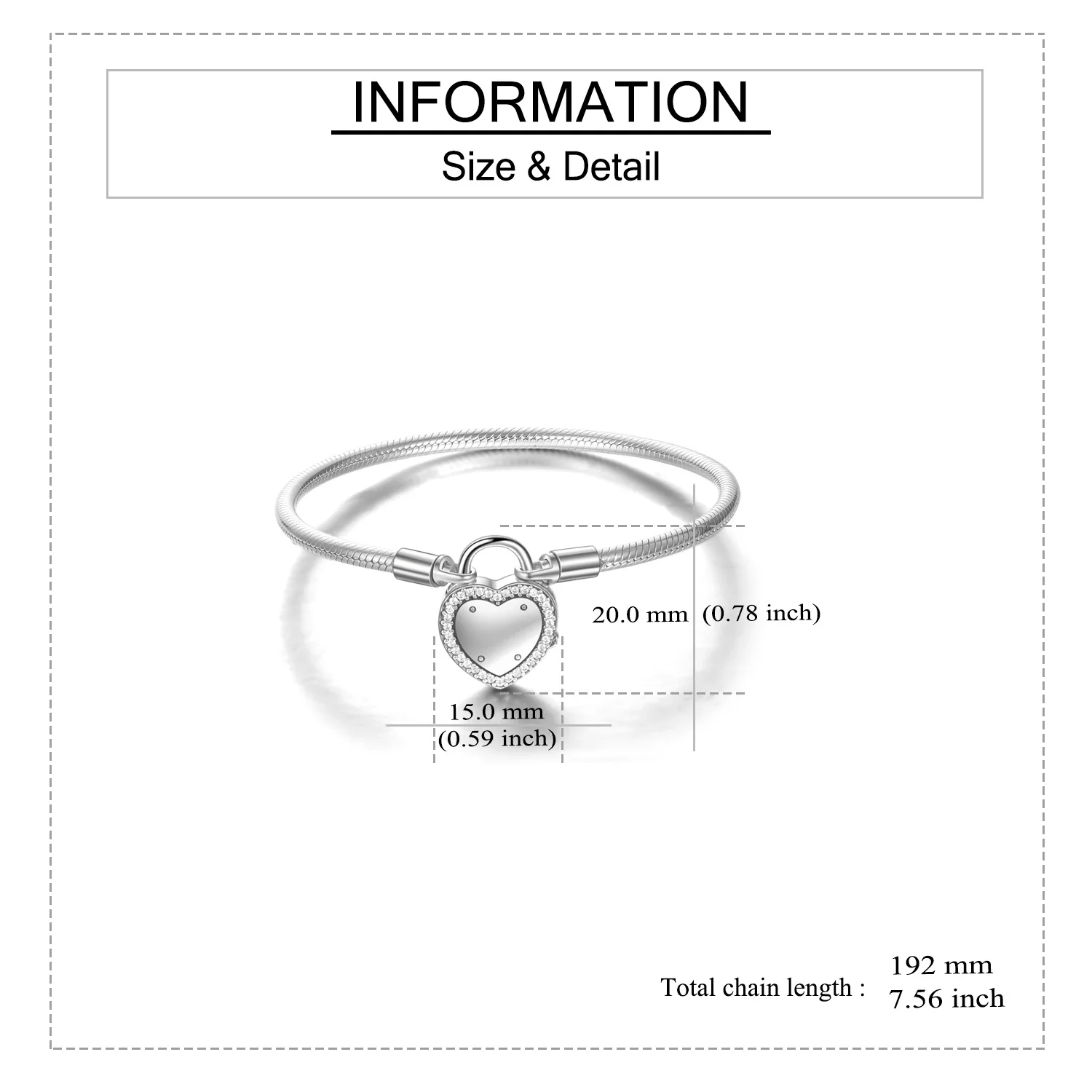 Wholesale Women Jewelry 925 Sterling Silver Heart Pendant Charm Snake Chain Bracelet