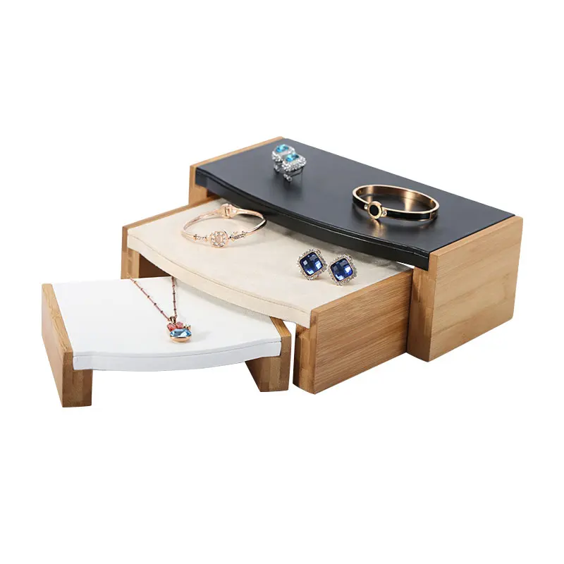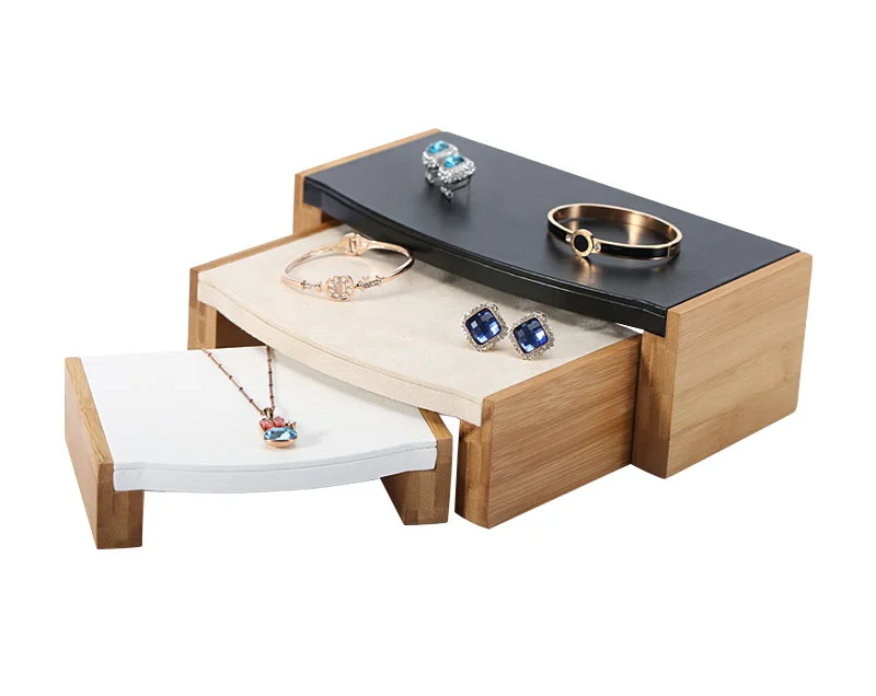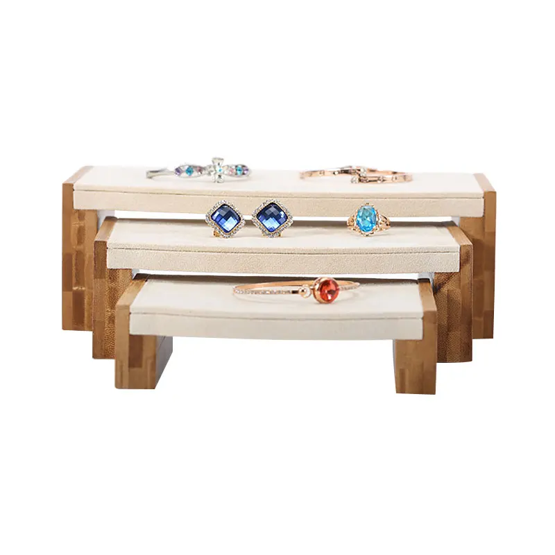 Product name | Custom luxury jewelry ring necklace earrings display wood three-piece jewelry display set | |