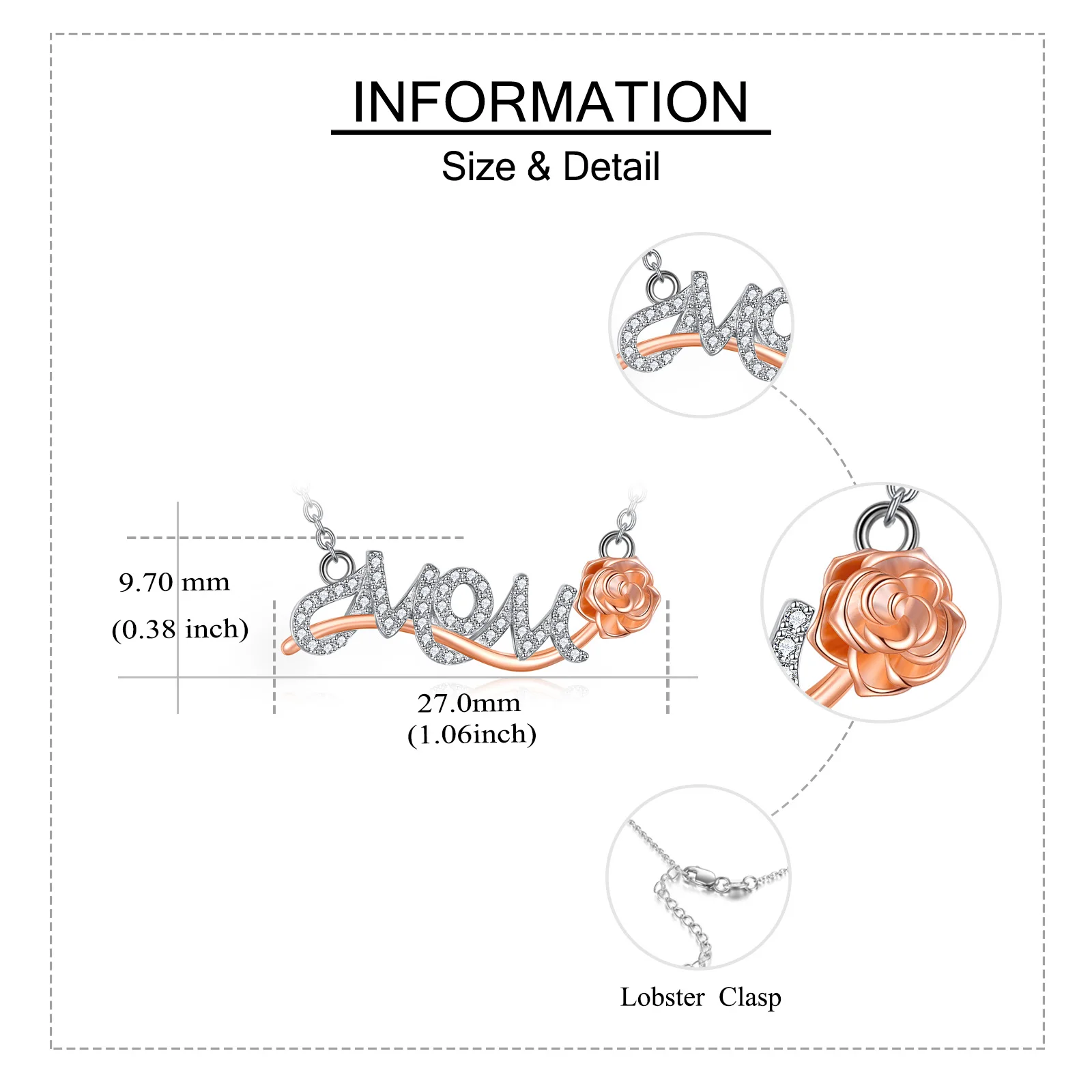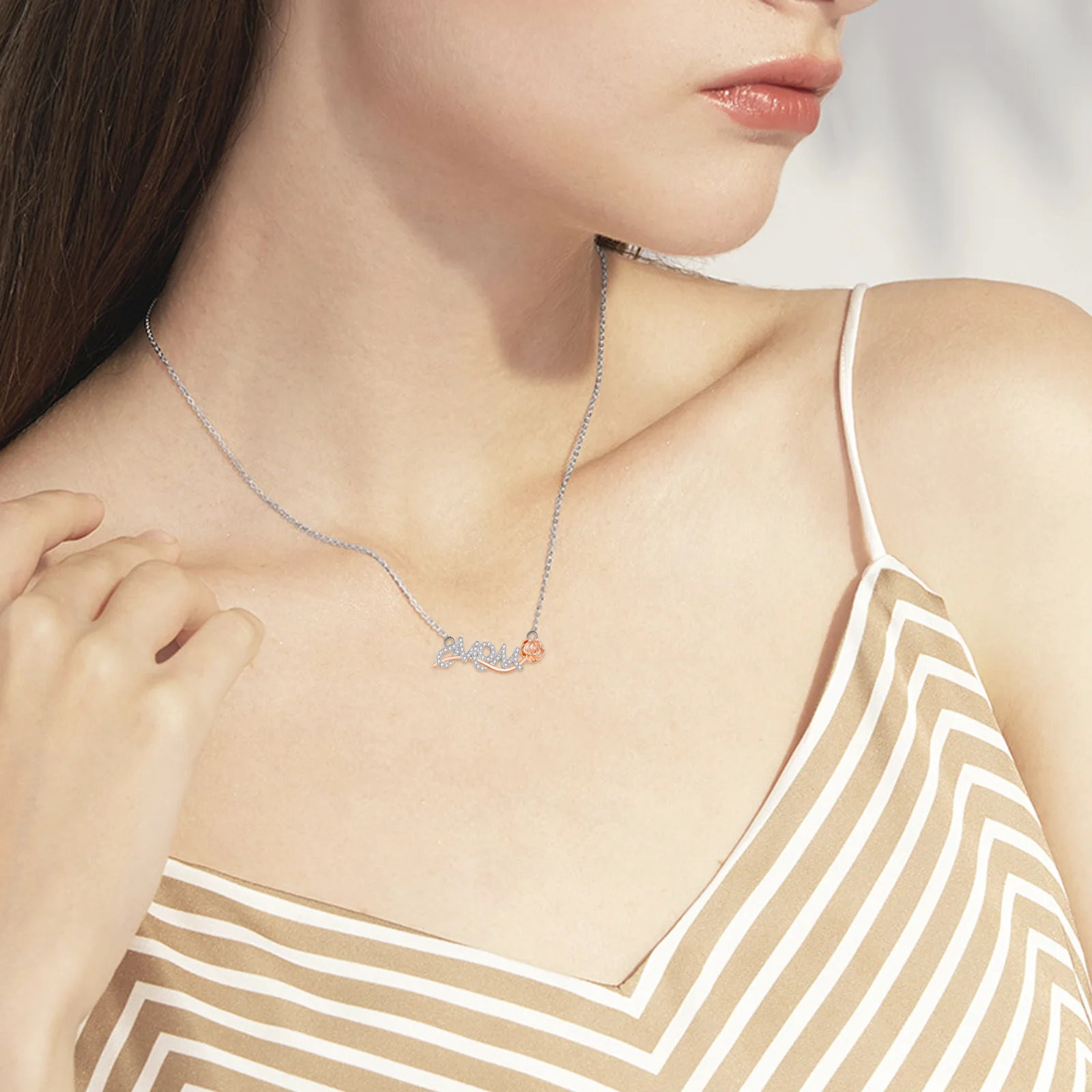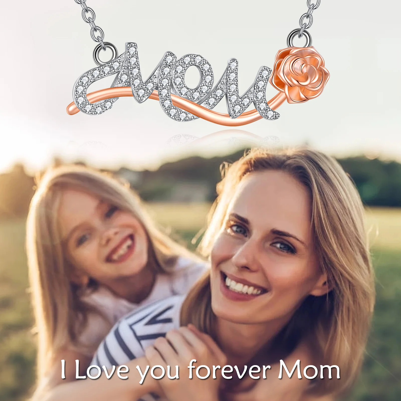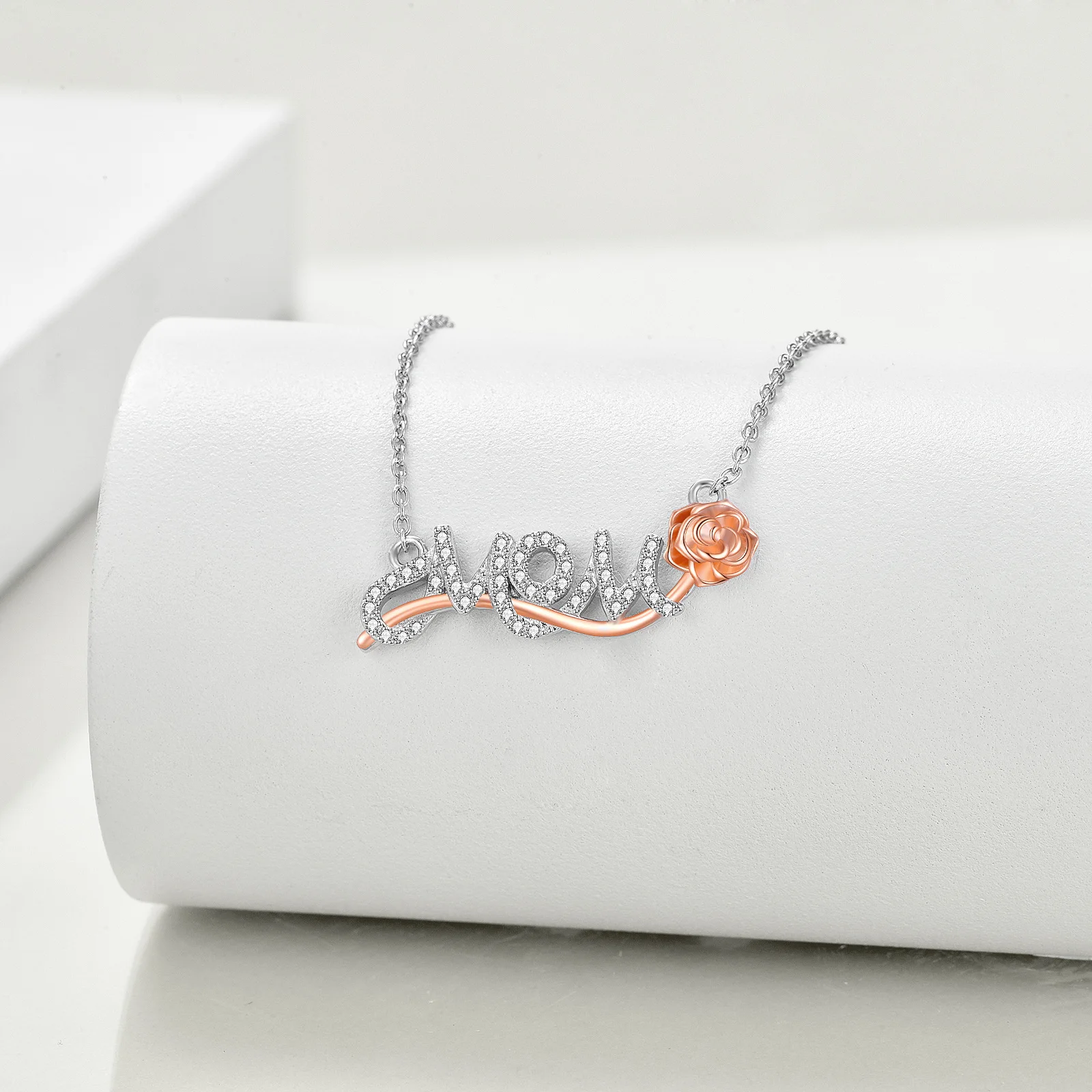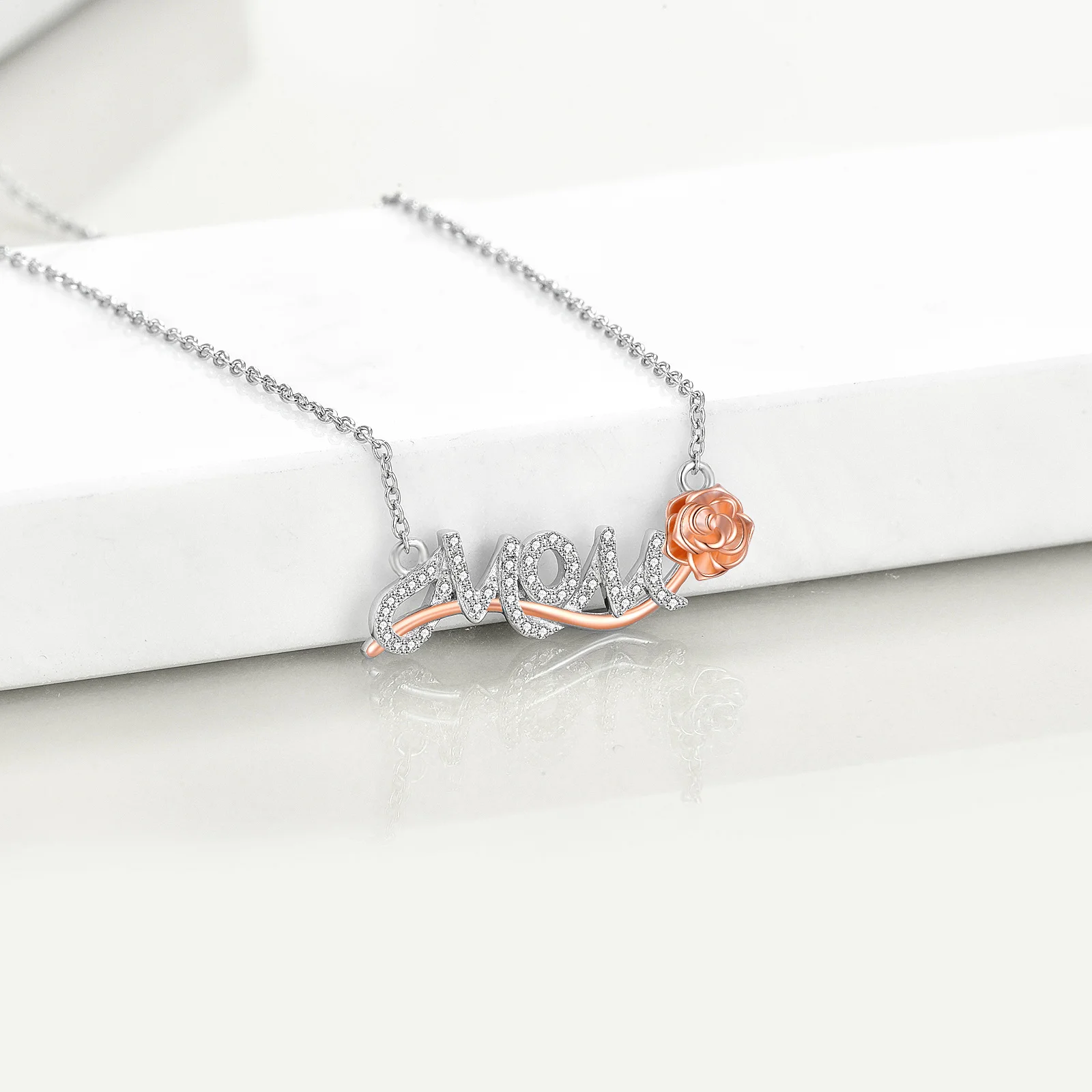 Mother Day Jewelry 925 Sterling Silver Two Tone Mom Letter Combination Rose Necklace