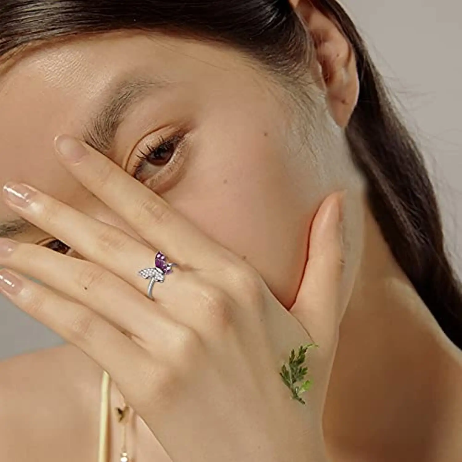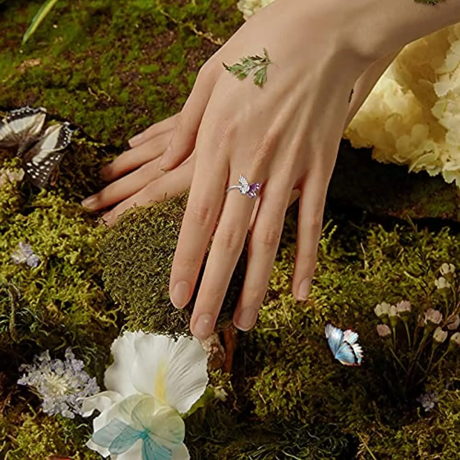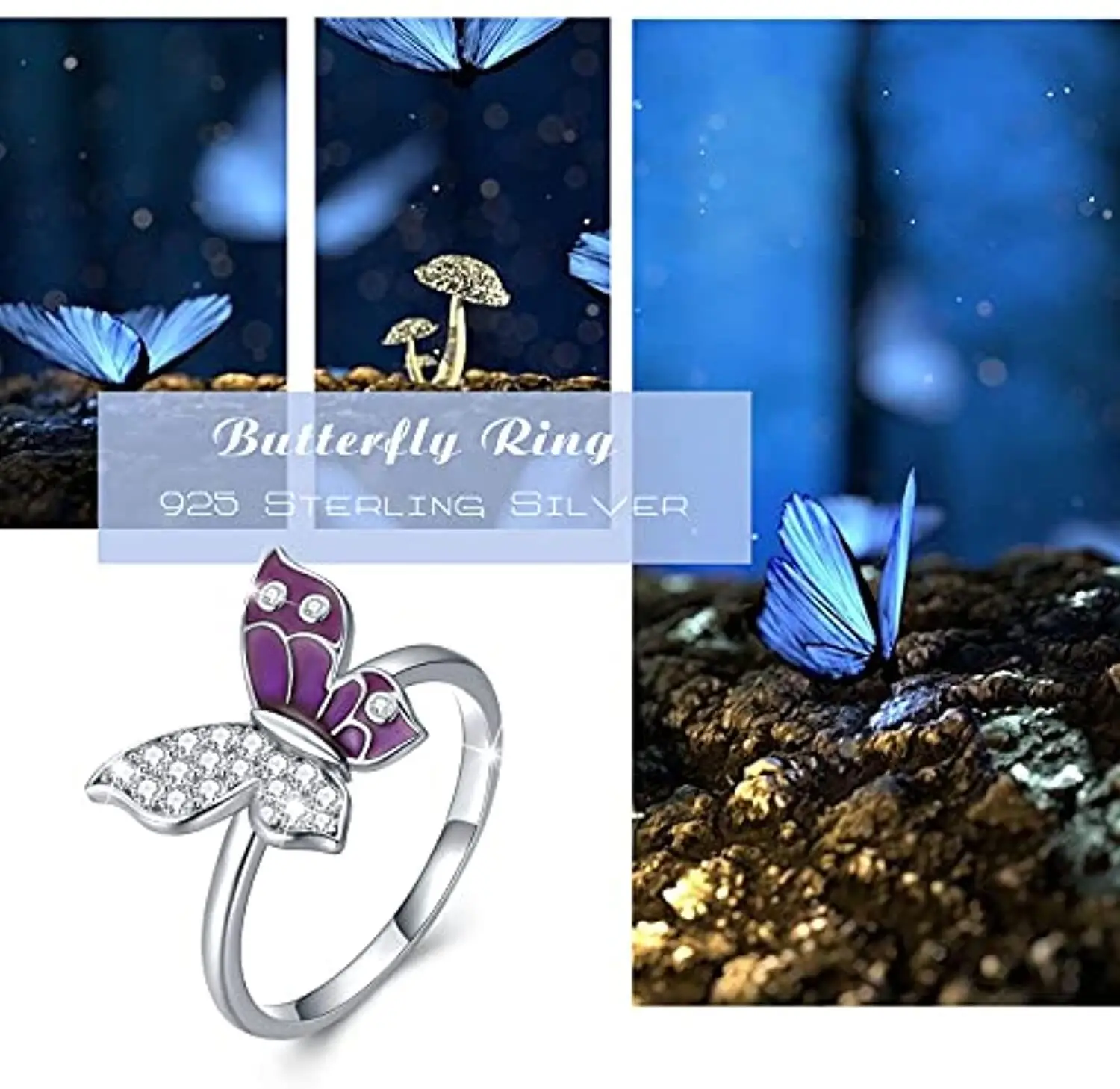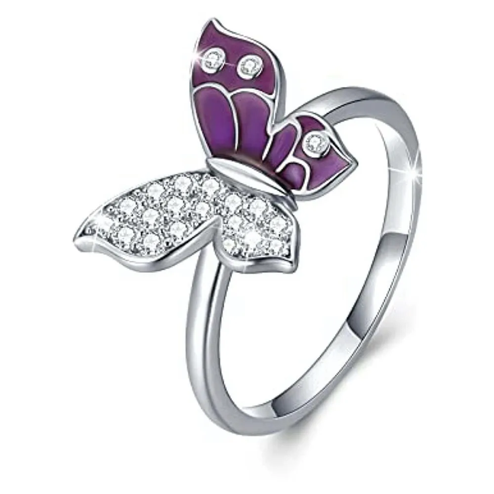 Fine Jewelry 925 Sterling Silver Pave Setting Cubic Zircon Butterfly Ring for Women