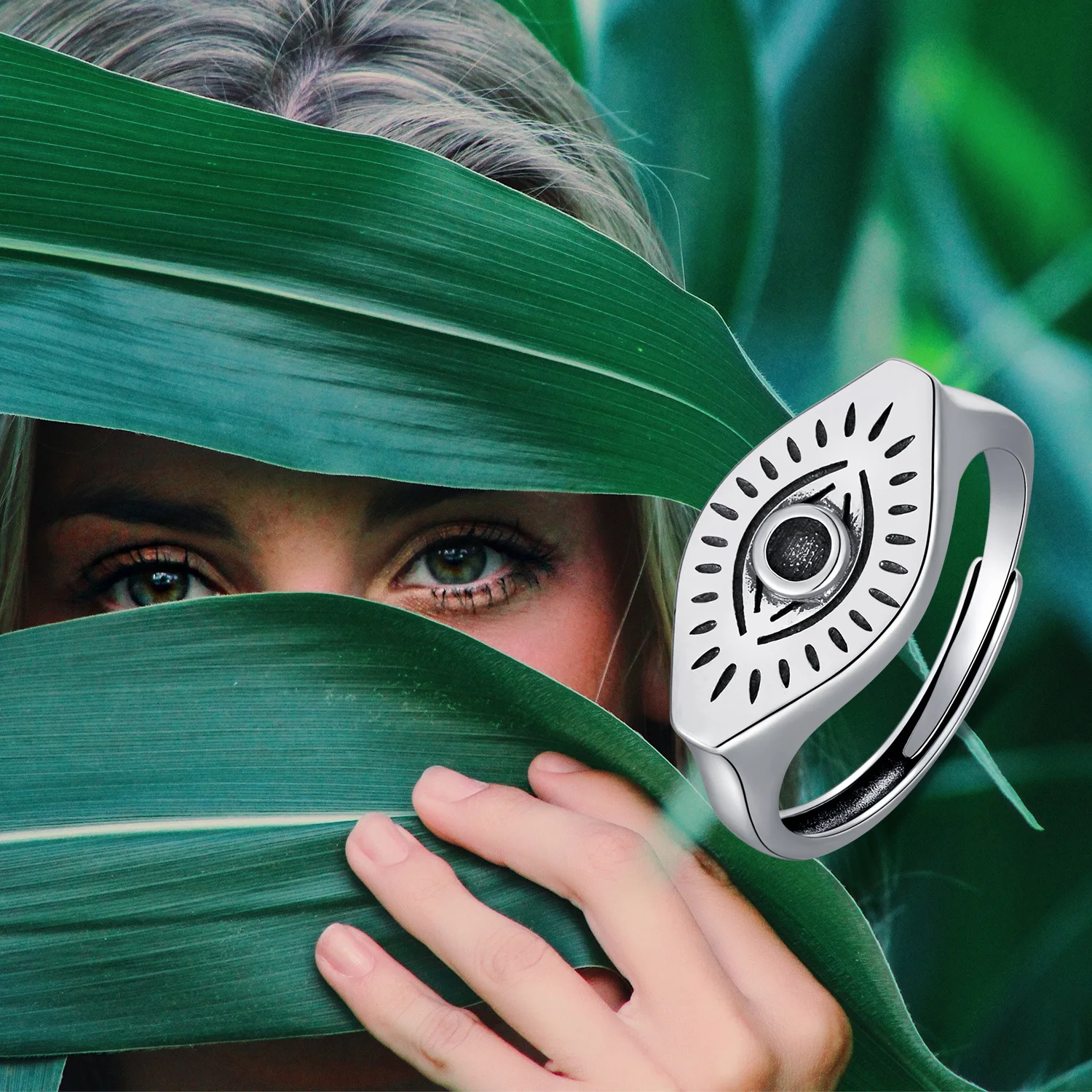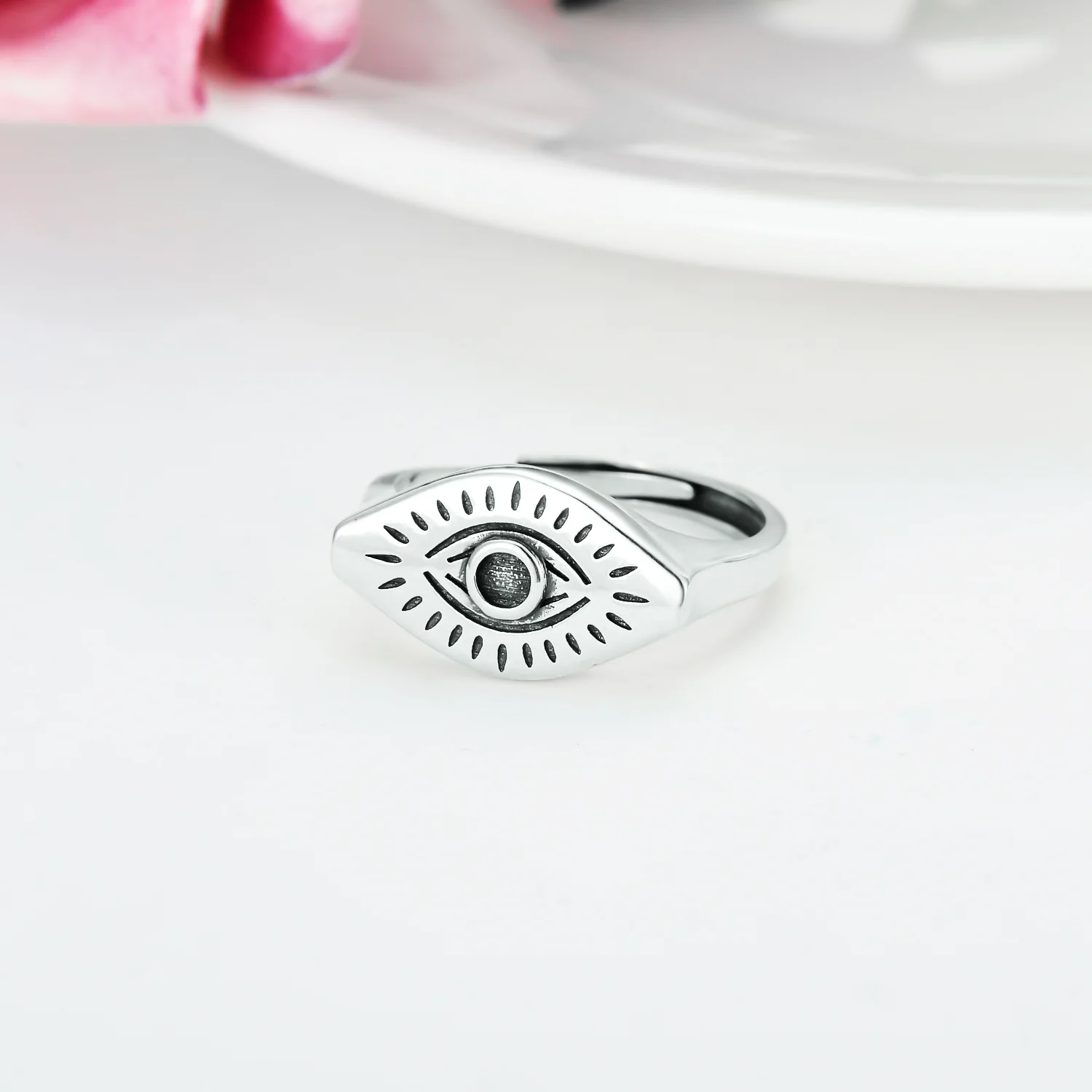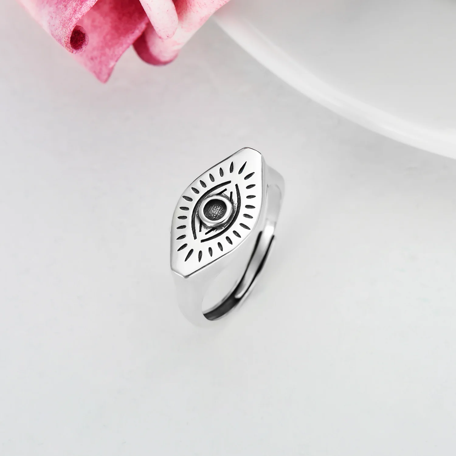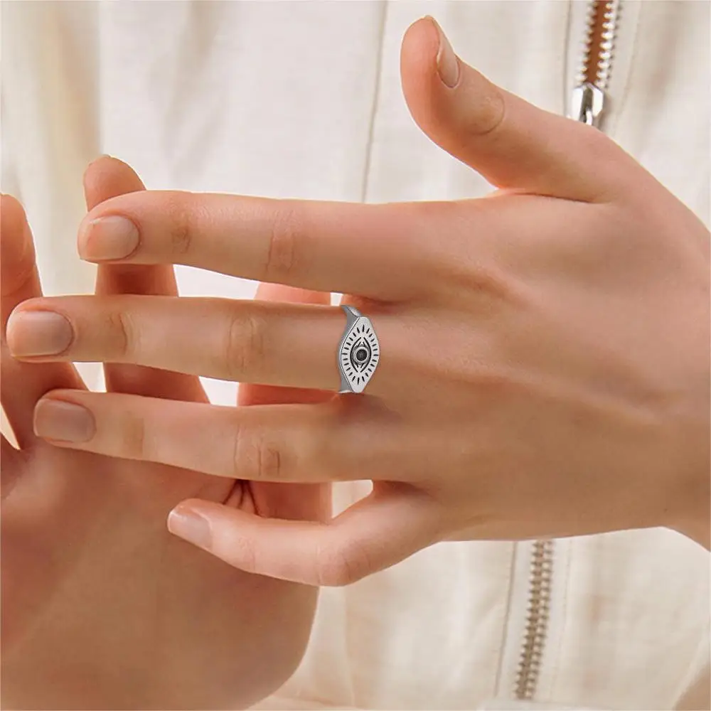 New Design Custom 925 Sterling Silver Rhodium Plated Simple Devil Eye Ring