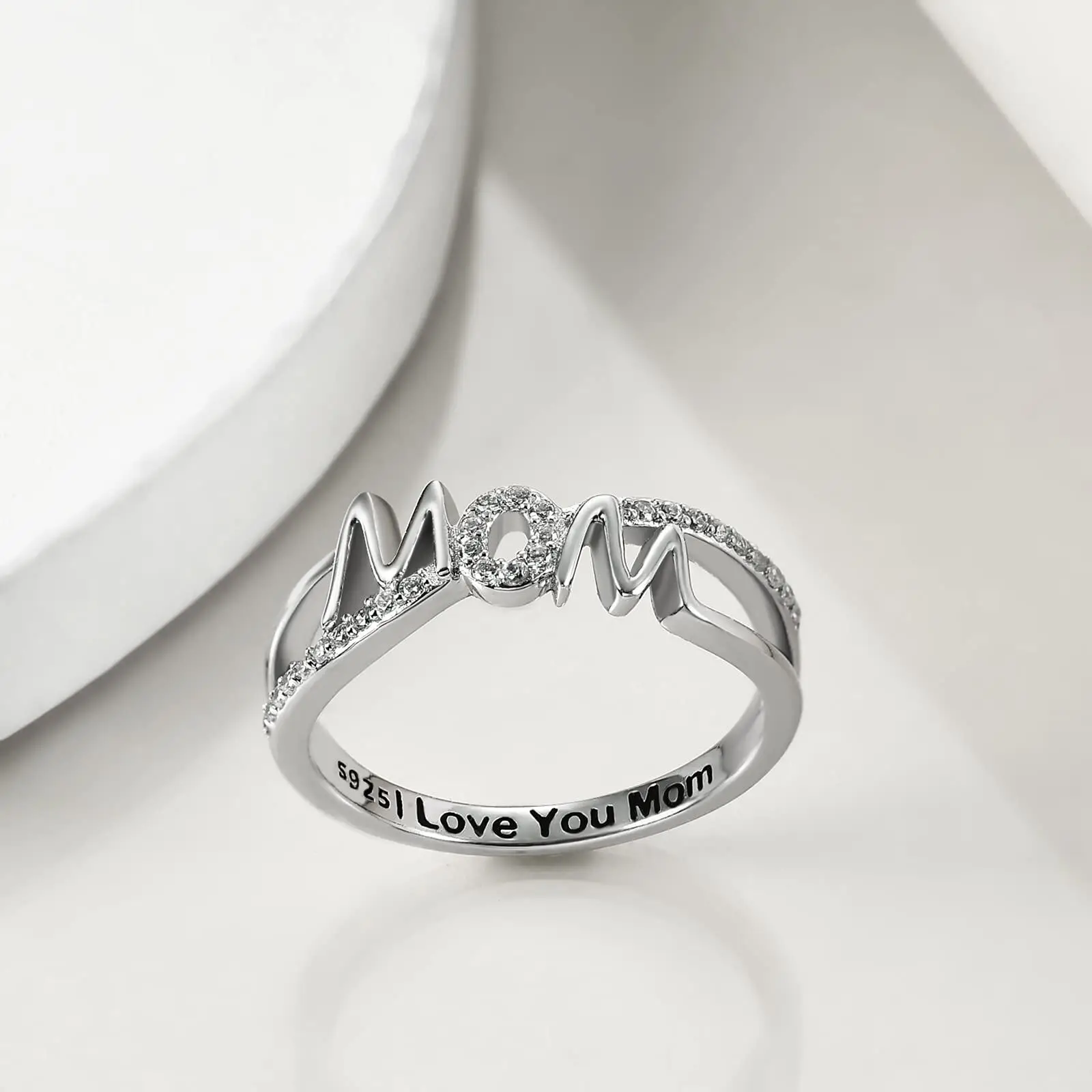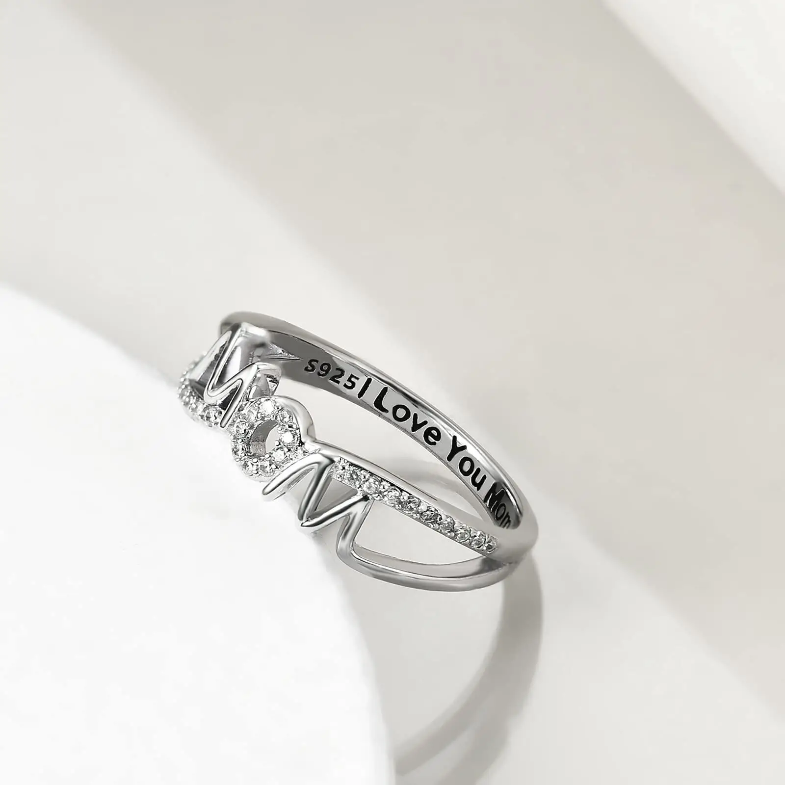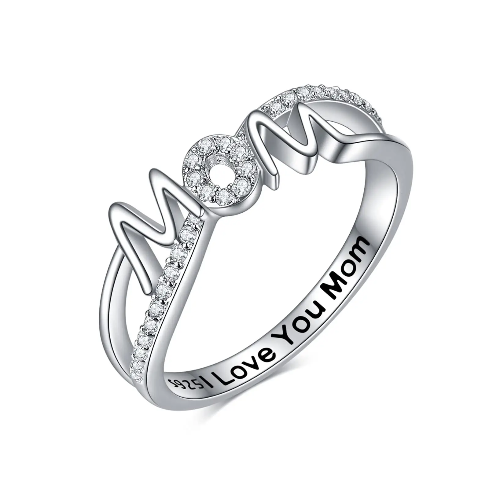 YFN 925 Sterling Silver clear cubric zircon I love you mom mother ring