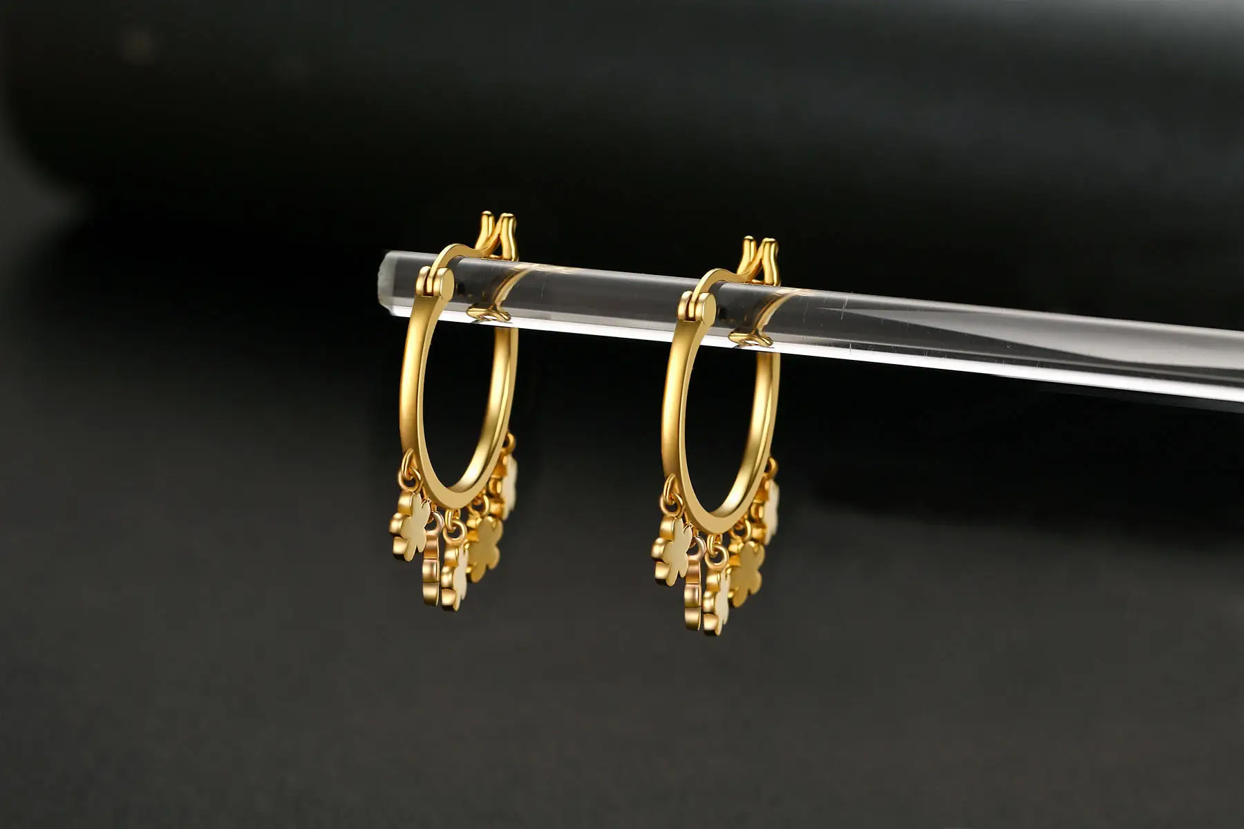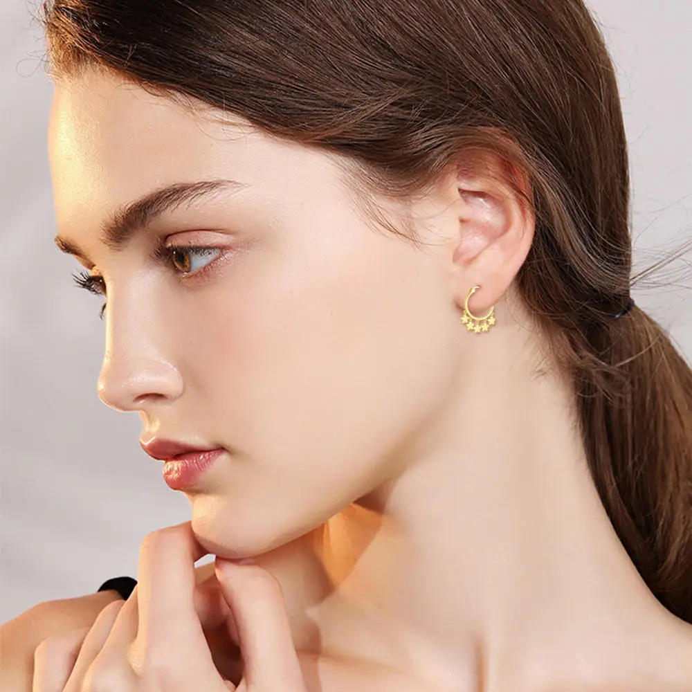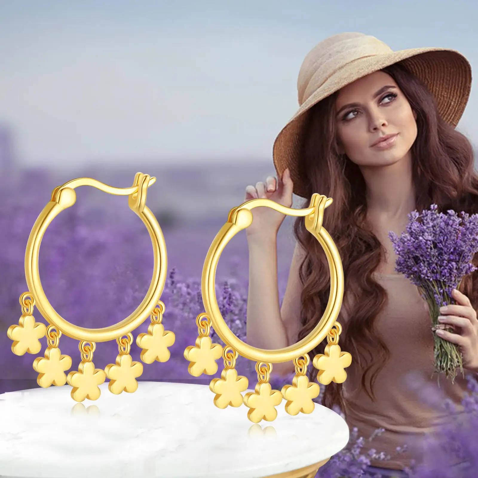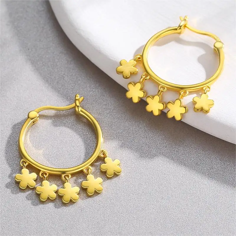 925 Sterling Silver Gold Plated Flower Drop Dangle Gold Hoop Earrings For Women