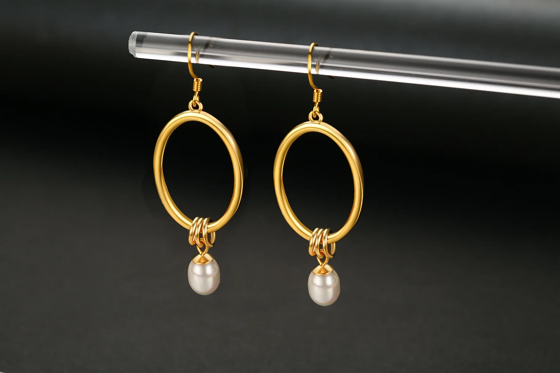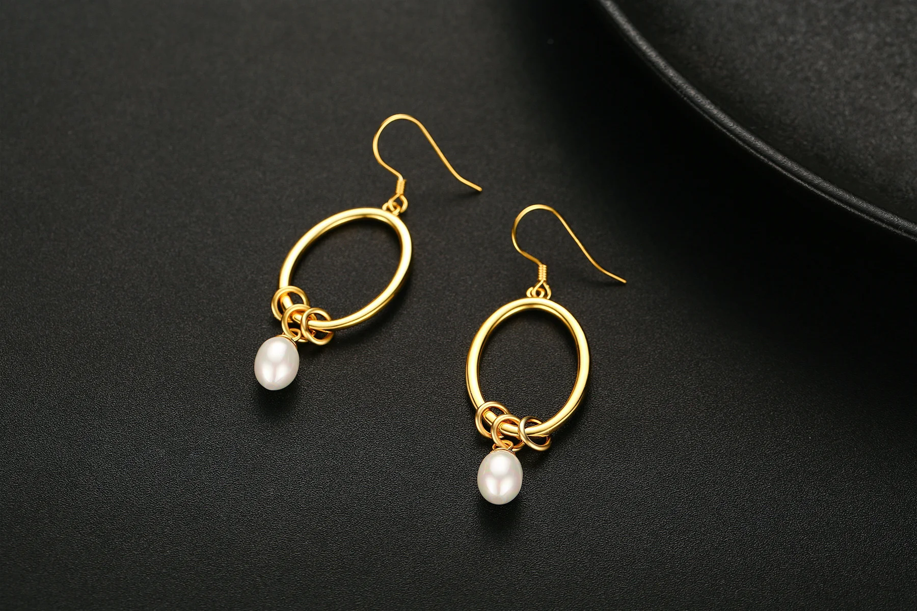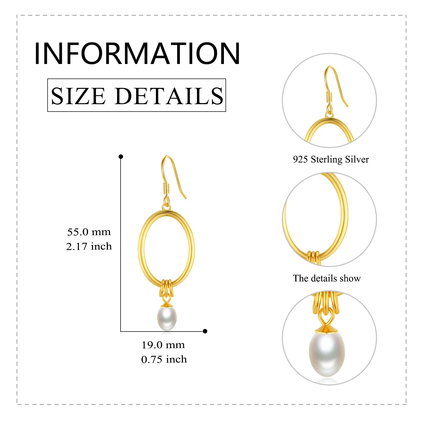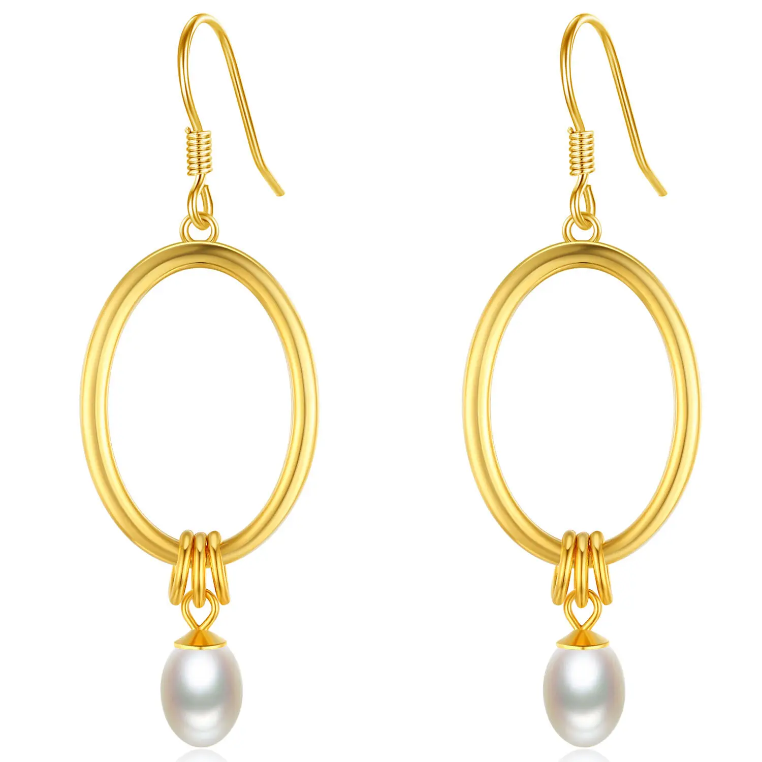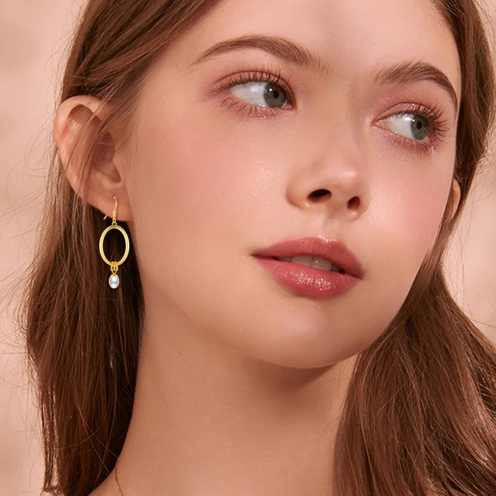Wholesale 925 Sterling Silver Gold Plated Oval Circle Pearl Drop Hook Earrings For Women