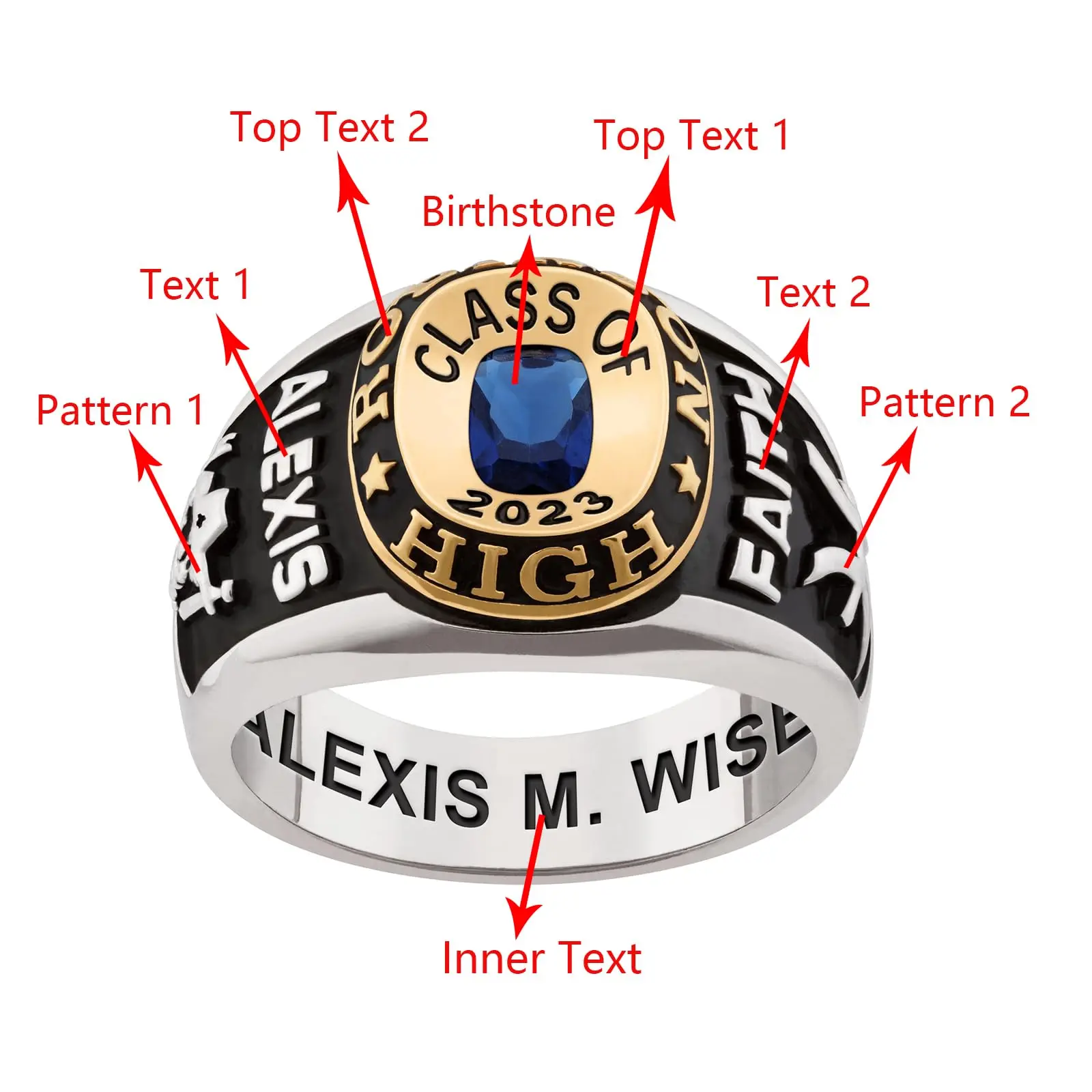 Graduation Gift Custom 925 Sterling Silver High School and College Graduates Birthstone Class Ring