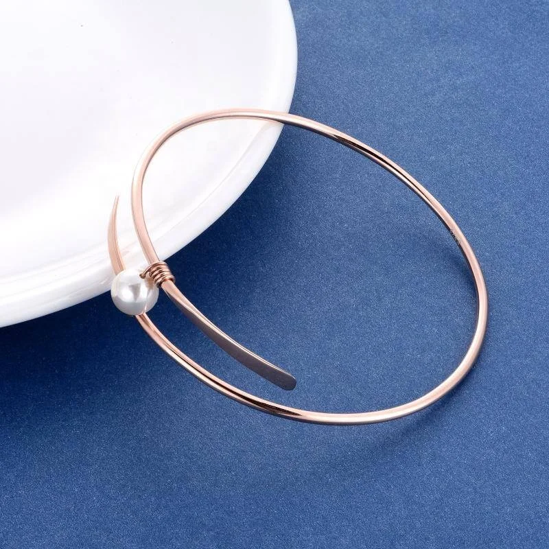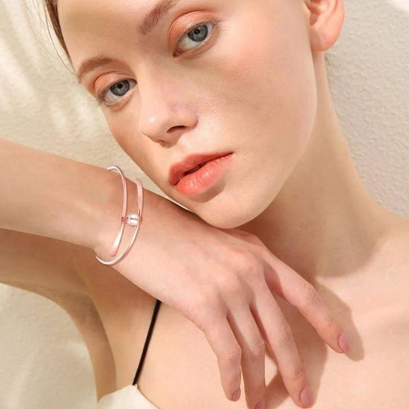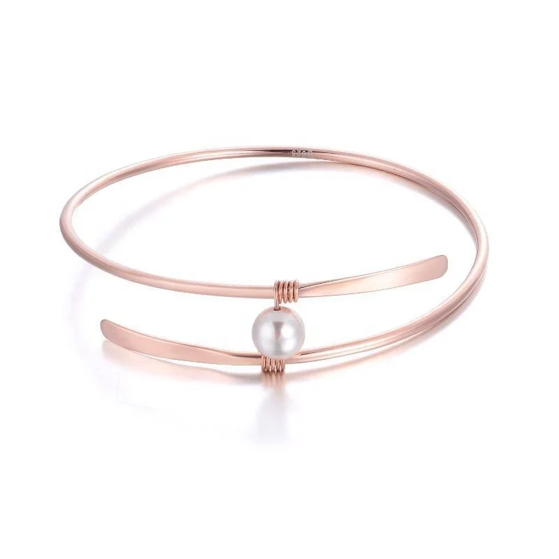 Item | Fine Simple Adjust Size Bangles 925 Sterling Silver 18k Rose Gold Plated Single Pearl Bangle Bracelets |