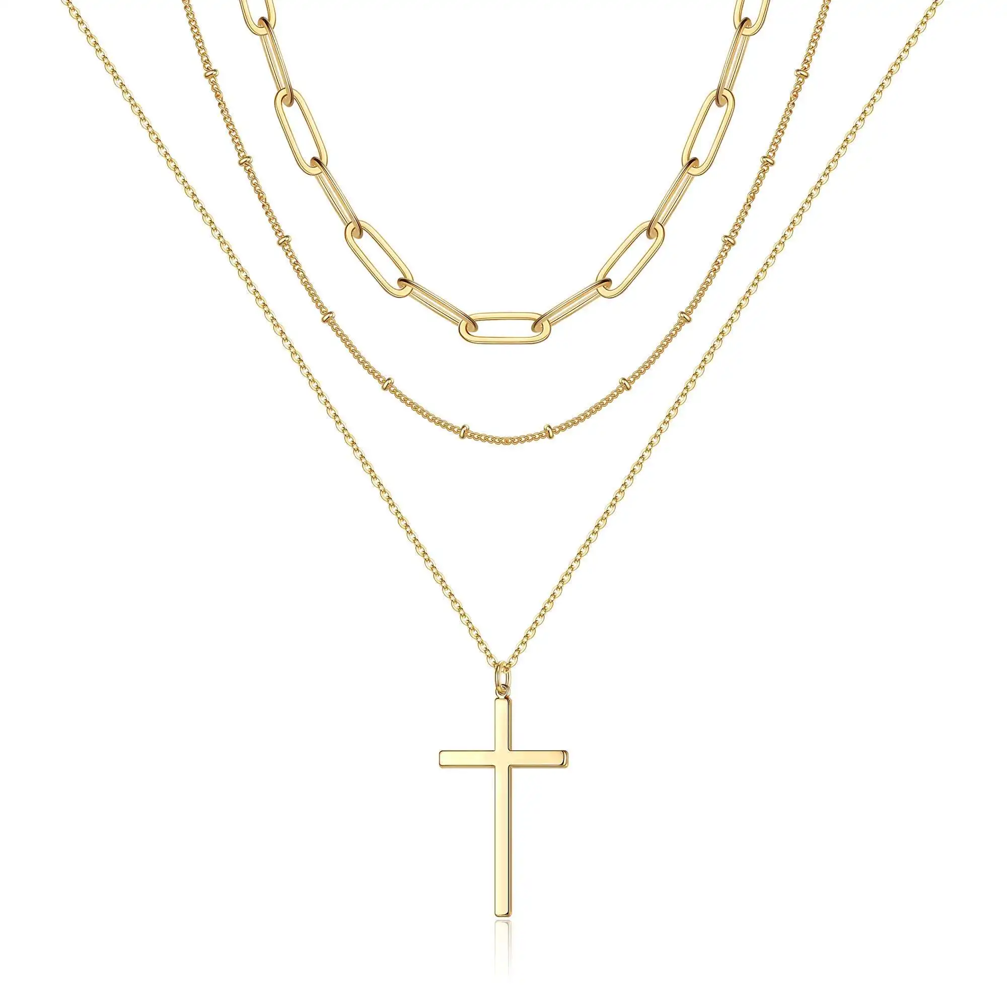 Product name | Wholesale Dainty Paperclip Chain Stainless Steel Personalized Three Floors Cross Necklace |