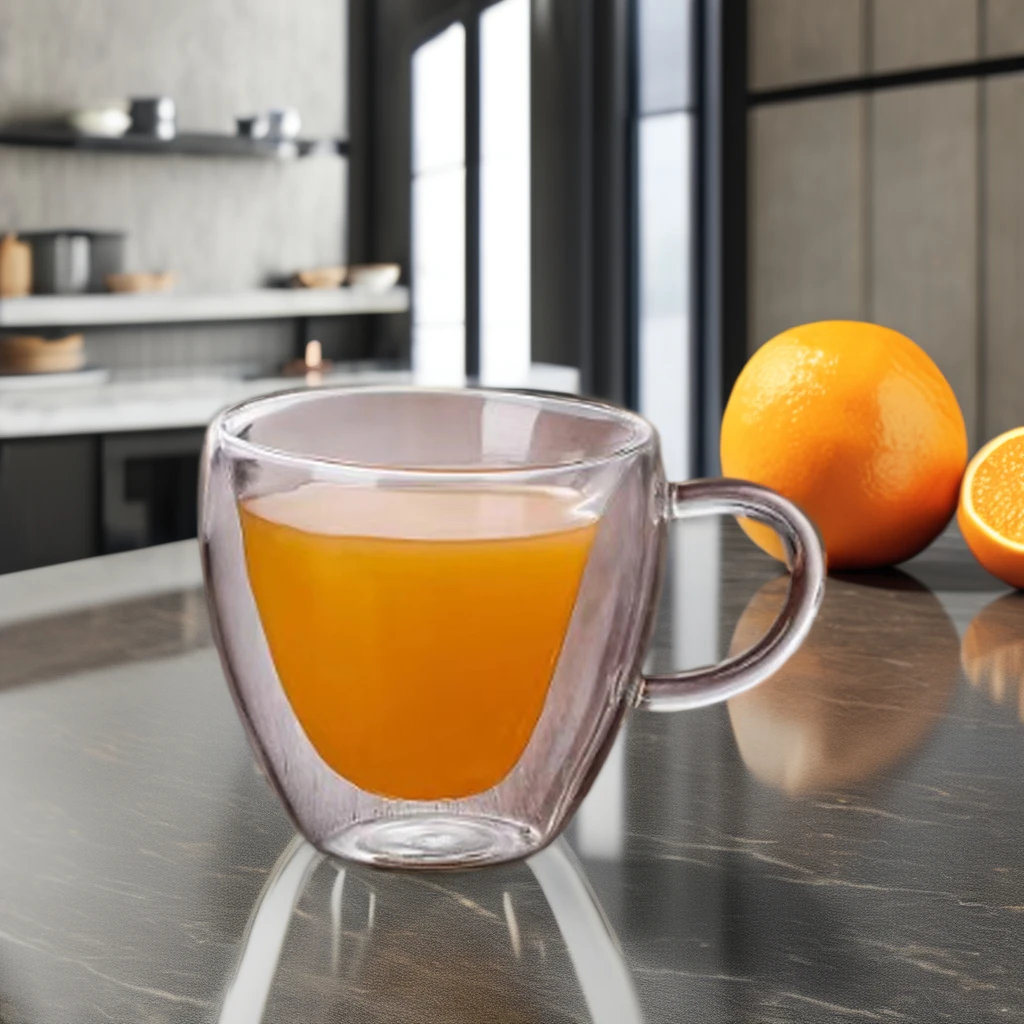 High quality high temperature resistant high borosilicate double wall heart shape glass cup with handle for milk coffee juice