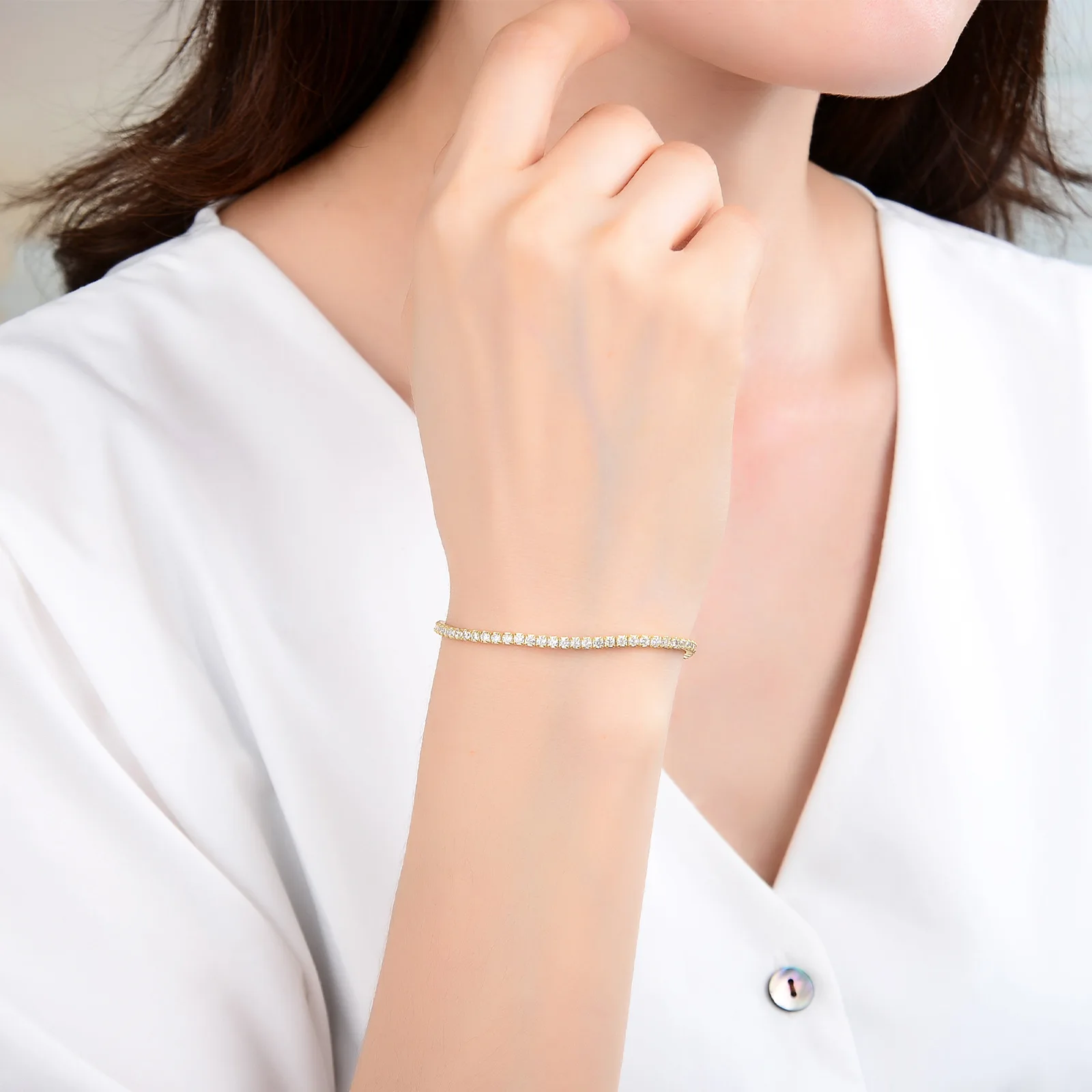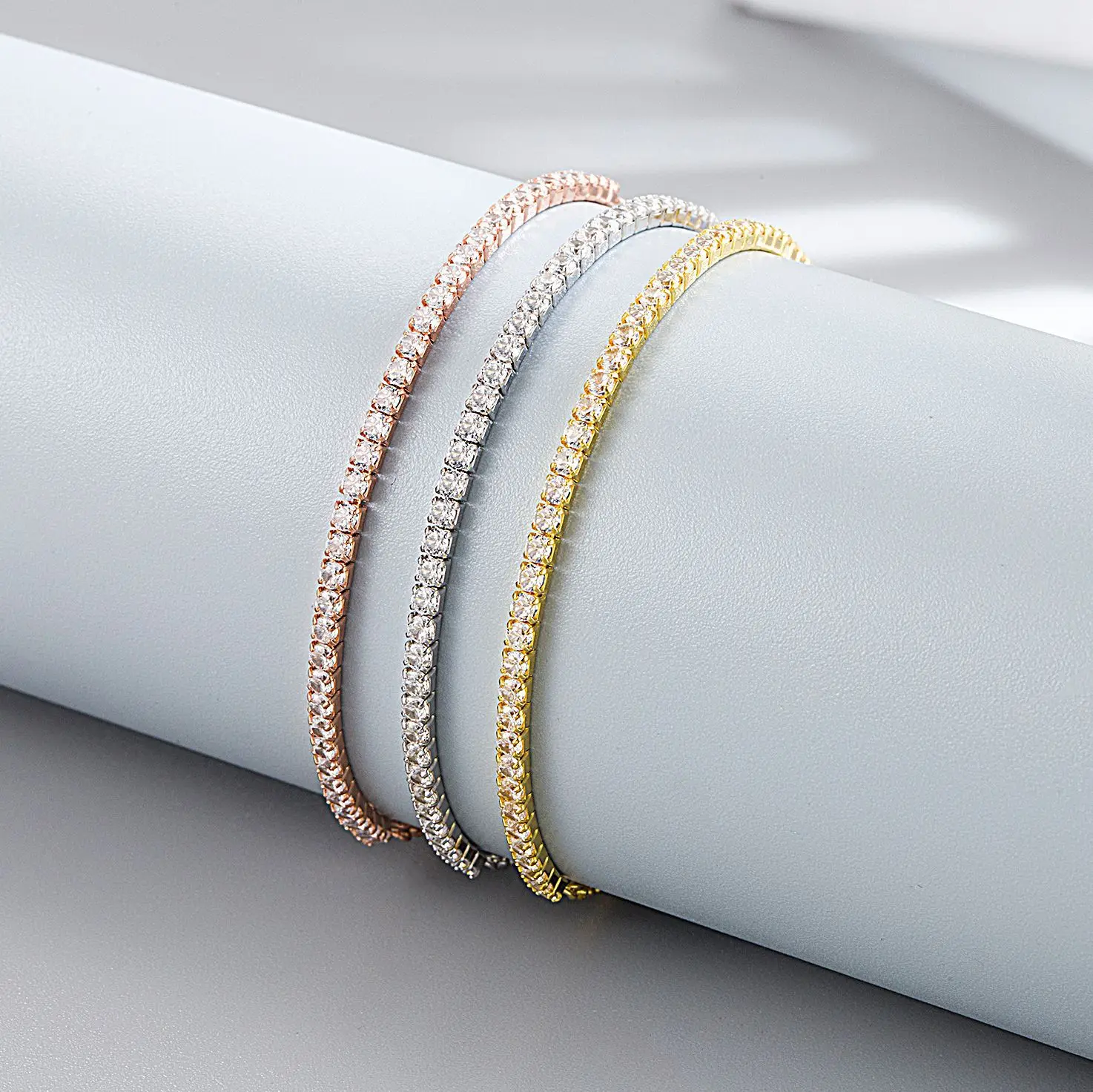 2.2MM Full Zircon Single Row Bracelet 925 Sterling Silver Tennis Chain Bracelet Light Luxury For Women Men