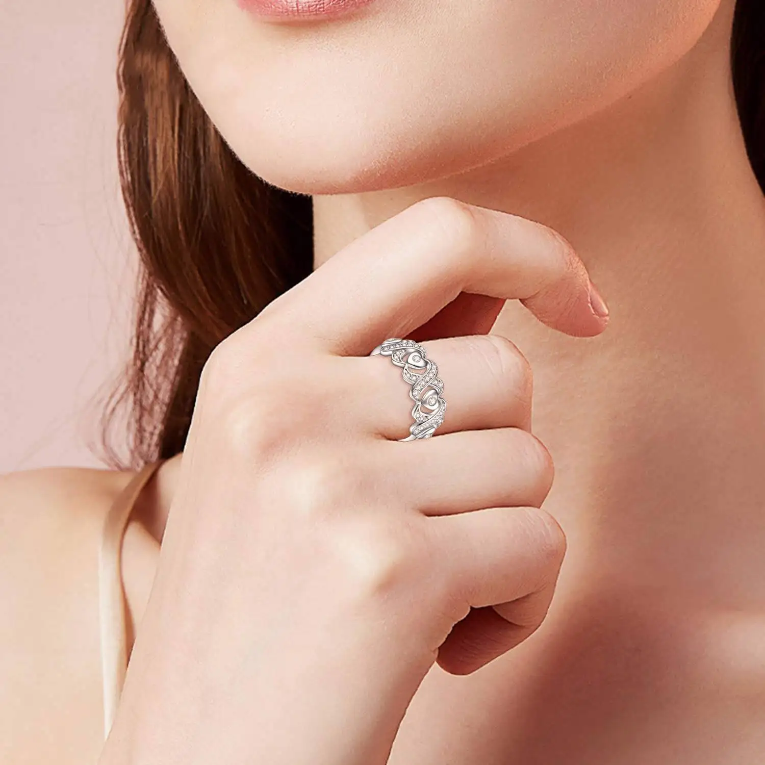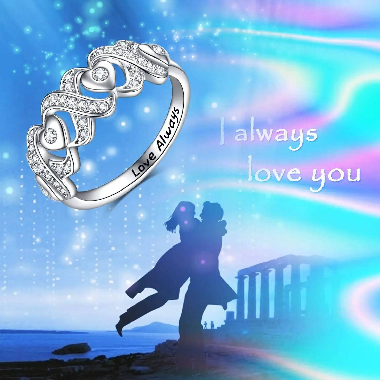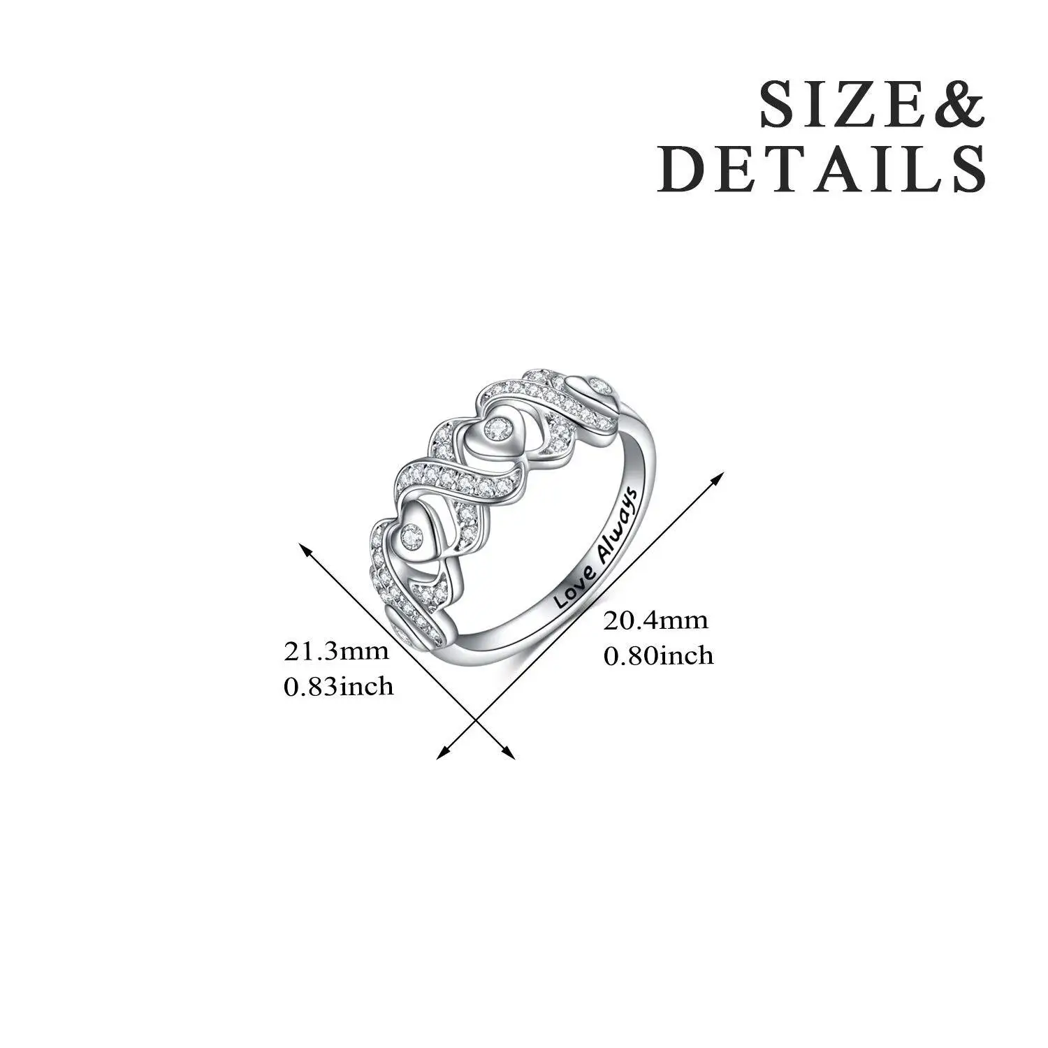 High Quality Wedding 925 Sterling Silver Cubic Zircon Infinity Love Heart Engagement Ring For Women