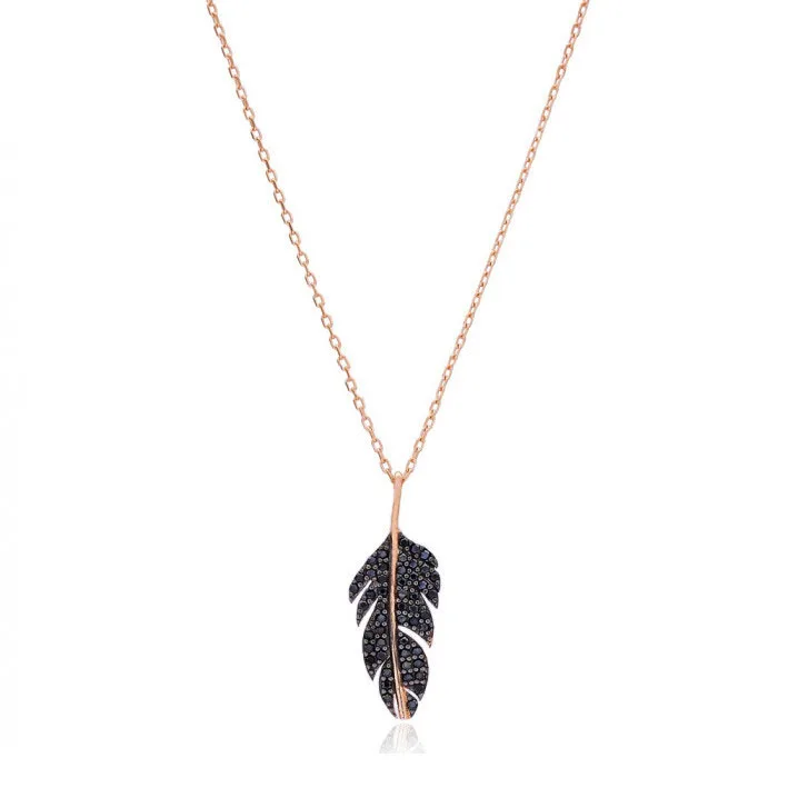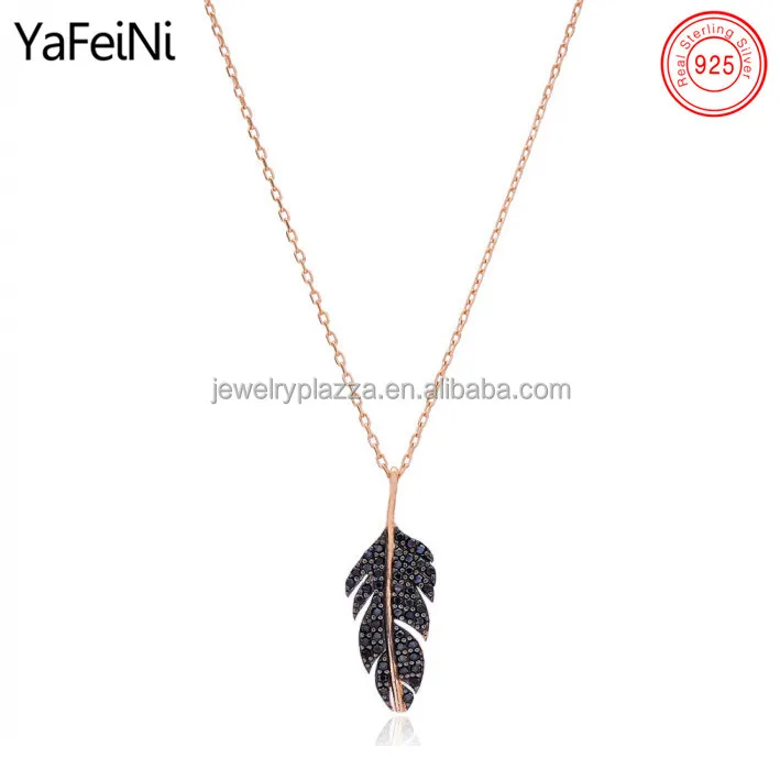 Manufacturer Wholesale Jewelry 925 Sterling Silver Black Cz Paved Leaf Pendant Necklace