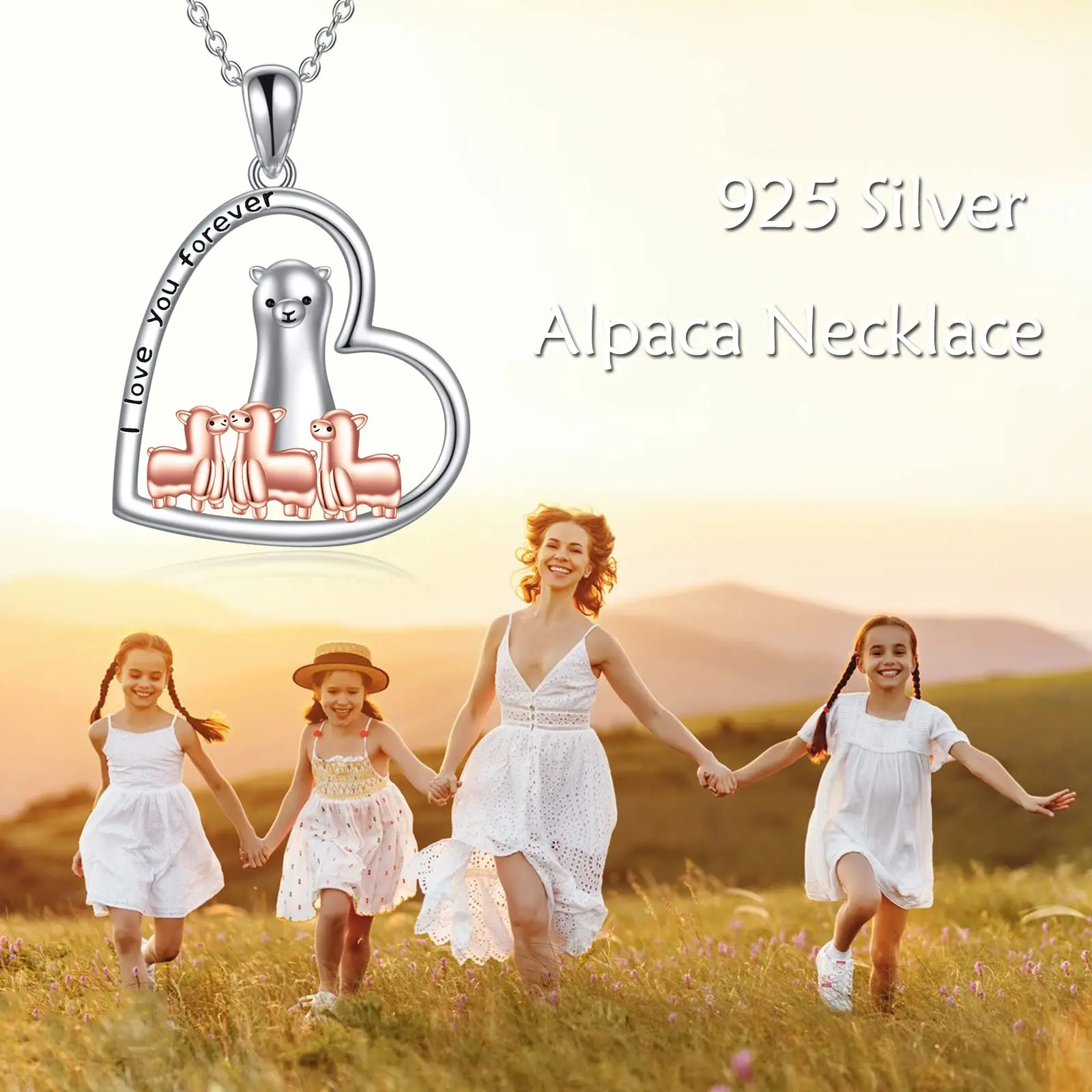New Arrival 925 Sterling Silver Sheep Alpaca Llama family necklace jewelry