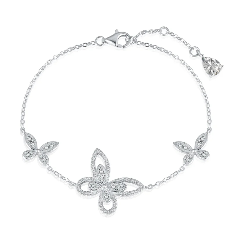 Wholesale High Quality 925 Sterling Silver Cube Zircon Butterfly Charm Bracelet For Women