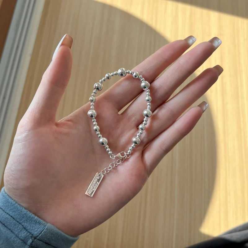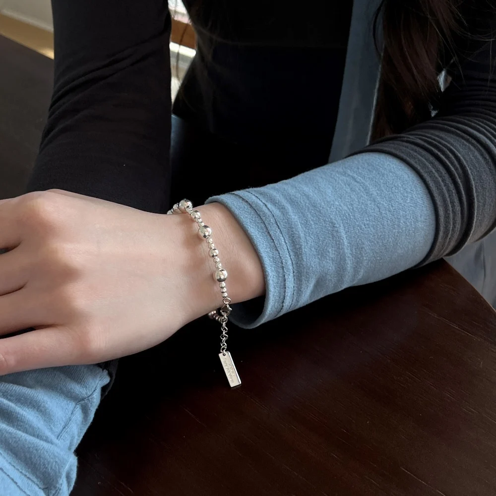 High Quality 925 Sterling Silver Simple Engraved Letter Square Card Gradient Bead Bracelet