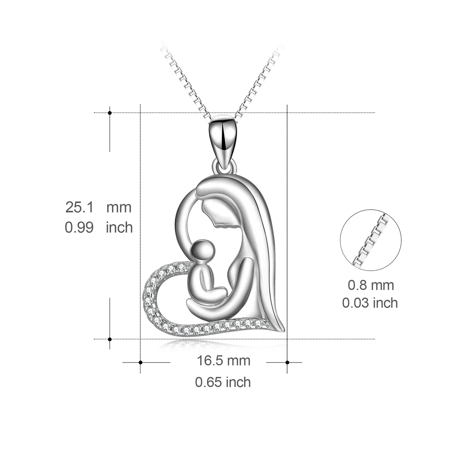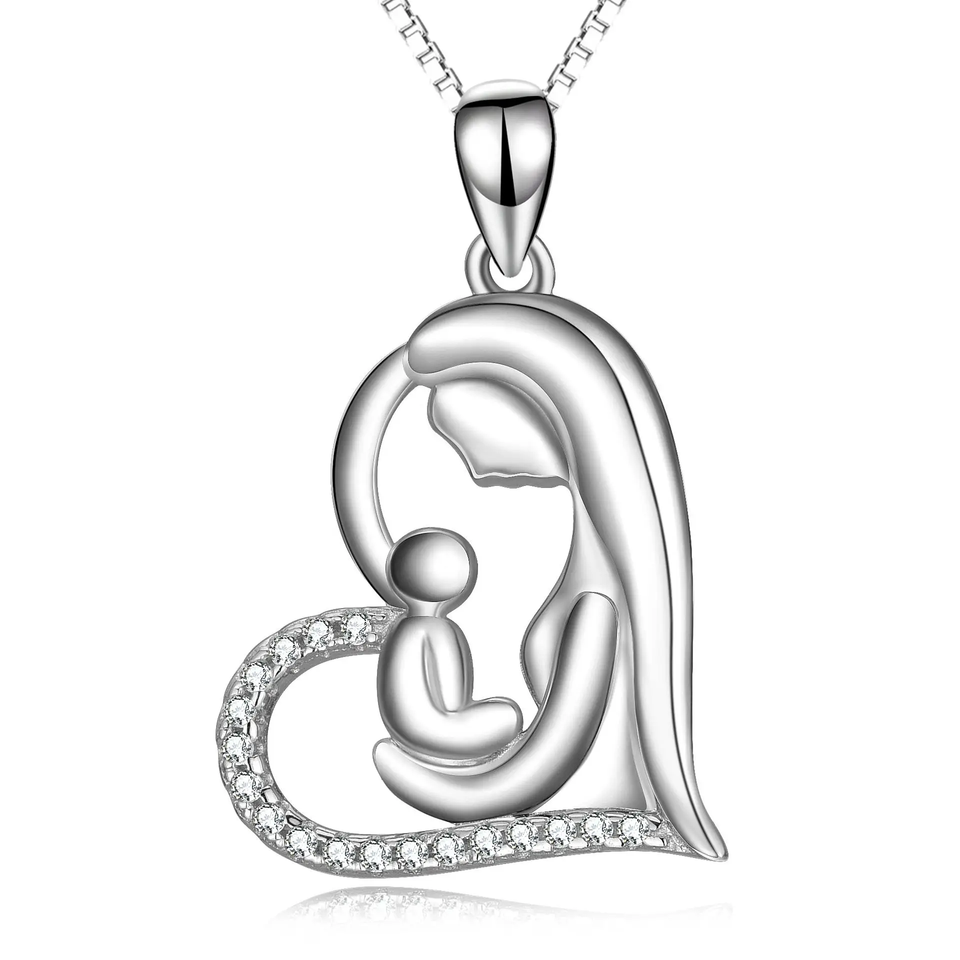 Fine Jewelry 925 Sterling Silver Cube Zircon Love Mother Holds Child Heart Pendant Necklace