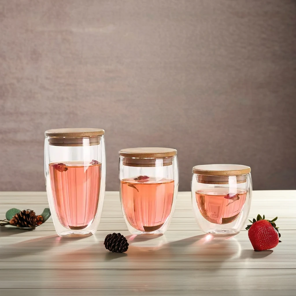250ml350ml450ml Double Wall Borosilicate Glass Mugs Insulated Coffee Mugs with Bamboo Lid Heat-Resistant Double-Layer Structure