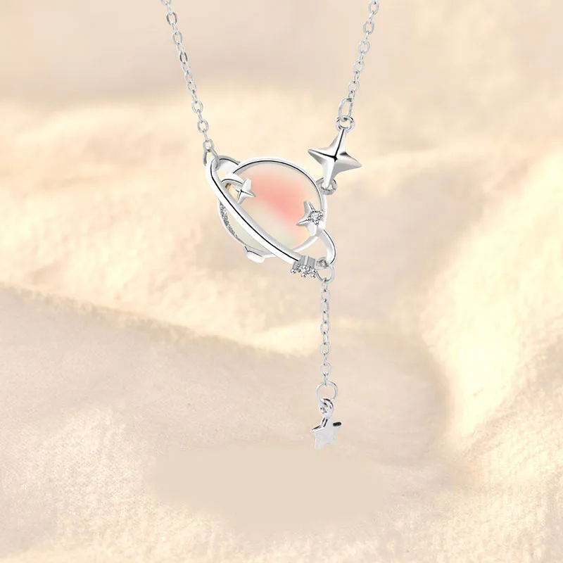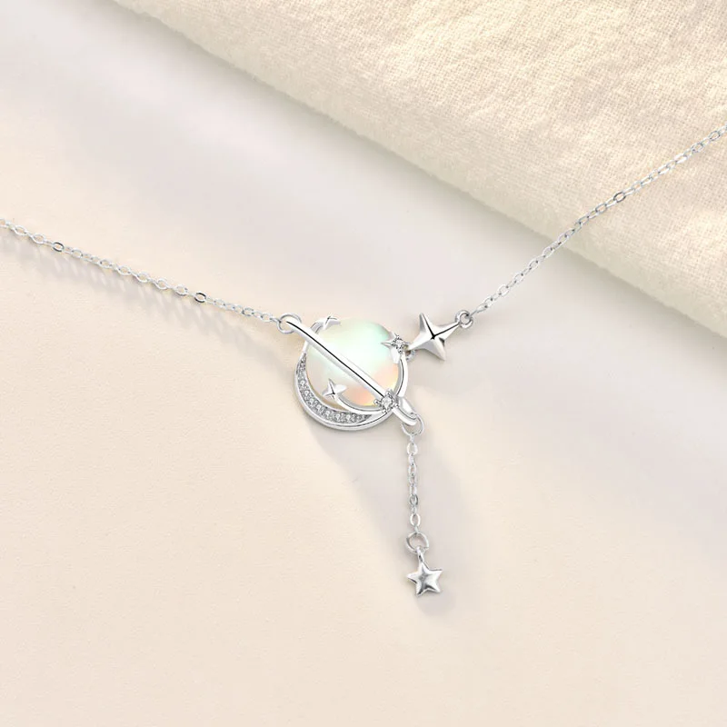 New Design 925 Sterling Silver Gemstone Moonstone CZ Pave Star Choker Necklace for Women