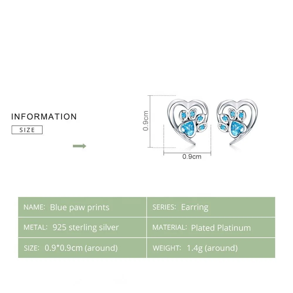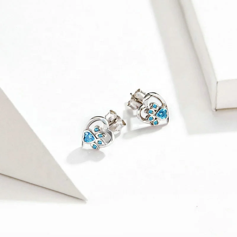 New Arrival Pet Jewelry 925 Sterling Silver Dog Paw Footprint Heart Stud Earrings For Women